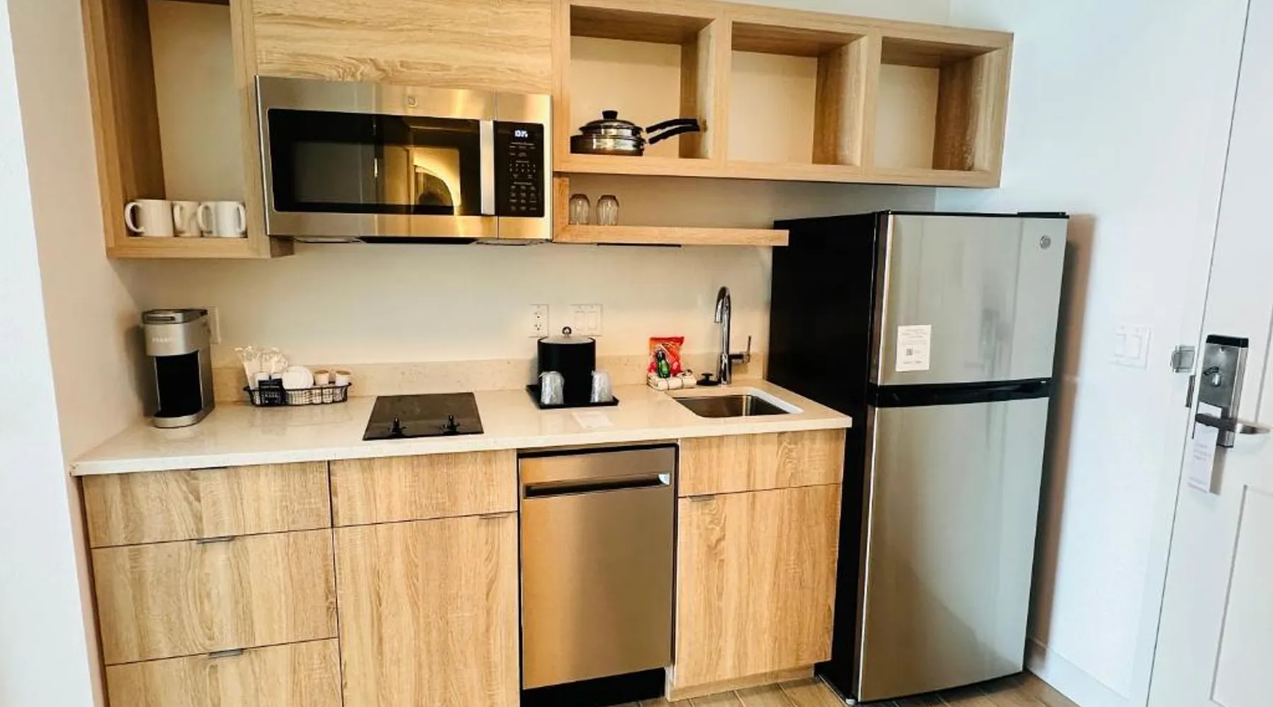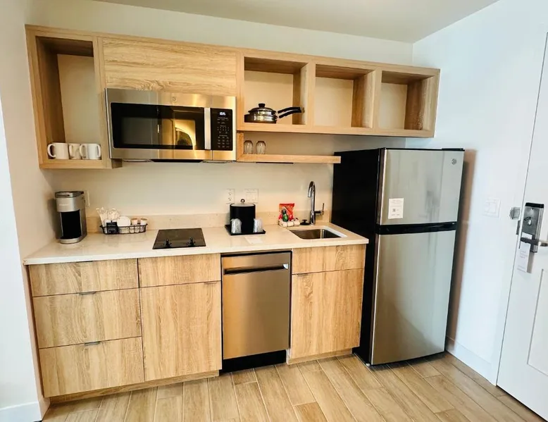 Comfortable Accommodations: TownePlace Suites by Marriott Miramar Beach Destin in Destin offers family rooms with kitchenettes, air-conditioning, and free WiFi. Each room includes a work desk, sofa bed, and modern amenities. Exceptional Facilities: Guests enjoy a private beach area, fitness center, sun terrace, restaurant, and bar. The hotel features a year-round outdoor swimming pool, hot tub, and lounge. Additional services include a 24-hour front desk, concierge, and daily housekeeping. Dining Experience: The family-friendly restaurant serves lunch, dinner, and cocktails in a traditional and modern ambiance. Breakfast includes warm dishes, fresh pastries, fruits, and juice. Vegetarian options are available. Prime Location: Located 21 mi from Destin-Fort Walton Beach Airport, the hotel is a 7-minute walk from Miramar Beach. Nearby attractions include Big Kahunas (8.1 mi) and Henderson Beach State Park (6.2 mi). Meals can be prepared in the kitchen, which has a stovetop, a refrigerator, a dishwasher and kitchenware. This air-conditioned studio is consisted of of a flat-screen TV with streaming services and a private bathroom. The unit has 2 beds.