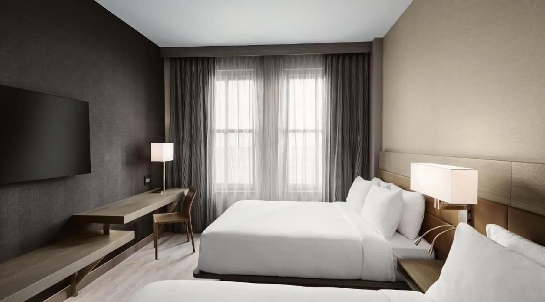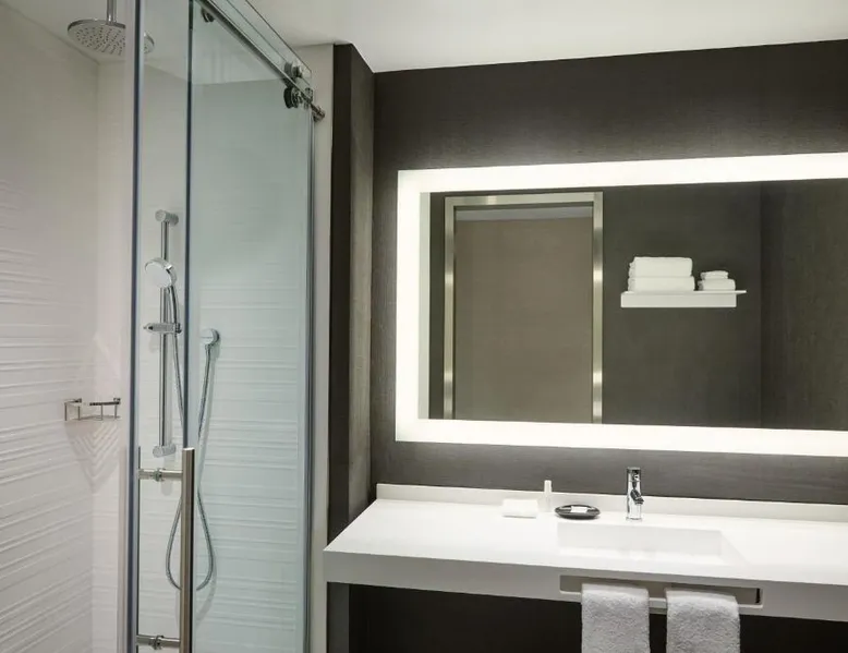 Comfortable Accommodations: Rooms feature private bathrooms, work desks, and free WiFi. Additional amenities include streaming services, sofa beds, and parquet floors. Dining and Leisure: The hotel offers a fitness center, restaurant, and bar. Guests can enjoy a continental, American, buffet, or à la carte breakfast with warm dishes, fresh pastries, and juice. Dinner is available at the on-site restaurant. Convenient Location: Located in Kansas City, the hotel is 16 mi from Kansas City International Airport. Nearby attractions include T-Mobile Center (8-minute walk), Kansas City Convention Center (0.7 mi), and an ice-skating rink. The spacious double room provides a wardrobe, tumble dryer, as well as a private bathroom featuring a bath and a shower. The double room features a flat-screen TV with streaming services, parquet floors, a tiled floor and heating. The unit offers 2 beds.