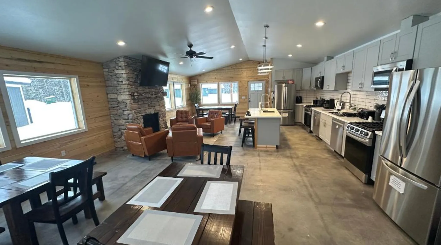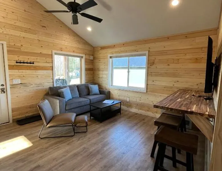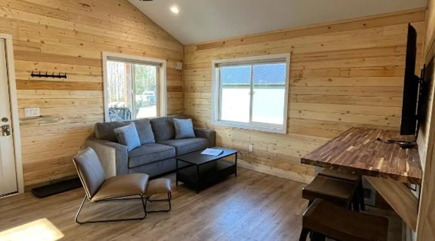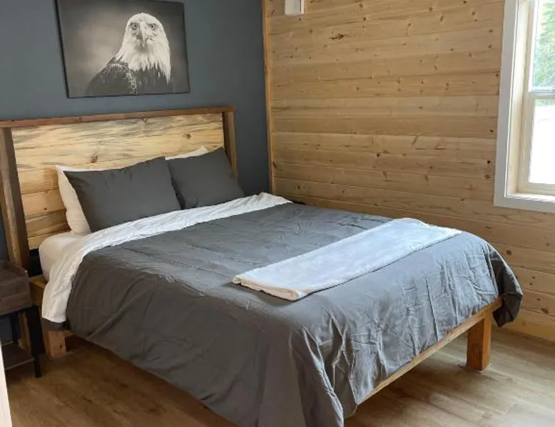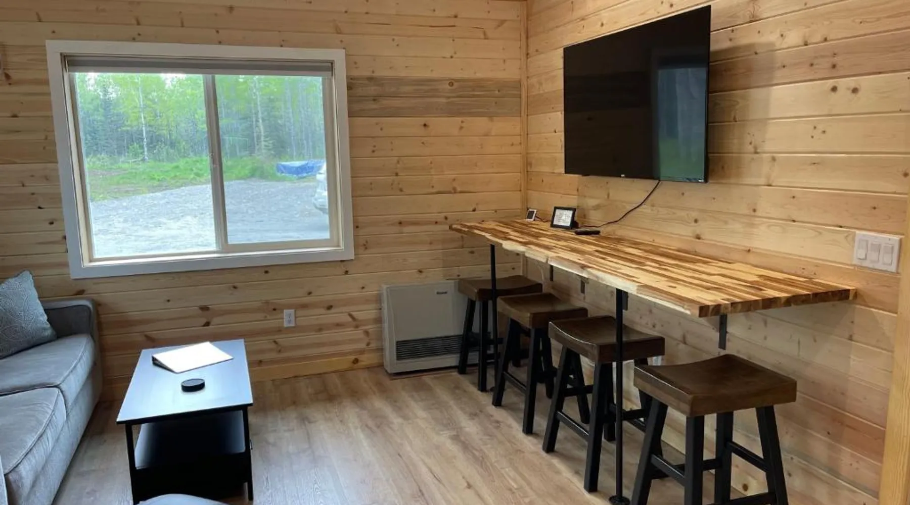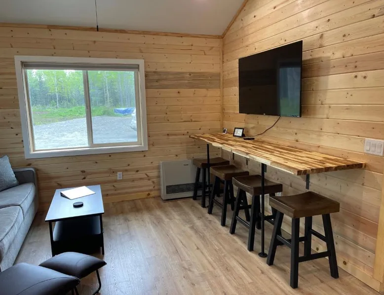 Comfortable Accommodations: Kenai Adventure Cabins in Soldotna offers family rooms with private bathrooms, ground-floor units, and shared bathrooms. Each room includes a sofa bed, TV, and kitchen facilities. Essential Facilities: Guests enjoy free WiFi, private and express check-in and check-out services, a lounge, outdoor fireplace, and barbecue facilities. The property also features a shared kitchen, laundry service, and outdoor seating area. Convenient Location: Located 9.9 mi from Kenai Municipal Airport, the homestay provides free on-site private parking. Nearby attractions include Kenai Fjords National Park and the Kenai River. The spacious double room offers a washing machine, a tea and coffee maker, as well as a private bathroom boasting a walk-in shower and a bath. Guests will find a stovetop, a refrigerator, a dishwasher and kitchenware in the well-fitted kitchen. The double room also features a barbecue. A seating area with a flat-screen TV, a dining area and outdoor furniture are offered in this double room. The unit has 3 beds.