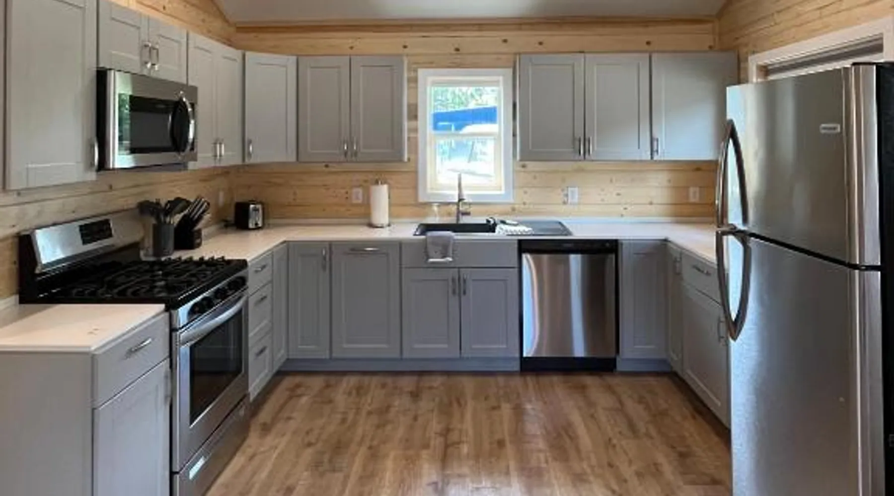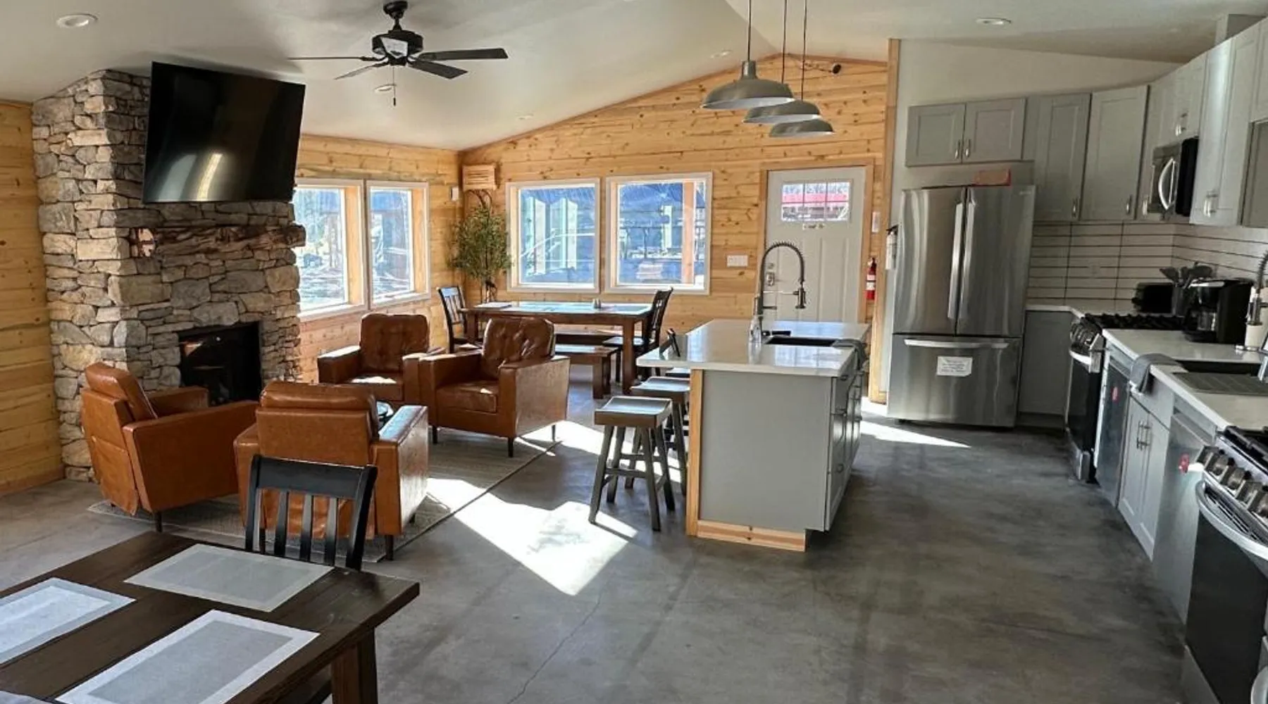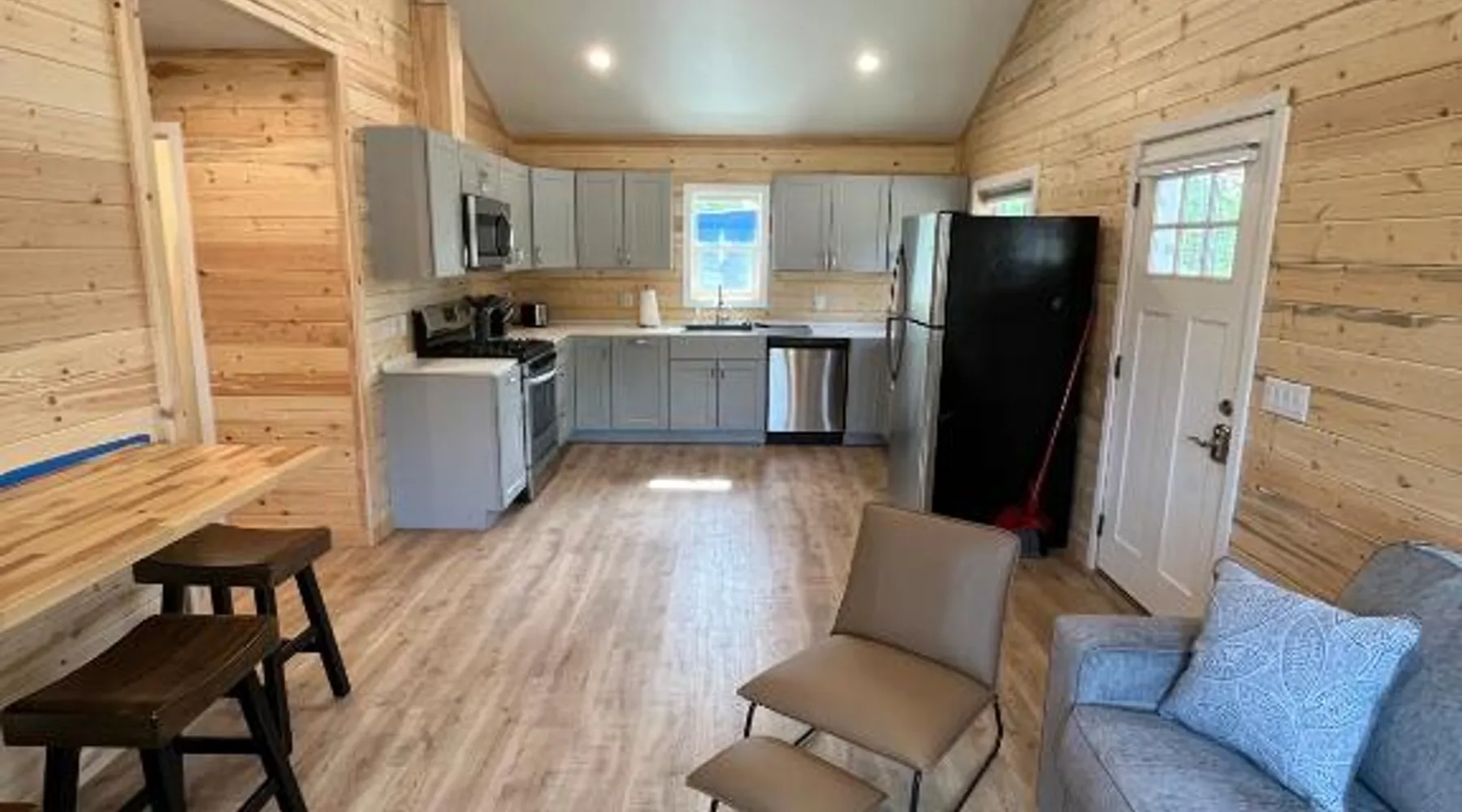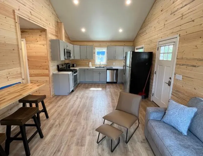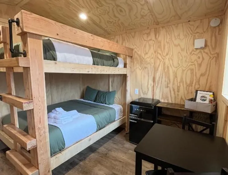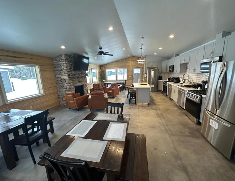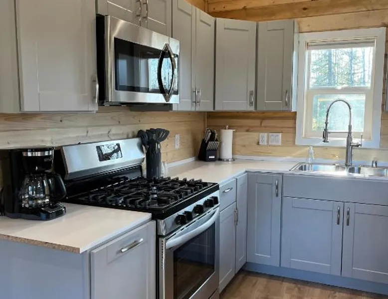 Comfortable Accommodations: Kenai Adventure Cabins in Soldotna offers family rooms with private bathrooms, ground-floor units, and shared bathrooms. Each room includes a sofa bed, TV, and kitchen facilities. Essential Facilities: Guests enjoy free WiFi, private and express check-in and check-out services, a lounge, outdoor fireplace, and barbecue facilities. The property also features a shared kitchen, laundry service, and outdoor seating area. Convenient Location: Located 9.9 mi from Kenai Municipal Airport, the homestay provides free on-site private parking. Nearby attractions include Kenai Fjords National Park and the Kenai River. The spacious double room offers a washing machine, a tea and coffee maker, as well as a private bathroom boasting a walk-in shower and a bath. Guests will find a stovetop, a refrigerator, a dishwasher and kitchenware in the well-fitted kitchen. The double room also features a barbecue. A seating area with a flat-screen TV, a dining area and outdoor furniture are offered in this double room. The unit has 3 beds.
