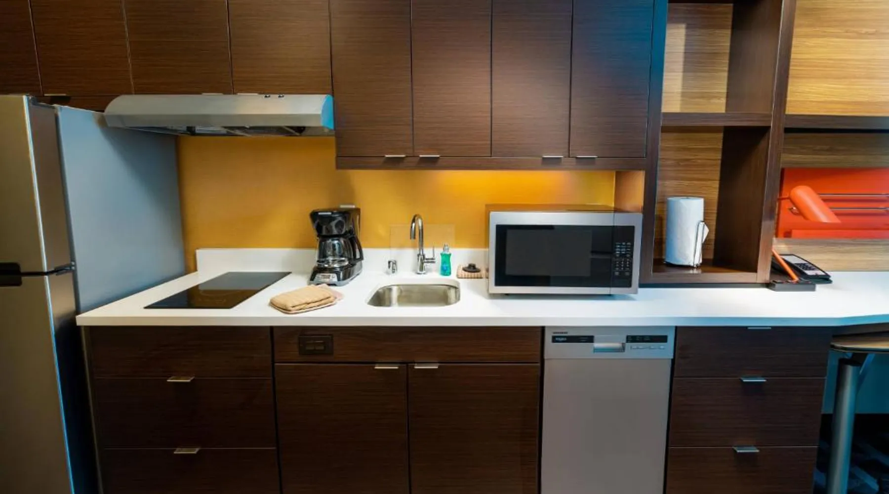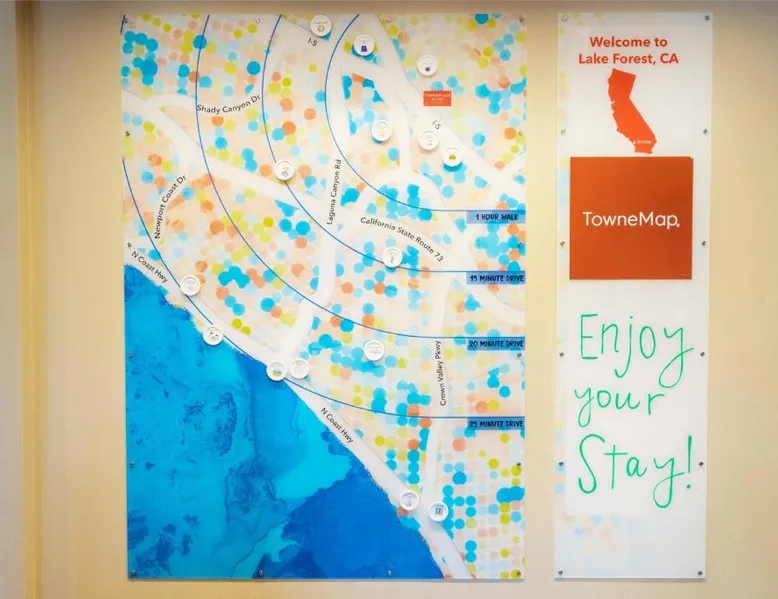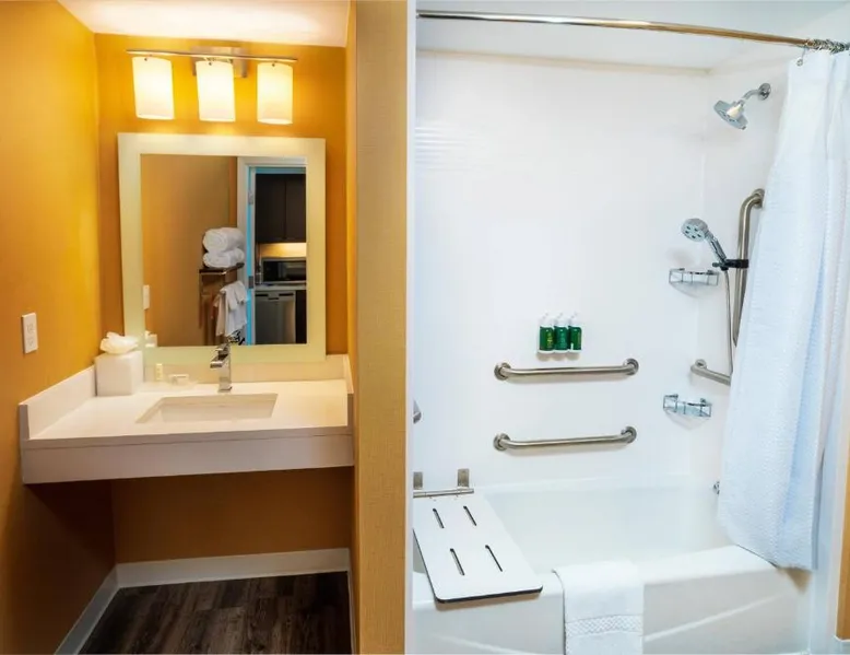 Comfortable Accommodations: TownePlace Suites Irvine Lake Forest in Lake Forest offers family rooms with air-conditioning, sofa beds, and modern amenities including a coffee machine and refrigerator. Each room features a work desk and free WiFi, ensuring a pleasant stay. Leisure Facilities: Guests can enjoy a fitness center, year-round outdoor swimming pool, and free use of bicycles. Additional facilities include a minimarket, electric vehicle charging station, and a hairdresser/beautician. Convenient Location: Located 9.9 mi from John Wayne Airport, the hotel is near attractions such as South Coast Plaza (12 mi), Fashion Island (14 mi), and Disneyland (19 mi). Free on-site private parking is available. Air conditioning, a coffee machine and a safe deposit box are available in this spacious suite.