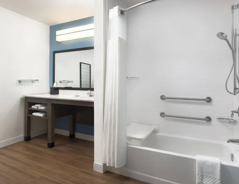 Comfortable Accommodations: Residence Inn by Marriott San Francisco Airport San Mateo in San Mateo offers family rooms with air-conditioning, kitchenettes, and private bathrooms. Each room includes a work desk, dining area, and free WiFi. Exceptional Facilities: Guests enjoy a fitness center, year-round outdoor swimming pool, and an outdoor fireplace. Additional amenities include a lounge, minimarket, and barbecue facilities. Delicious Breakfast: A complimentary American buffet breakfast is served daily, highly praised by guests for its quality and variety. Convenient Location: Located 6.8 mi from San Francisco International Airport, the hotel is near attractions such as Shoreline Amphitheater (17 mi) and Oracle Park (21 mi). Free on-site parking is available. Providing free toiletries, this studio includes a private bathroom with a walk-in shower and a hairdryer. In the kitchenette, guests will find a stovetop, a refrigerator, a dishwasher and kitchenware. This wheelchair accessible studio features air conditioning, a seating area with a flat-screen TV and a roll-in shower. The unit offers 2 beds.