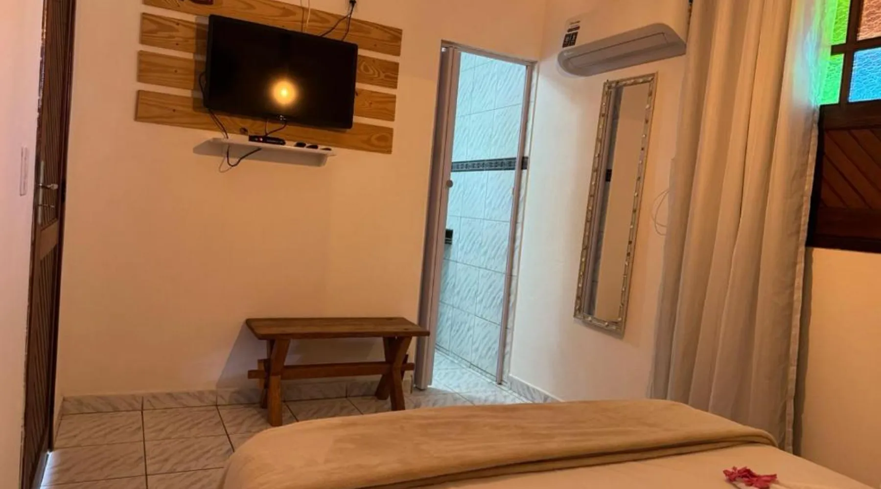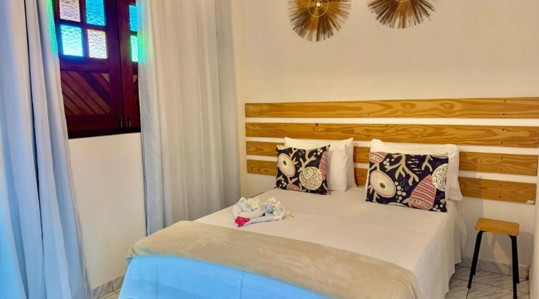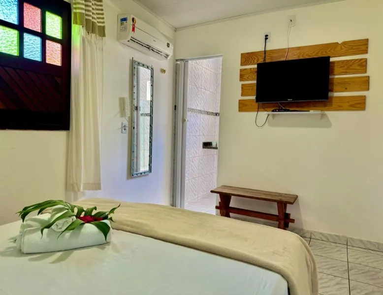 Elegant Accommodations: Pousada Chalés do porto in Porto de Pedras offers a 5-star hotel experience with a swimming pool boasting stunning views, a sun terrace, and a lush garden. Comfortable Amenities: Guests enjoy private check-in and check-out, a concierge service, a minimarket, a hairdresser/beautician, family rooms, full-day security, room service, and bike hire. Comfortable Rooms: Rooms feature air-conditioning, balconies with garden views, private bathrooms, sofa beds, work desks, mini-bars, showers, and TVs. Ground-floor units are available. Dining and Activities: A buffet breakfast is served daily. Walking tours are available. Pontal Beach is a 6-minute walk away. Maceio/Zumbi dos Palmares International Airport is 63 mi from the property. This air-conditioned double room includes a flat-screen TV with cable channels, a private bathroom as well as a balcony with garden views. The unit offers 1 bed.