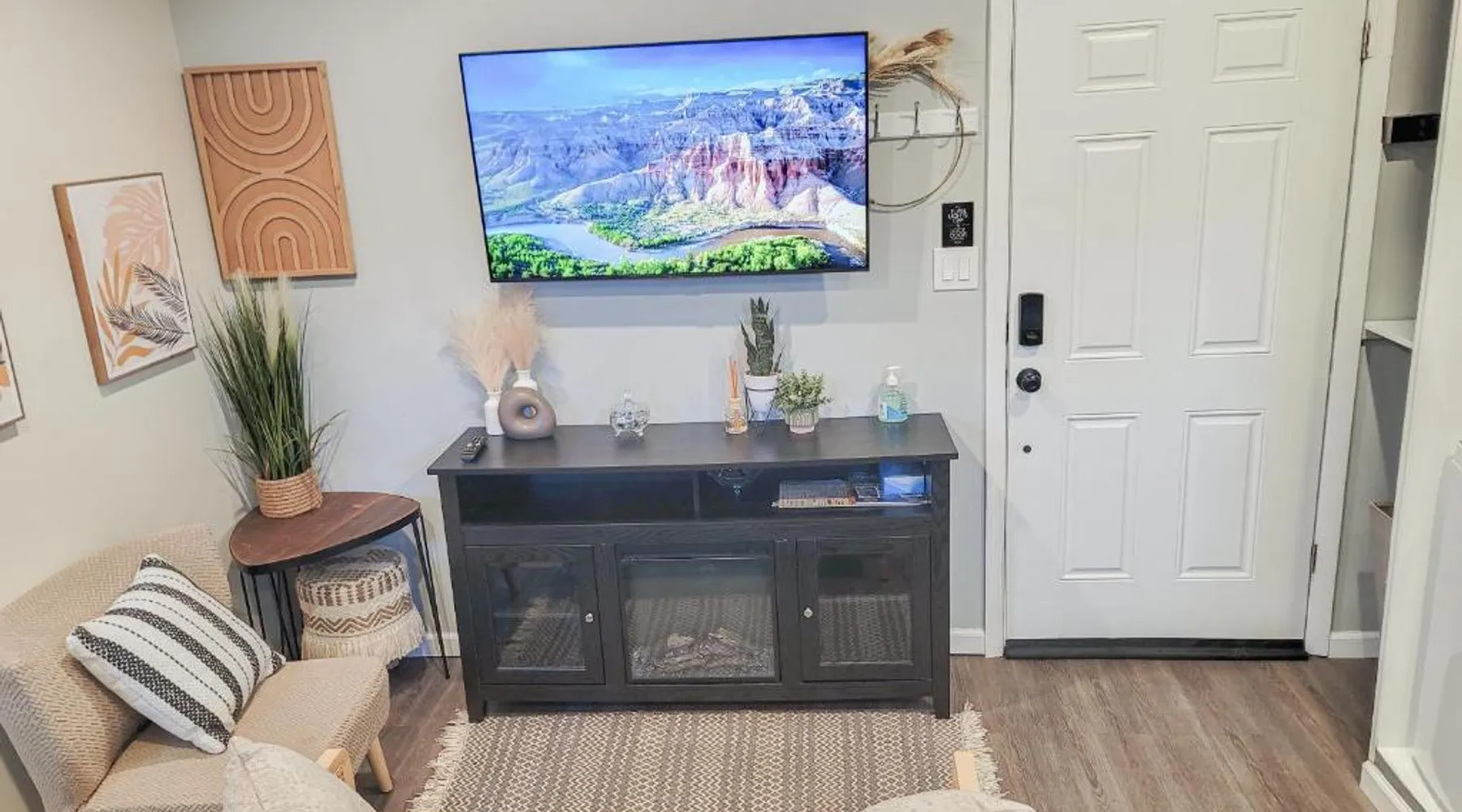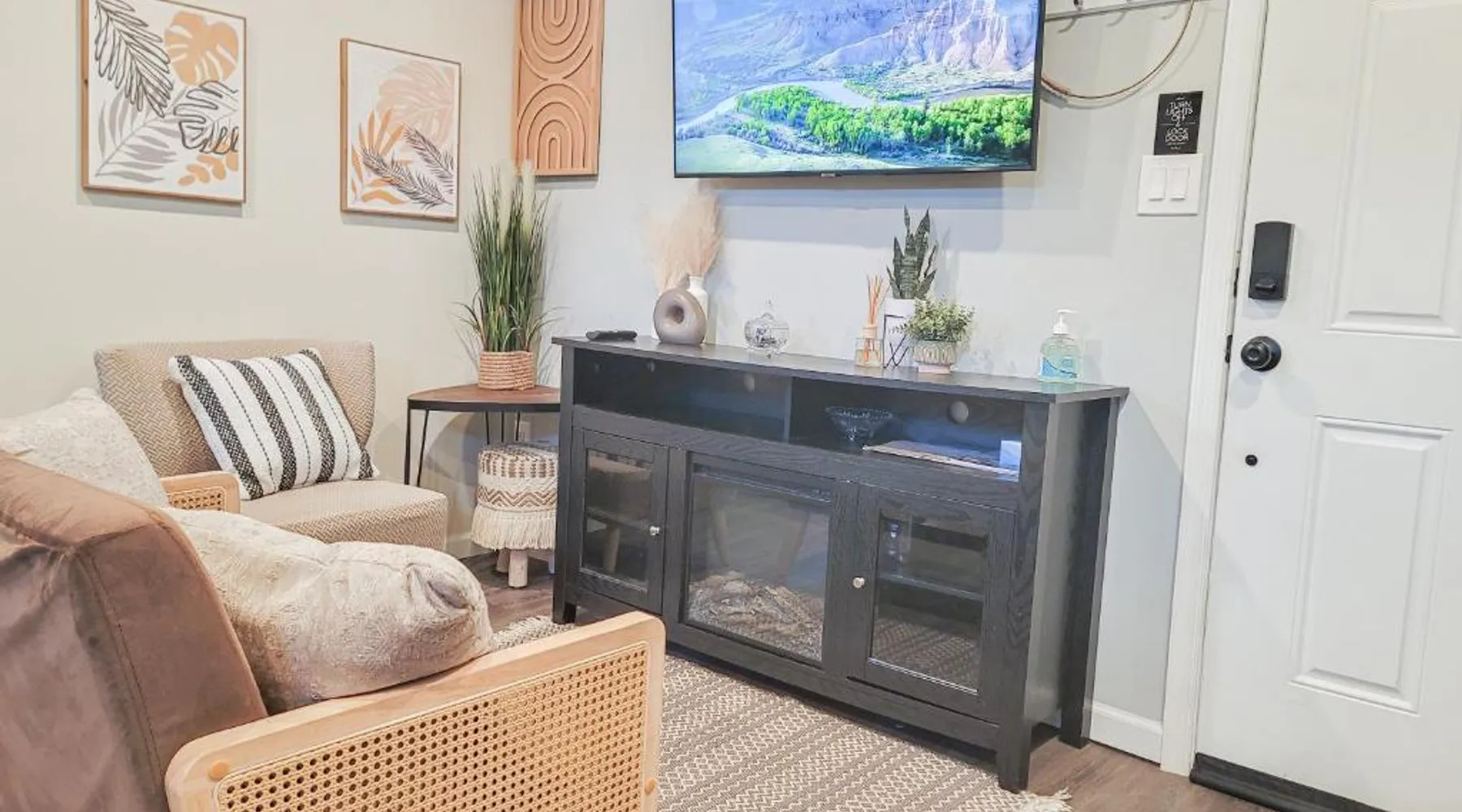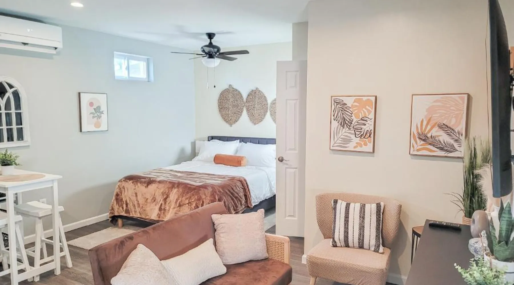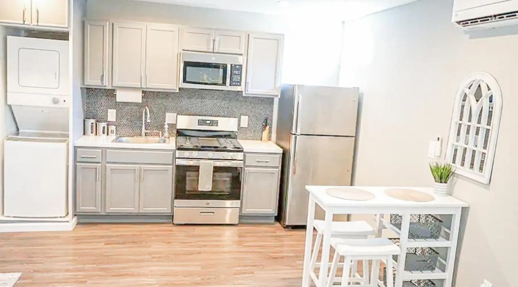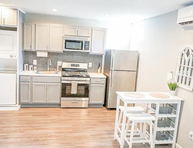 Comfortable Living Space: Unique Studio in York offers a spacious apartment in York, United States. Guests enjoy free WiFi, air-conditioning, and a terrace. The property features a private bathroom, fully equipped kitchen, and a cozy fireplace. Convenient Facilities: The apartment provides free on-site private parking, an electric vehicle charging station, and an outdoor seating area. Additional amenities include a washing machine, dining table, and a TV. Nearby Attractions: Located 29 mi from Lancaster Airport, the apartment is close to President James Buchanan's Wheatland (25 mi), Pennsylvania State Capitol (25 mi), and Fulton Theater (26 mi). Other points of interest include Central Market and the National Civil War Museum, each 27 mi away. This studio's standout feature is the fireplace. The well-equipped kitchen features a stovetop, a refrigerator and an oven. This air-conditioned studio has a private bathroom, a washing machine, a coffee machine as well as a terrace. The unit has 1 bed.