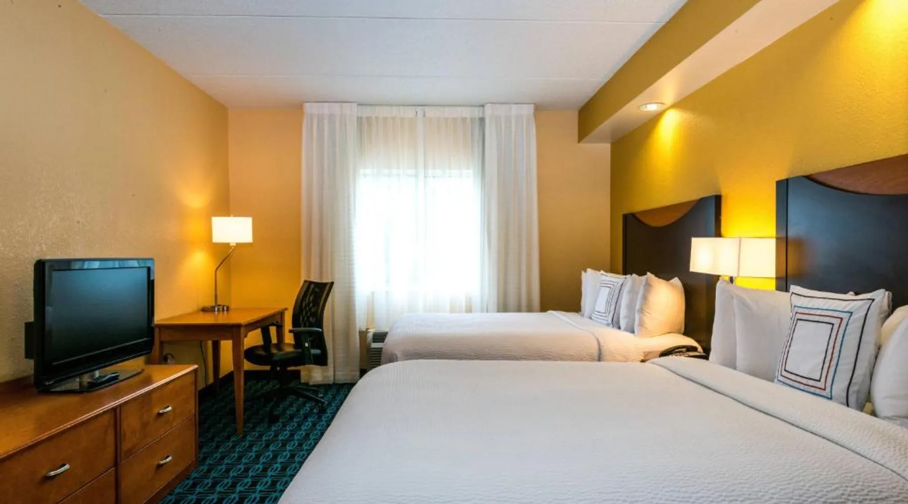 Comfortable Accommodations: Fairfield Inn & Suites by Marriott Nashville at Opryland in Nashville offers family rooms with air-conditioning, private bathrooms, and free WiFi. Each room includes a work desk, seating area, TV, and free toiletries. Exceptional Facilities: Guests can enjoy an indoor swimming pool, fitness center, and a 24-hour front desk. Additional amenities include daily housekeeping service, a continental, American, or buffet breakfast, and free toiletries. Prime Location: Located 7.5 mi from Nashville International Airport, the hotel is near Opryland Hotel Garden (1.2 mi) and Gaylord Opryland Convention Center (1.1 mi). Nearby attractions include Two Rivers Mansion (3.7 mi) and Andrew Jackson's Hermitage (11 mi). Guests appreciate the attentive staff and excellent service. The unit has 2 beds.