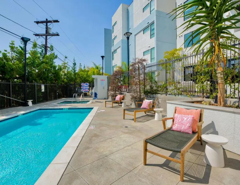 Spacious Accommodations: LAX 1 Bed Luxe with FREE PARKING in Los Angeles offers a spacious apartment with one bedroom, one bathroom, and a living room. Guests enjoy a terrace and balcony with garden views, complemented by free WiFi. Modern Amenities: The apartment features air-conditioning, a kitchenette, washing machine, and a private pool. Additional amenities include a hot tub, sauna, mini-bar, and TV, ensuring a comfortable stay. Convenient Location: Located 2.5 mi from Los Angeles International Airport, the property is close to attractions such as SoFi Stadium (3.7 mi), Venice Beach Boardwalk (6.2 mi), and Santa Monica Pier (8.1 mi). Free on-site private parking is available. This apartment's standout features are the private pool, hot tub and sauna. Featuring 1 bedroom and 1 bathroom, this spacious apartment offers a living room and terrace where you can relax. The apartment's kitchen is available for cooking and storing food. The air-conditioned apartment provides a flat-screen TV, a washing machine, a mini-bar, heating as well as garden views. The unit has 3 beds.