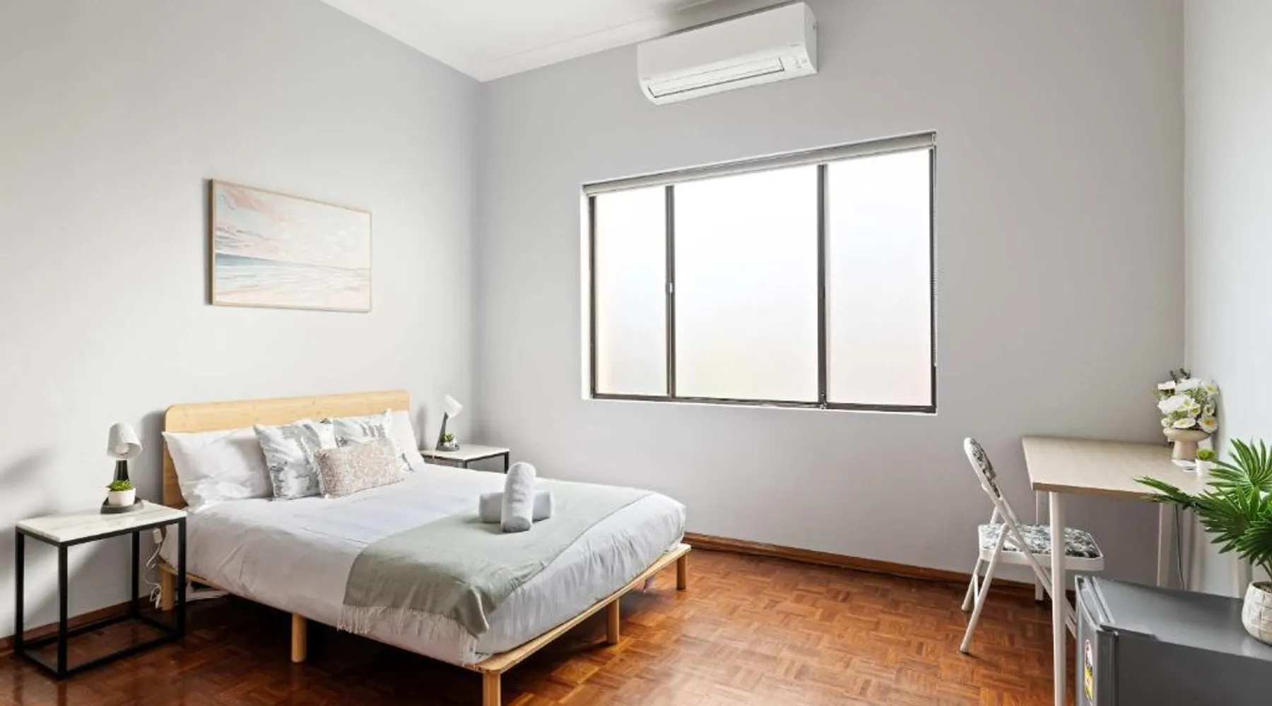 Comfortable Accommodations: Relaxing Double Room in Belmore offers a welcoming guest house experience in Belmore, Australia. Guests enjoy free WiFi, air-conditioning, and a shared kitchen. Modern Amenities: The property features a refrigerator, work desk, and shared bathroom. Additional amenities include kitchenware, ensuring a convenient and comfortable stay. Convenient Location: Located 5.6 mi from Sydney Kingsford Smith Airport, the guest house is close to Accor Stadium (6.8 mi), Bicentennial Park (6.8 mi), and Sydney Showground (7.5 mi). An ice-skating rink is also nearby. This double room has a shared bathroom and air conditioning. The unit has 1 bed.