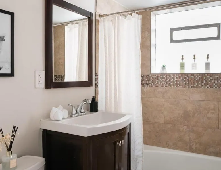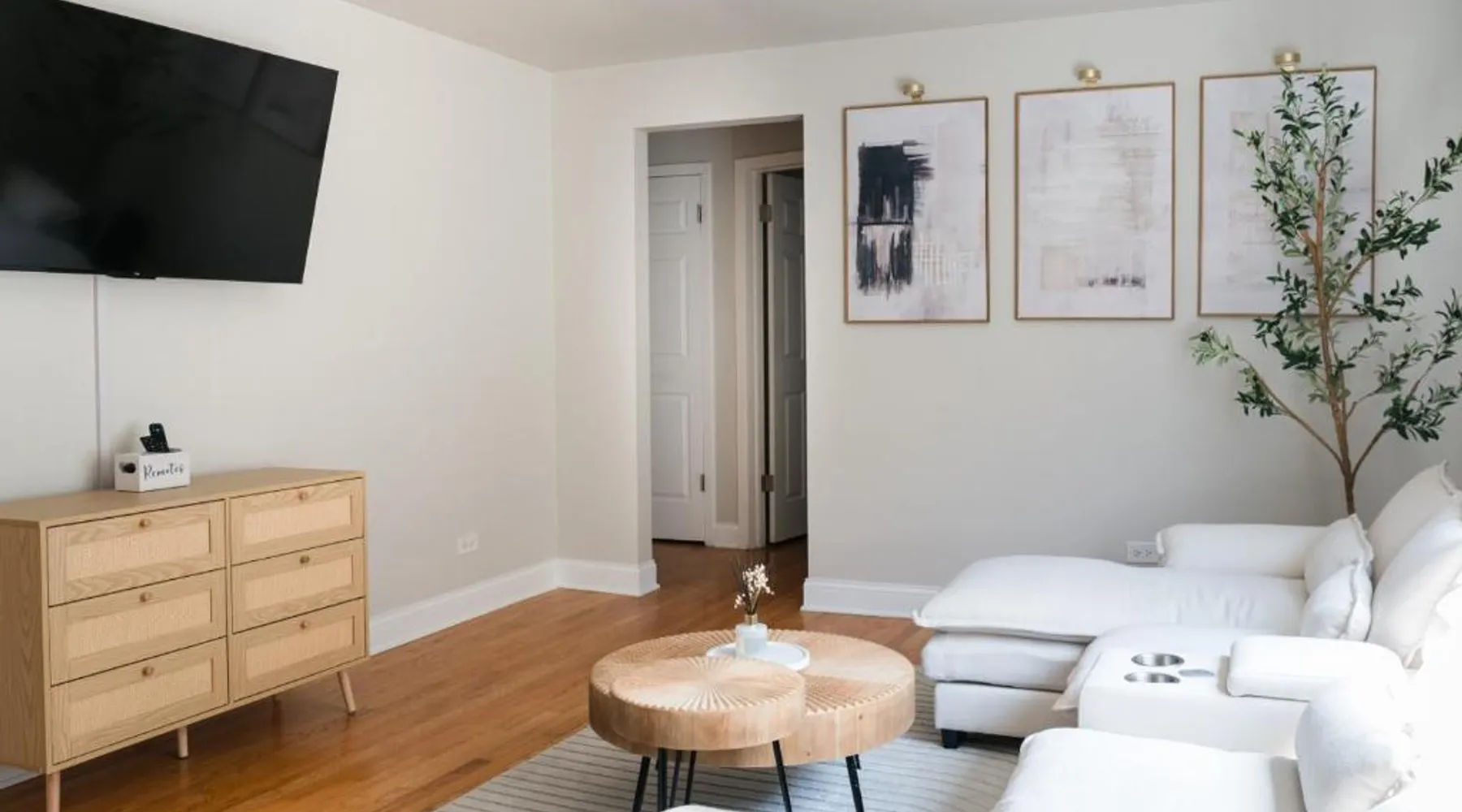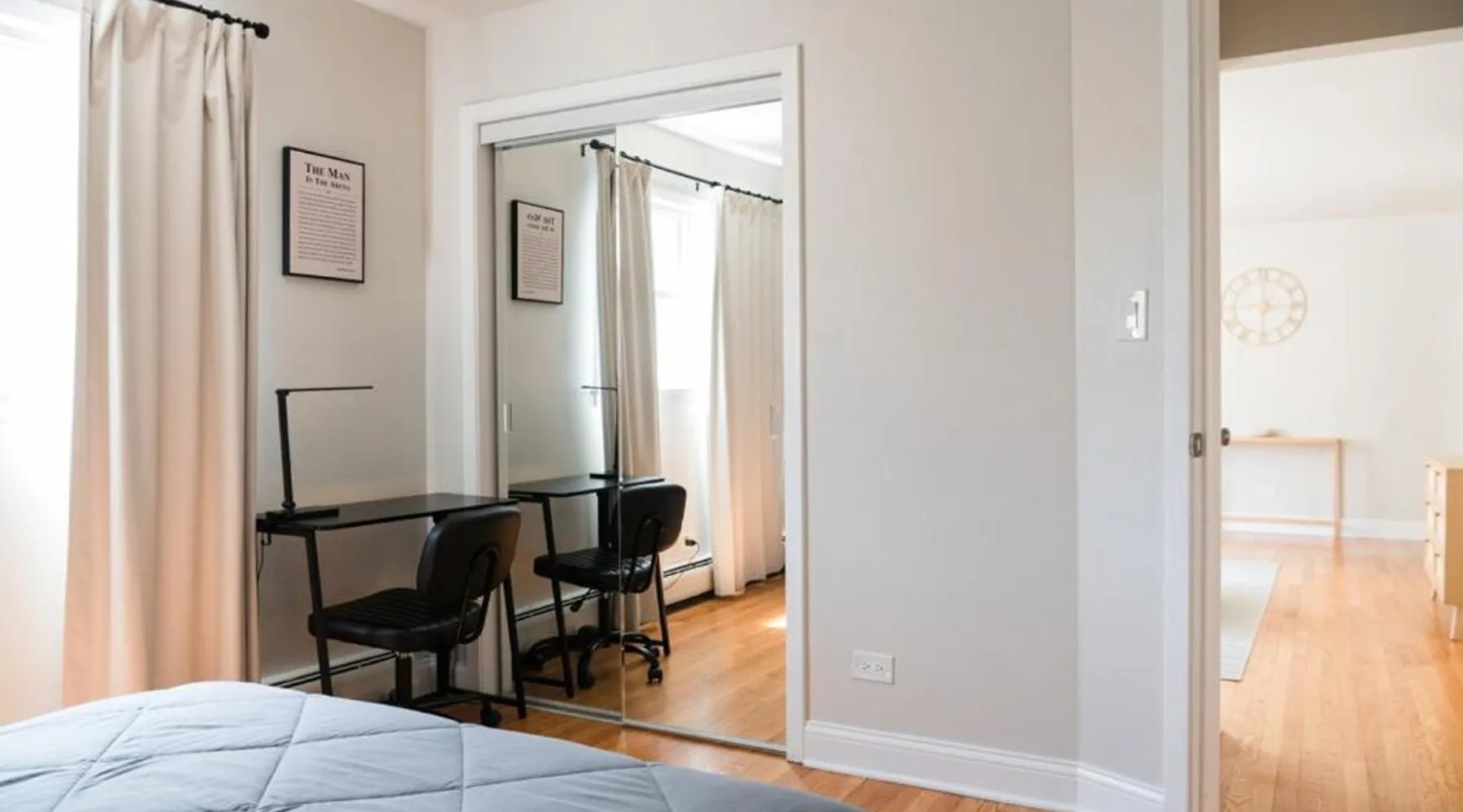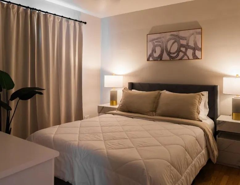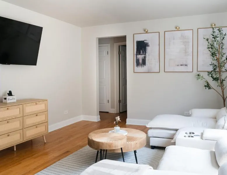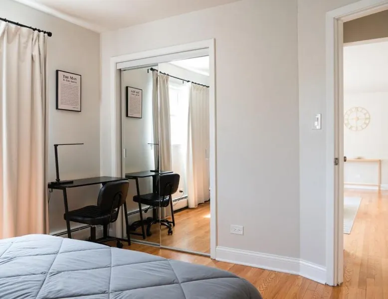 Spacious Accommodations: The apartment offers two bedrooms and a bathroom, providing ample space for guests. Modern Amenities: Guests enjoy free WiFi, air-conditioning, a fully equipped kitchen, washing machine, and a work desk. Additional amenities include a spa and wellness center, laundry service, and luggage storage. Convenient Location: Located in Chicago, the property is 3.7 mi from Chicago O'Hare International Airport. Nearby attractions include Wrigley Field (11 mi), Lincoln Park Zoo (14 mi), and the Chicago Museum of Contemporary Art (15 mi). Boasting a private entrance, this spacious apartment also comes with 2 separate bedrooms and 1 bathroom with a bath and a shower. Meals can be prepared in the well-fitted kitchen, which features a stovetop, a refrigerator, a dishwasher and kitchenware. The apartment features air conditioning, a washing machine, a tea and coffee maker, a dining area, as well as a TV with cable channels. The unit has 2 beds.