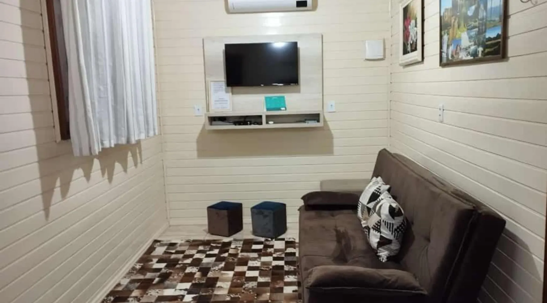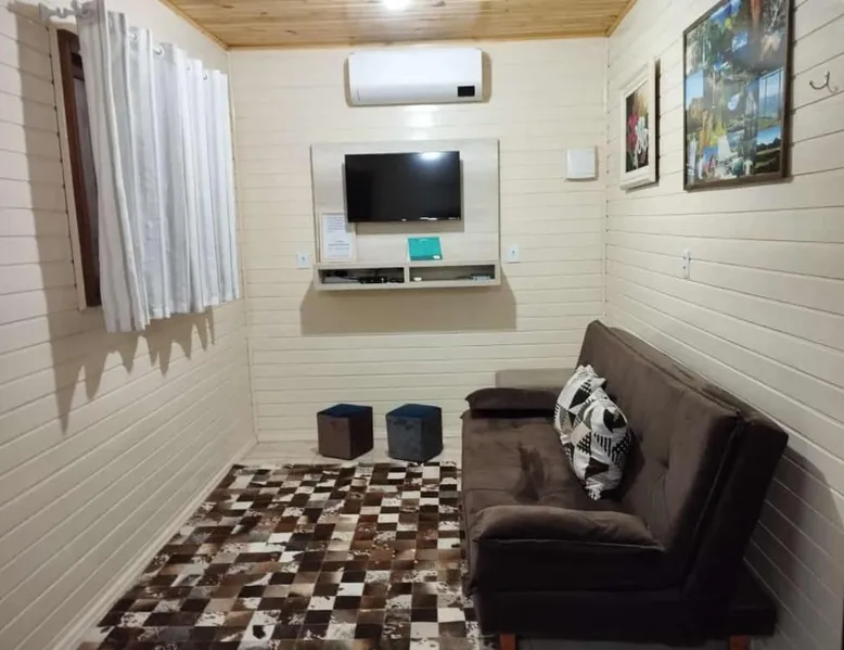 Comfortable Accommodations: Pousada Vó Irene in Urubici offers a holiday home with two bedrooms and a living room. The property features a garden, free WiFi, and free on-site private parking. Modern Amenities: Guests enjoy air-conditioning, a balcony, patio, and a fully equipped kitchen with a refrigerator, microwave, oven, and stovetop. Additional amenities include a dining area, sofa bed, TV, and soundproofing. Convenient Location: Located 80 mi from Planalto Serrano Regional Airport, the property is highly rated for its convenient location, room cleanliness, and attentive host. In the fully equipped kitchen, guests will find a stovetop, a refrigerator, kitchenware and an oven. The air-conditioned holiday home provides a flat-screen TV with cable channels, a private entrance, soundproof walls, a seating area as well as garden views. The unit offers 3 beds.