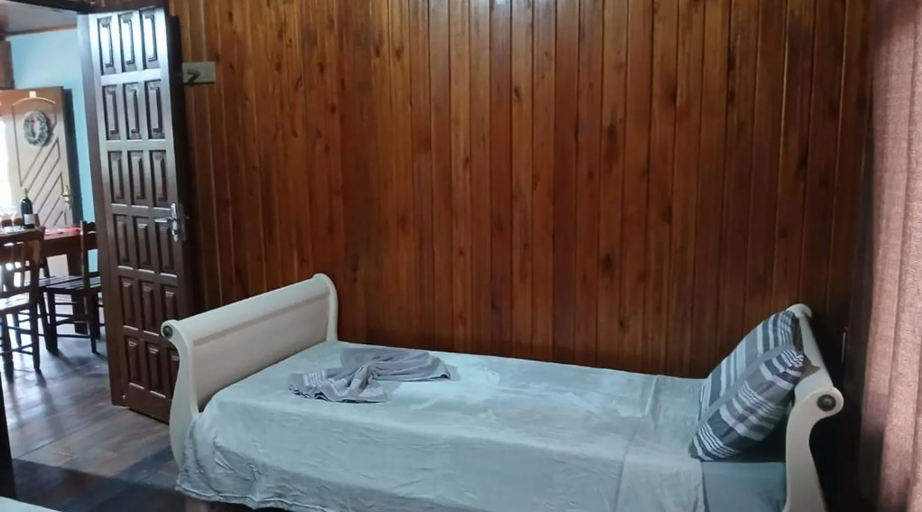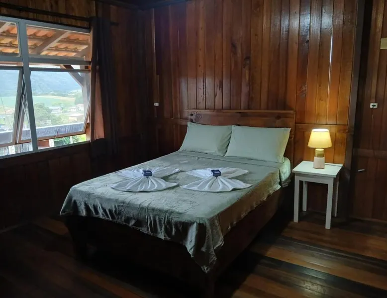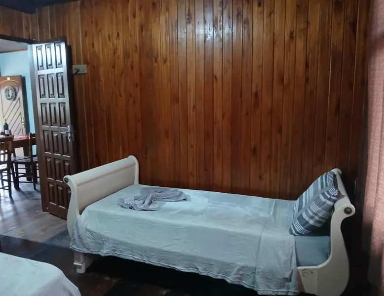 Comfortable Accommodations: Casas particulares Heil e Abadir in Urubici offers family rooms with private bathrooms. Each unit features a balcony, kitchen, fireplace, and dining area. Outdoor Spaces: Guests can relax in the garden or on the balcony, enjoying mountain and garden views. The property includes an outdoor furniture set and a barbecue for outdoor entertainment. Modern Amenities: The holiday home provides free WiFi, a TV, and a fully equipped kitchen with a stovetop, refrigerator, and electric kettle. Additional amenities include a dining table, sofa, and seating area. Convenient Location: Located 81 mi from Planalto Serrano Regional Airport, the property offers easy access to local attractions. The unit has 2 beds.