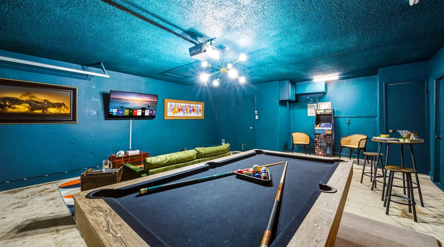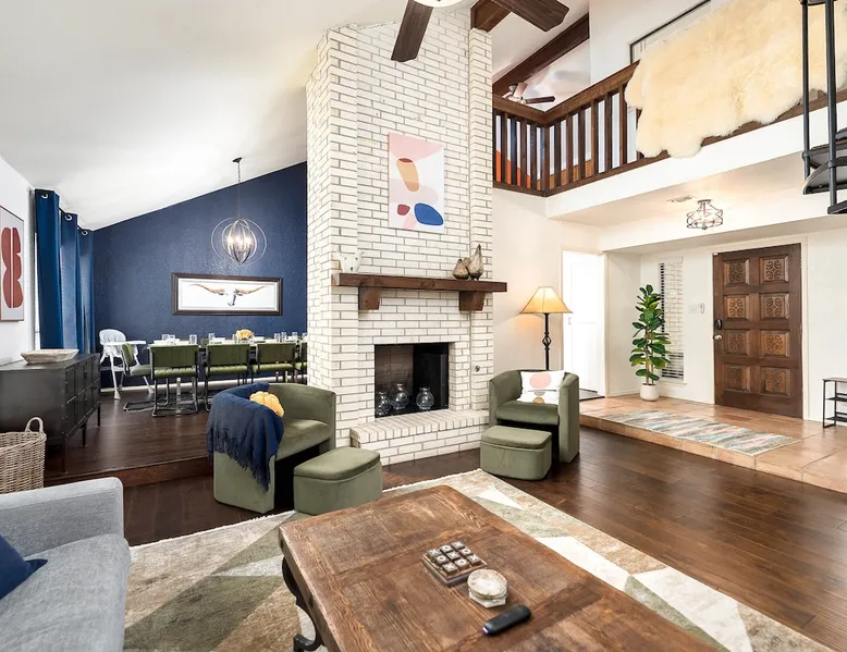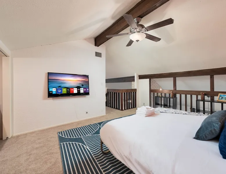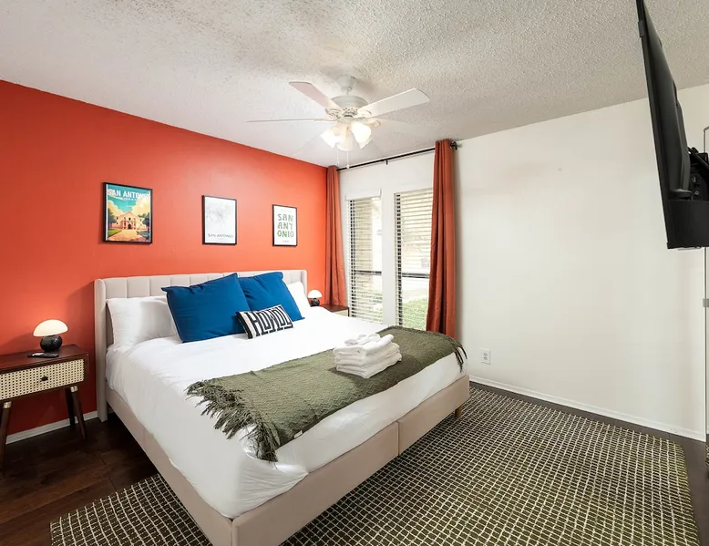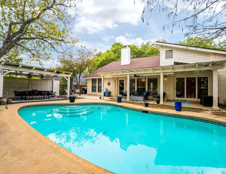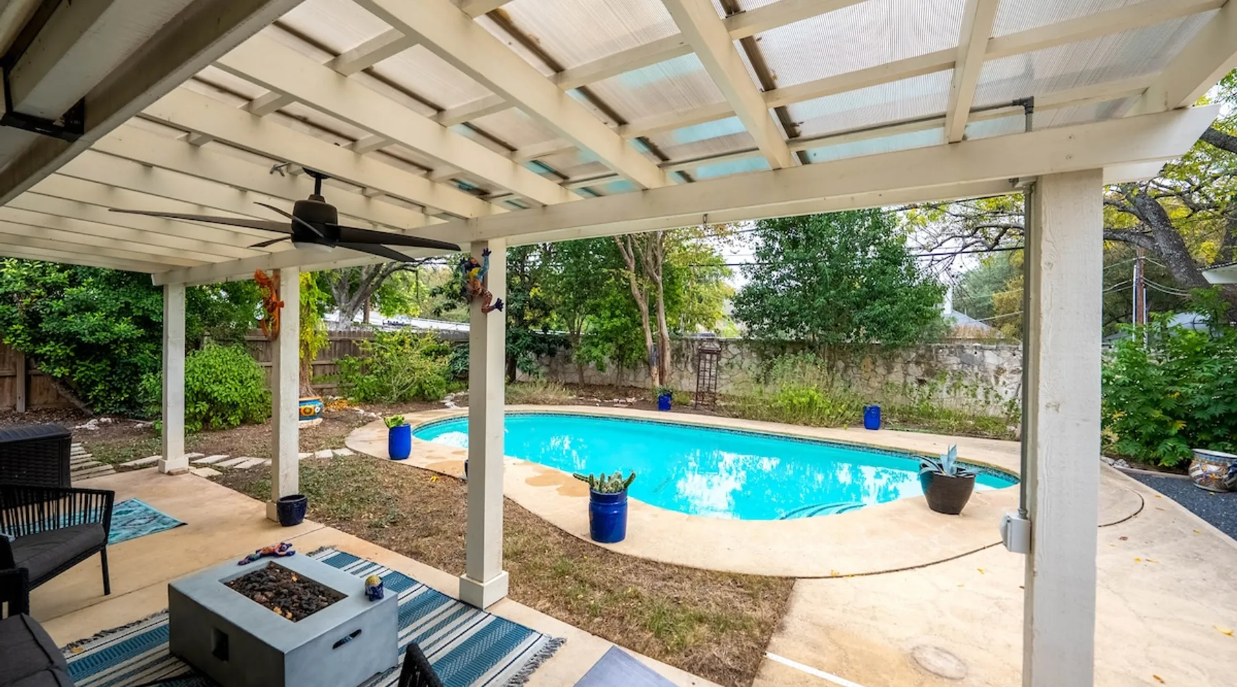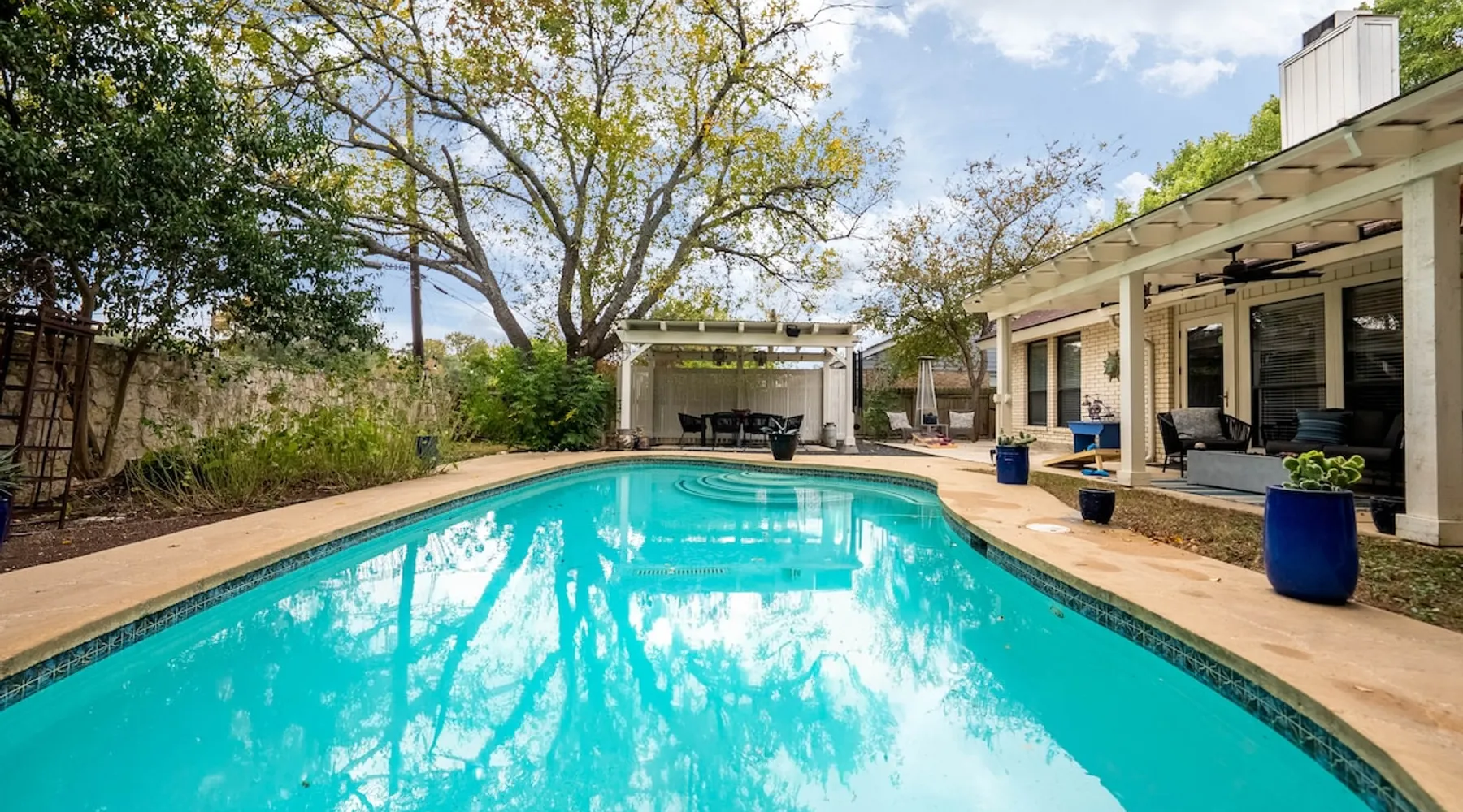 ☆☆ Be among the first to stay! ☆☆ This professionally designed San Antonio retreat sleeps 10 and features: • Private saltwater pool & outdoor dining • Garage game lounge with pool table, arcade & Xbox • Spacious living areas & full kitchen • Stylish bedrooms with TVs & mini-fridges • Family-friendly with pack ’n play & high chair • Free parking & great location near top attractions, shops & dining! • Super fast wifi The space ☆☆ KEY FEATURES ☆☆ ☀ Sleeps up to 10 guests comfortably ☀ 4 bedrooms, 2 full bathrooms ☀ Private salt water pool, outdoor dining & fire table lounge ☀ Garage game room with pool table, arcade, Xbox & TV ☀ Fully equipped kitchen + coffee bar ☀ TVs in every bedroom ☀ Loft with wet bar & king bed ☀ Family-friendly: high chair & pack ’n play ☀ Free parking in driveway and street ☀ Quiet, safe neighborhood near major attractions ☀ Super fast WiFi throughout ☆☆ BEDROOMS ☆☆ Each bedroom has its own personality and thoughtful design touches that make every guest feel right at home. Primary Suite (Main Level) – King bed, en suite bathroom, private access to the pool, and bold, modern décor that balances color and calm. Perfect for parents or couples wanting privacy. Bedroom 2 (Main Level) – King bed with soft textures, bright accents, and nearby access to the shared hall bath. Bedroom 3 (Main Level) – Queen bed, cozy ambiance, and curated art that ties into the home’s cheerful color palette. Loft Bedroom (Upstairs) – A retreat all its own, featuring a king bed, TV, wet bar, and extra seating area—ideal for a second couple or grandparents. Living Room Pull-Out Sofa – Full-size mattress, comfortable enough for kids or extra guests. Every room includes a TV, ceiling fan, and clothing storage. ☆☆ BATHROOMS ☆☆ Two full bathrooms make morning routines easy for everyone. The en suite primary bath features modern fixtures, fresh white tile, and a spacious shower. The shared hall bath serves the other bedrooms and loft with the same clean, updated design. Both bathrooms come stocked with shampoo, conditioner, body wash, plush towels, and all essentials—so you can pack light and relax more. ☆☆ KITCHEN & RELAXING AREAS ☆☆ The open-concept kitchen and living area are the heart of the home, designed for connection and comfort. The kitchen features plenty of counter space, a large side-by-side fridge/freezer, electric range, microwave, and all cookware. Brew your favorite morning drink at the full coffee bar with Keurig Duo, flavored creamers and syrups, and assorted pods. A bistro table for four makes casual breakfasts easy, while the main dining area comfortably seats your group for family-style dinners or celebrations. In the living room, gather around for movie nights or casual conversations. The décor is colorful and inviting, with art pieces that pop against warm wood tones. Natural light fills the space, and the spiral staircase adds an architectural focal point leading up to the loft. For even more fun, head to the garage game room, transformed into a playful escape with a pool table, arcade cabinet, Xbox, and TV. It’s the perfect spot for kids and adults to unwind together after a day exploring San Antonio. ☆☆ OUTSIDE SPACE ☆☆ Step into your private backyard oasis—this is where Phantom Valley truly shines. The sparkling swimming pool takes center stage, surrounded by a privacy fence and lush greenery. Enjoy outdoor meals under the covered dining area for six, complete with Bluetooth speakers, ceiling fan, and soft string lights that glow after sunset. Unwind by the fire table with a glass of wine, or keep cozy near the propane heater during cool evenings. Comfortable lounge seating makes it easy to spend the entire day outdoors, from morning coffee to evening stargazing. Fire up the propane BBQ grill for easy family cookouts. Whether it’s poolside fun, family dinners, or quiet nights under the lights, this space was designed for togetherness. While the pool isn’t heated, guests love it for sunny-day swims and relaxing afternoons nearly all year long in San Antonio’s mild climate. ☆☆ FAMILY-FRIENDLY COMFORTS ☆☆ Phantom Valley was built with families in mind. You’ll find a high chair, pack ’n play, and board games for little ones. Every bedroom has blackout curtains and ceiling fans for comfortable sleep. Fast Wi-Fi, Smart TVs, and multiple seating areas mean everyone can enjoy their own rhythm—whether it’s streaming a show, reading a book, or playing a round of pool. Laundry is available on-site with washer and dryer access, so extended stays feel as seamless as short weekend getaways. ★☆ BOOK NOW & BE AMONG OUR FIRST GUESTS ☆★ Be among the first to experience this brand-new San Antonio retreat. We’ve created a space designed for families, comfort, and unforgettable moments. From morning swims and afternoon games to late-night conversations by the fire table, Phantom Valley Retreat is ready to host your next chapter of memories. Reserve your stay today and take advantage of this exclusive launch offer before it’s gone! Guest access Guests will have full access to the entire home and all amenities during their stay. Feel free to enjoy all indoor and outdoor spaces, including the pool, backyard games, and lounge areas. The only locked spaces are the supply closets. Easy Check-In Process🏡 It’s just like when you check in at a hotel and give your ID to the front desk, except our front desk is online! It's super easy to complete on your phone! We use a web-based system called Happy Guest, and you’ll receive a personalized rental agreement to sign in order to receive your arrival instructions. It’s simple: finish these steps, and you’re all set to enjoy your stay! Note: arrival info won’t be sent without completing these steps, and refunds aren’t possible if skipped. Your personalized guidebook will give you all the info about the