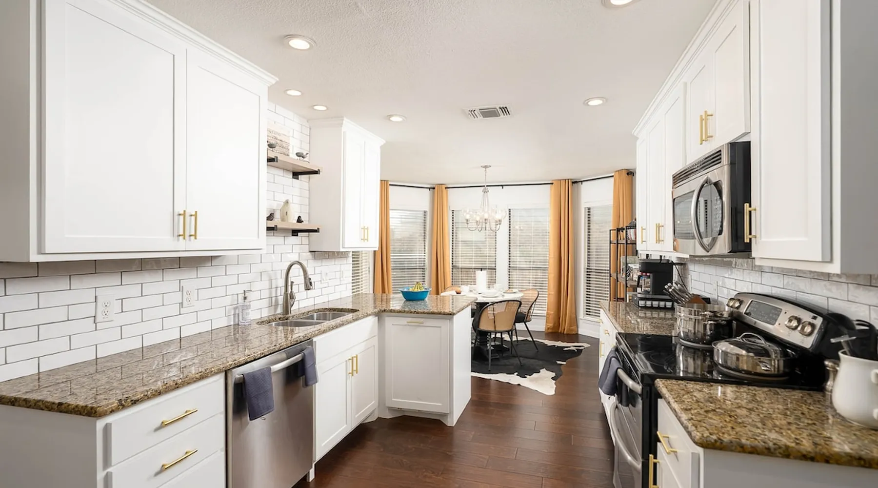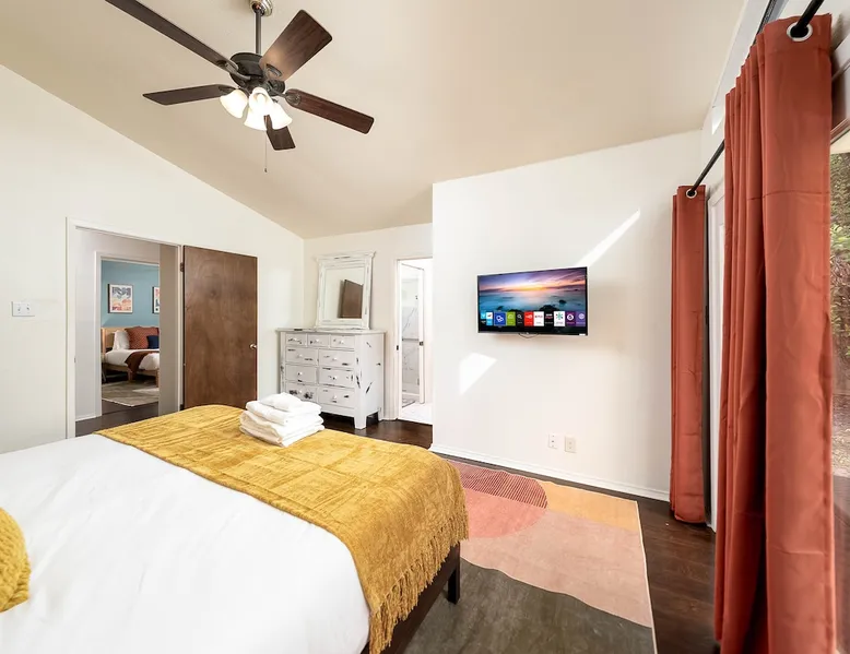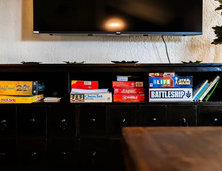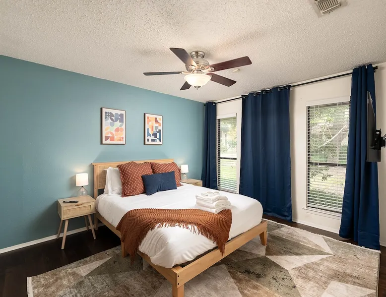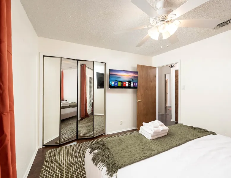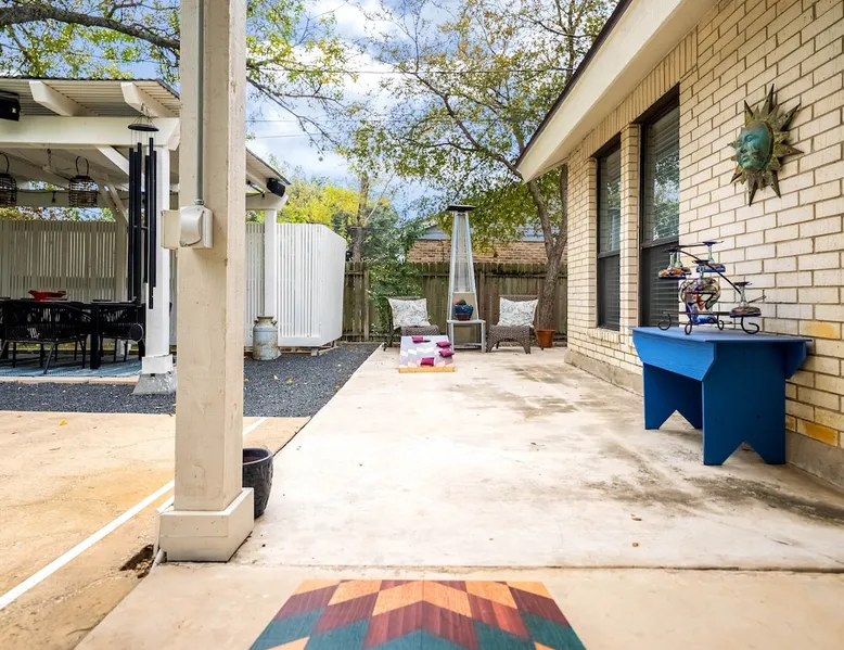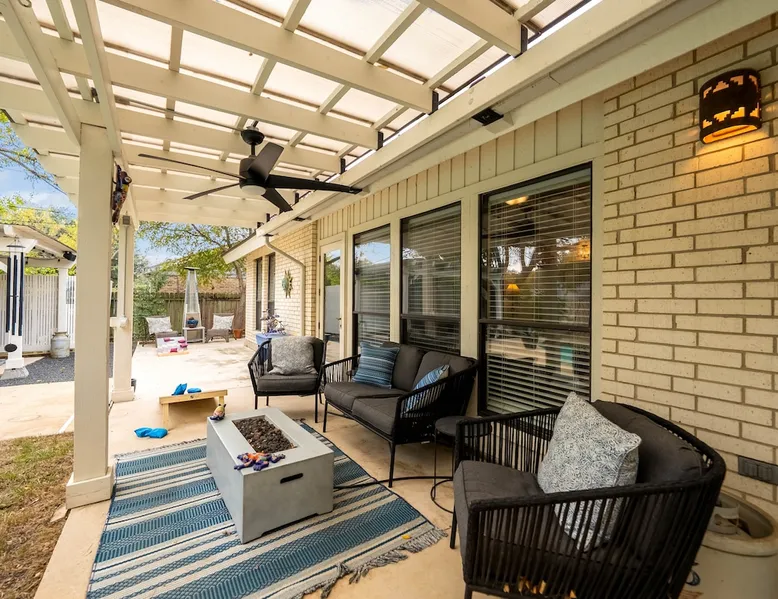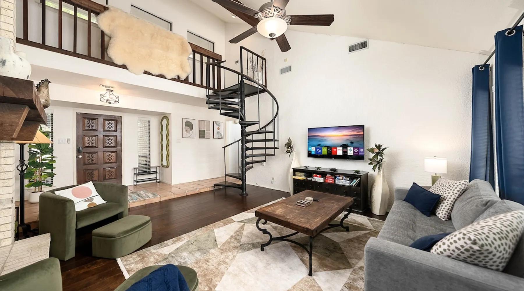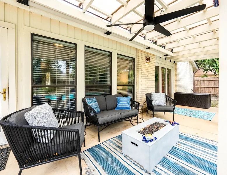 ☆☆ Be among the first to stay! ☆☆ This professionally designed San Antonio retreat sleeps 10 and features: • Private saltwater pool & outdoor dining • Garage game lounge with pool table, arcade & Xbox • Spacious living areas & full kitchen • Stylish bedrooms with TVs & mini-fridges • Family-friendly with pack ’n play & high chair • Free parking & great location near top attractions, shops & dining! • Super fast wifi The space ☆☆ KEY FEATURES ☆☆ ☀ Sleeps up to 10 guests comfortably ☀ 4 bedrooms, 2 full bathrooms ☀ Private salt water pool, outdoor dining & fire table lounge ☀ Garage game room with pool table, arcade, Xbox & TV ☀ Fully equipped kitchen + coffee bar ☀ TVs in every bedroom ☀ Loft with wet bar & king bed ☀ Family-friendly: high chair & pack ’n play ☀ Free parking in driveway and street ☀ Quiet, safe neighborhood near major attractions ☀ Super fast WiFi throughout ☆☆ BEDROOMS ☆☆ Each bedroom has its own personality and thoughtful design touches that make every guest feel right at home. Primary Suite (Main Level) – King bed, en suite bathroom, private access to the pool, and bold, modern décor that balances color and calm. Perfect for parents or couples wanting privacy. Bedroom 2 (Main Level) – King bed with soft textures, bright accents, and nearby access to the shared hall bath. Bedroom 3 (Main Level) – Queen bed, cozy ambiance, and curated art that ties into the home’s cheerful color palette. Loft Bedroom (Upstairs) – A retreat all its own, featuring a king bed, TV, wet bar, and extra seating area—ideal for a second couple or grandparents. Living Room Pull-Out Sofa – Full-size mattress, comfortable enough for kids or extra guests. Every room includes a TV, ceiling fan, and clothing storage. ☆☆ BATHROOMS ☆☆ Two full bathrooms make morning routines easy for everyone. The en suite primary bath features modern fixtures, fresh white tile, and a spacious shower. The shared hall bath serves the other bedrooms and loft with the same clean, updated design. Both bathrooms come stocked with shampoo, conditioner, body wash, plush towels, and all essentials—so you can pack light and relax more. ☆☆ KITCHEN & RELAXING AREAS ☆☆ The open-concept kitchen and living area are the heart of the home, designed for connection and comfort. The kitchen features plenty of counter space, a large side-by-side fridge/freezer, electric range, microwave, and all cookware. Brew your favorite morning drink at the full coffee bar with Keurig Duo, flavored creamers and syrups, and assorted pods. A bistro table for four makes casual breakfasts easy, while the main dining area comfortably seats your group for family-style dinners or celebrations. In the living room, gather around for movie nights or casual conversations. The décor is colorful and inviting, with art pieces that pop against warm wood tones. Natural light fills the space, and the spiral staircase adds an architectural focal point leading up to the loft. For even more fun, head to the garage game room, transformed into a playful escape with a pool table, arcade cabinet, Xbox, and TV. It’s the perfect spot for kids and adults to unwind together after a day exploring San Antonio. ☆☆ OUTSIDE SPACE ☆☆ Step into your private backyard oasis—this is where Phantom Valley truly shines. The sparkling swimming pool takes center stage, surrounded by a privacy fence and lush greenery. Enjoy outdoor meals under the covered dining area for six, complete with Bluetooth speakers, ceiling fan, and soft string lights that glow after sunset. Unwind by the fire table with a glass of wine, or keep cozy near the propane heater during cool evenings. Comfortable lounge seating makes it easy to spend the entire day outdoors, from morning coffee to evening stargazing. Fire up the propane BBQ grill for easy family cookouts. Whether it’s poolside fun, family dinners, or quiet nights under the lights, this space was designed for togetherness. While the pool isn’t heated, guests love it for sunny-day swims and relaxing afternoons nearly all year long in San Antonio’s mild climate. ☆☆ FAMILY-FRIENDLY COMFORTS ☆☆ Phantom Valley was built with families in mind. You’ll find a high chair, pack ’n play, and board games for little ones. Every bedroom has blackout curtains and ceiling fans for comfortable sleep. Fast Wi-Fi, Smart TVs, and multiple seating areas mean everyone can enjoy their own rhythm—whether it’s streaming a show, reading a book, or playing a round of pool. Laundry is available on-site with washer and dryer access, so extended stays feel as seamless as short weekend getaways. ★☆ BOOK NOW & BE AMONG OUR FIRST GUESTS ☆★ Be among the first to experience this brand-new San Antonio retreat. We’ve created a space designed for families, comfort, and unforgettable moments. From morning swims and afternoon games to late-night conversations by the fire table, Phantom Valley Retreat is ready to host your next chapter of memories. Reserve your stay today and take advantage of this exclusive launch offer before it’s gone! Guest access Guests will have full access to the entire home and all amenities during their stay. Feel free to enjoy all indoor and outdoor spaces, including the pool, backyard games, and lounge areas. The only locked spaces are the supply closets. Easy Check-In Process🏡 It’s just like when you check in at a hotel and give your ID to the front desk, except our front desk is online! It's super easy to complete on your phone! We use a web-based system called Happy Guest, and you’ll receive a personalized rental agreement to sign in order to receive your arrival instructions. It’s simple: finish these steps, and you’re all set to enjoy your stay! Note: arrival info won’t be sent without completing these steps, and refunds aren’t possible if skipped. Your personalized guidebook will give you all the info about the