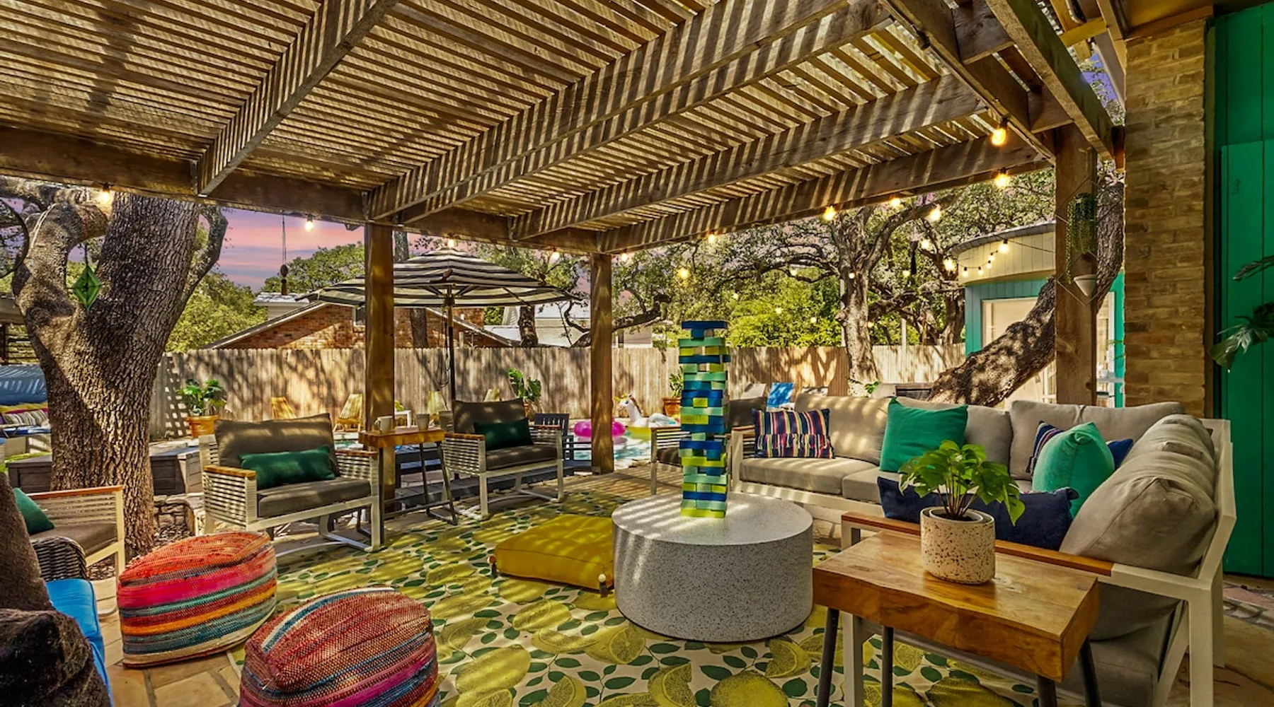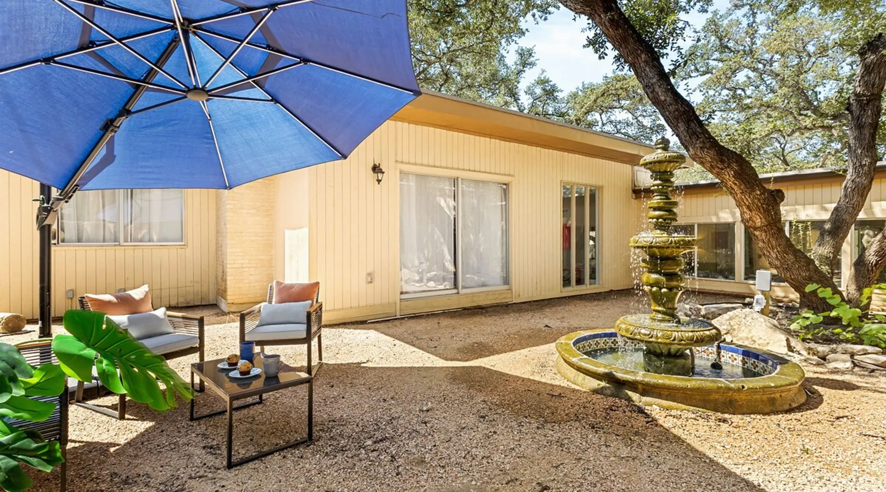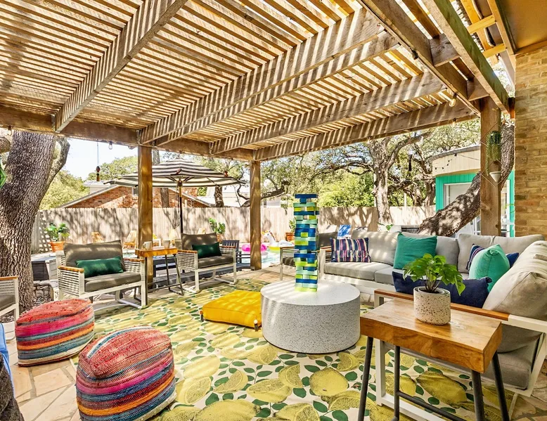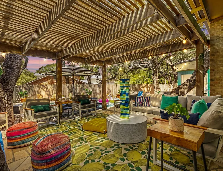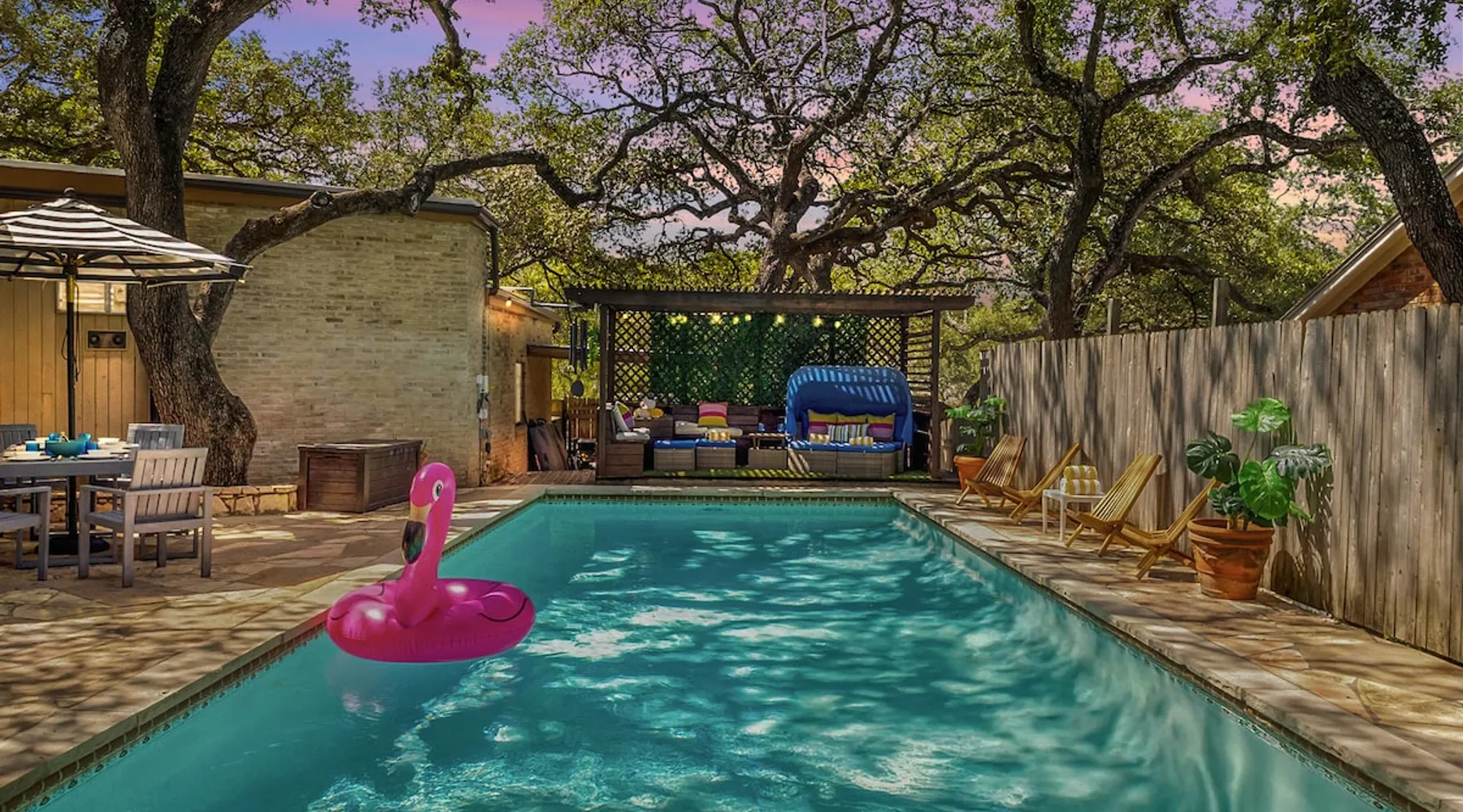 Experience the ultimate San Antonio getaway where designer style meets comfort and privacy. Unwind poolside, recharge in the gym, or gather in gorgeous living areas. This professionally designed home offers effortless luxury for every guest. -Private heated pool & cabana -Private gym with pool views, TV & fridge -Multiple spacious living & dining areas -Four bedrooms, two with en suite bathrooms -Quiet neighborhood, no backyard neighbors -Ideal for multi-generational stays & Lackland AFB visits The space Welcome to your professionally designed San Antonio haven expertly crafted for families, multi-generational groups, and friends to gather, relax, and make unforgettable memories. Every space fuses luxury, style, and comfort for the ultimate retreat, just minutes from top city attractions, dining, and Lackland AFB. 🏡Why You’ll Love This Home Sleeps 12 comfortably – 4 private bedrooms (2 with en suite baths) ✨Sparkling heated pool with large shaded cabana, fans, and loungers 🏋️♂️Private gym with poolside access – work out, then cool off! 🎮Multiple indoor living rooms: entertainment, games, quiet retreats 🍽️Expansive dining spaces – indoor and outdoor for all-group meals 👨🍳Chef-inspired kitchen, coffee bar, and all cookware provided 🤫Quiet, family-friendly neighborhood 🖼️Designer touches throughout: art, custom furniture, plush bedding 💻Free high-speed WiFi, Smart TVs, dedicated workspaces 🛁Laundry room with washer & dryer, all linens and towels included 👶Premium amenities: board games, pool toys, crib/high chair 🅿️Ample parking in driveway and street ☆☆☆ LIVING & GATHERING SPACES ☆☆☆ Step into a vibrant, welcoming living room with bright windows and carefully curated décor. Sink into plush sofas for movie nights, lively games, or quiet family chats. Find a second lounge for cozy reading or late-night conversations. Natural light pours in, highlighting bold art and striking design. ☆☆☆ KITCHEN & DINING ☆☆☆ Fuel adventure and togetherness in your chef’s kitchen: Sleek appliances, spacious counters, and all cookware Breakfast bar and coffee nook - breeze through mornings Elegant indoor dining for up to 12 - perfect for big meals and celebrations Al fresco dining on the patio under ceiling fans and string lights ☆☆☆ BEDROOMS ☆☆☆ Rest easy in four uniquely styled bedrooms: Two primary suites feature en suite baths and luxury bedding Guest rooms offer flexible setups for kids, teens, or couples Each room has curtains, fans, premium linens, and thoughtful touches Need more space? Versatile sleeping options accommodate extra guests or kids ☆☆☆ OUTDOOR OASIS ☆☆☆ Your private spacious backyard is a Texas dream: Heated pool for year-round fun Spacious cabana for shade & lounging, outdoor fans keep you cool Poolside dining & patio furniture for cocktails, BBQs, or game days Ultra-quiet yard - mature oaks and birdsong Private gym opens right to the patio just steps to your swim! ☆☆☆ FAMILY-FOCUSED AMENITIES ☆☆☆ Board games, books, high chair, crib, and children’s dishes Multiple TVs with streaming for movie nights Fast WiFi for work or entertainment Laundry on-site ☆☆☆ OUTDOOR FIRE PIT & RELAXATION GROVE ☆☆☆ Enjoy evenings under grand oak trees draped in string lights around the inviting fire pit, with chairs for your group to gather and relax. Nearby, unwind by the soothing fountain in a quiet nook with extra chairs and a cozy bench ideal for morning coffee or peaceful evenings. Whether roasting s’mores or stargazing, this backyard retreat sets the vibe for memorable moments outdoors. ☆☆☆ NEIGHBORHOOD & LOCATION ☆☆☆ Enjoy absolute tranquility in a beautiful, safe San Antonio suburb close to everything, but worlds away from the bustle. Minutes to Lackland AFB - ideal for BMT graduation families Short easy drive to Riverwalk, downtown, and top SA attractions Groceries, parks, cafés, and essentials nearby ✅ Stress-Free Stays Easy Check-In: Smart lock for self check-in anytime Personalized Guest Portal: Local tips, recommendations, and upgrade options Local Compliance Standards: Fully licensed and insured Ready to Book Your Stay? From sunrise coffees on the patio to nighttime chats by the fire pit, this home is ready to host your next getaway. Whether it’s family bonding, celebrating milestones, or just relaxing, everything you need for a memorable trip is here. **ABOUT OUR HEATED POOL** Our pool can be heated year round, however depending on the outside temperatures during your stay, it could be more difficult to heat during January and February's coldest temperatures. Thank you for understanding. While the pool won’t reach hot-tub temperatures, the pool is consistently maintained at 86º degrees November to April/May. Our pool team comes to take care of the home on Thursday or Friday. On the coldest days of the year our pool may not reach set temperature due to the extreme cold. Most heat pumps do not function as well when outside temperature is less than 55 degrees. We’re happy to provide this added comfort at no extra charge, so you can focus on enjoying your stay. Please note that pool temperatures will vary slightly based on weather conditions. 🔑 Book Now and Start Making Memories! Guest access Guests will have full access to the entire home and all amenities during their stay. Feel free to enjoy all indoor and outdoor spaces, including the pool, backyard games, and lounge areas. The only locked spaces are the garage and supply closets. Easy Check-In Process🏡 It’s just like when you check in at a hotel and give your ID to the front desk, except our front desk is online! It's super easy to complete on your phone! We use a web-based system called Happy Guest, and you’ll receive a personalized rental agreement to sign in order to receive your arrival instructions. It’s simple: finish these steps, and you’re all set to enjoy your stay