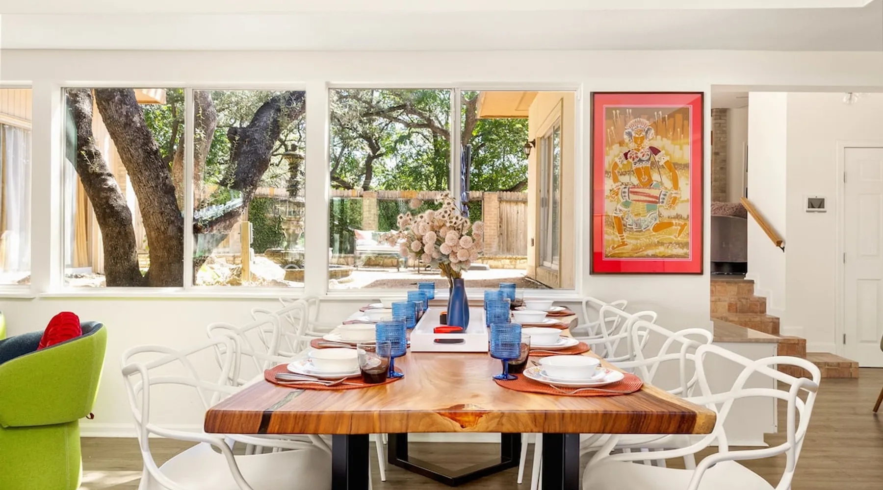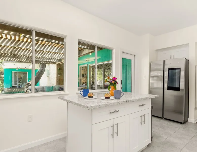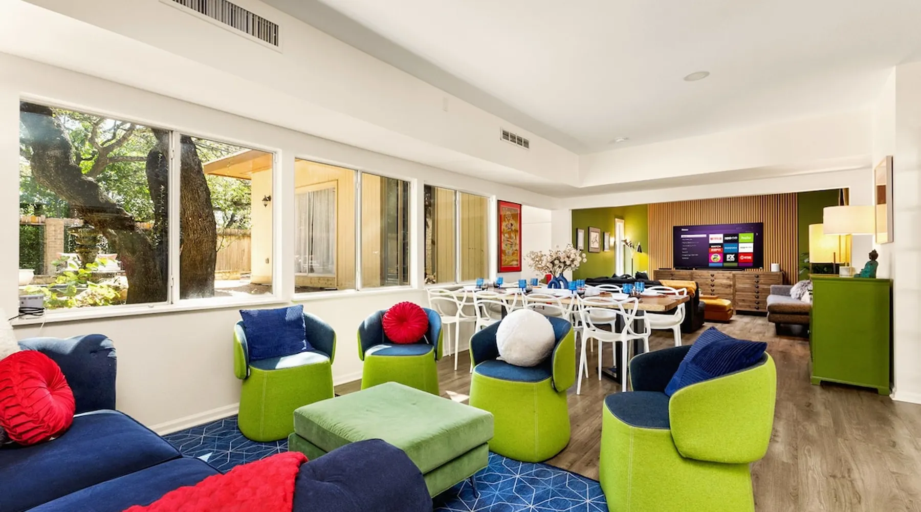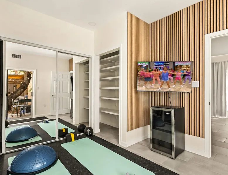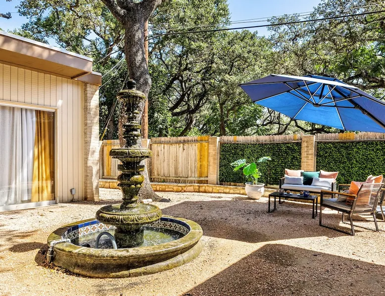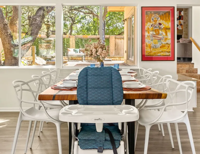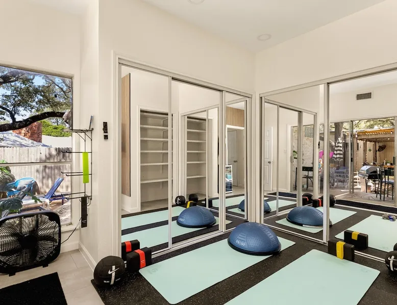 Experience the ultimate San Antonio getaway where designer style meets comfort and privacy. Unwind poolside, recharge in the gym, or gather in gorgeous living areas. This professionally designed home offers effortless luxury for every guest. -Private heated pool & cabana -Private gym with pool views, TV & fridge -Multiple spacious living & dining areas -Four bedrooms, two with en suite bathrooms -Quiet neighborhood, no backyard neighbors -Ideal for multi-generational stays & Lackland AFB visits The space Welcome to your professionally designed San Antonio haven expertly crafted for families, multi-generational groups, and friends to gather, relax, and make unforgettable memories. Every space fuses luxury, style, and comfort for the ultimate retreat, just minutes from top city attractions, dining, and Lackland AFB. 🏡Why You’ll Love This Home Sleeps 12 comfortably – 4 private bedrooms (2 with en suite baths) ✨Sparkling heated pool with large shaded cabana, fans, and loungers 🏋️♂️Private gym with poolside access – work out, then cool off! 🎮Multiple indoor living rooms: entertainment, games, quiet retreats 🍽️Expansive dining spaces – indoor and outdoor for all-group meals 👨🍳Chef-inspired kitchen, coffee bar, and all cookware provided 🤫Quiet, family-friendly neighborhood 🖼️Designer touches throughout: art, custom furniture, plush bedding 💻Free high-speed WiFi, Smart TVs, dedicated workspaces 🛁Laundry room with washer & dryer, all linens and towels included 👶Premium amenities: board games, pool toys, crib/high chair 🅿️Ample parking in driveway and street ☆☆☆ LIVING & GATHERING SPACES ☆☆☆ Step into a vibrant, welcoming living room with bright windows and carefully curated décor. Sink into plush sofas for movie nights, lively games, or quiet family chats. Find a second lounge for cozy reading or late-night conversations. Natural light pours in, highlighting bold art and striking design. ☆☆☆ KITCHEN & DINING ☆☆☆ Fuel adventure and togetherness in your chef’s kitchen: Sleek appliances, spacious counters, and all cookware Breakfast bar and coffee nook - breeze through mornings Elegant indoor dining for up to 12 - perfect for big meals and celebrations Al fresco dining on the patio under ceiling fans and string lights ☆☆☆ BEDROOMS ☆☆☆ Rest easy in four uniquely styled bedrooms: Two primary suites feature en suite baths and luxury bedding Guest rooms offer flexible setups for kids, teens, or couples Each room has curtains, fans, premium linens, and thoughtful touches Need more space? Versatile sleeping options accommodate extra guests or kids ☆☆☆ OUTDOOR OASIS ☆☆☆ Your private spacious backyard is a Texas dream: Heated pool for year-round fun Spacious cabana for shade & lounging, outdoor fans keep you cool Poolside dining & patio furniture for cocktails, BBQs, or game days Ultra-quiet yard - mature oaks and birdsong Private gym opens right to the patio just steps to your swim! ☆☆☆ FAMILY-FOCUSED AMENITIES ☆☆☆ Board games, books, high chair, crib, and children’s dishes Multiple TVs with streaming for movie nights Fast WiFi for work or entertainment Laundry on-site ☆☆☆ OUTDOOR FIRE PIT & RELAXATION GROVE ☆☆☆ Enjoy evenings under grand oak trees draped in string lights around the inviting fire pit, with chairs for your group to gather and relax. Nearby, unwind by the soothing fountain in a quiet nook with extra chairs and a cozy bench ideal for morning coffee or peaceful evenings. Whether roasting s’mores or stargazing, this backyard retreat sets the vibe for memorable moments outdoors. ☆☆☆ NEIGHBORHOOD & LOCATION ☆☆☆ Enjoy absolute tranquility in a beautiful, safe San Antonio suburb close to everything, but worlds away from the bustle. Minutes to Lackland AFB - ideal for BMT graduation families Short easy drive to Riverwalk, downtown, and top SA attractions Groceries, parks, cafés, and essentials nearby ✅ Stress-Free Stays Easy Check-In: Smart lock for self check-in anytime Personalized Guest Portal: Local tips, recommendations, and upgrade options Local Compliance Standards: Fully licensed and insured Ready to Book Your Stay? From sunrise coffees on the patio to nighttime chats by the fire pit, this home is ready to host your next getaway. Whether it’s family bonding, celebrating milestones, or just relaxing, everything you need for a memorable trip is here. **ABOUT OUR HEATED POOL** Our pool can be heated year round, however depending on the outside temperatures during your stay, it could be more difficult to heat during January and February's coldest temperatures. Thank you for understanding. While the pool won’t reach hot-tub temperatures, the pool is consistently maintained at 86º degrees November to April/May. Our pool team comes to take care of the home on Thursday or Friday. On the coldest days of the year our pool may not reach set temperature due to the extreme cold. Most heat pumps do not function as well when outside temperature is less than 55 degrees. We’re happy to provide this added comfort at no extra charge, so you can focus on enjoying your stay. Please note that pool temperatures will vary slightly based on weather conditions. 🔑 Book Now and Start Making Memories! Guest access Guests will have full access to the entire home and all amenities during their stay. Feel free to enjoy all indoor and outdoor spaces, including the pool, backyard games, and lounge areas. The only locked spaces are the garage and supply closets. Easy Check-In Process🏡 It’s just like when you check in at a hotel and give your ID to the front desk, except our front desk is online! It's super easy to complete on your phone! We use a web-based system called Happy Guest, and you’ll receive a personalized rental agreement to sign in order to receive your arrival instructions. It’s simple: finish these steps, and you’re all set to enjoy your stay