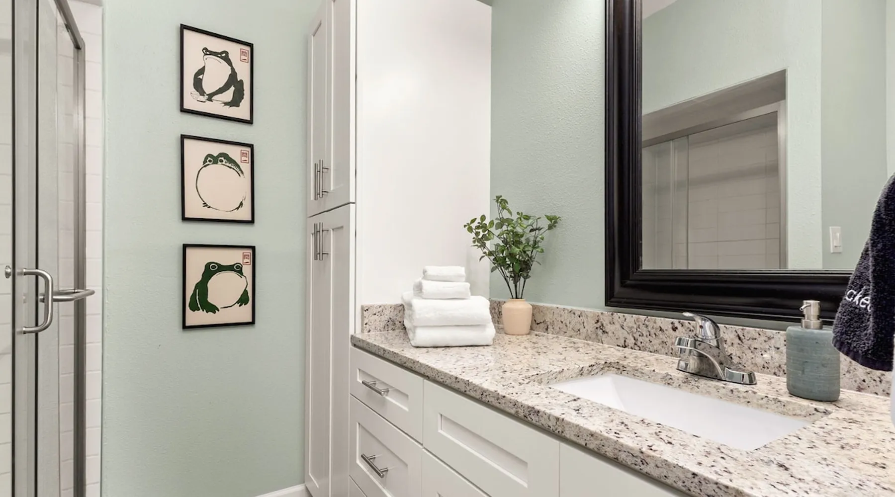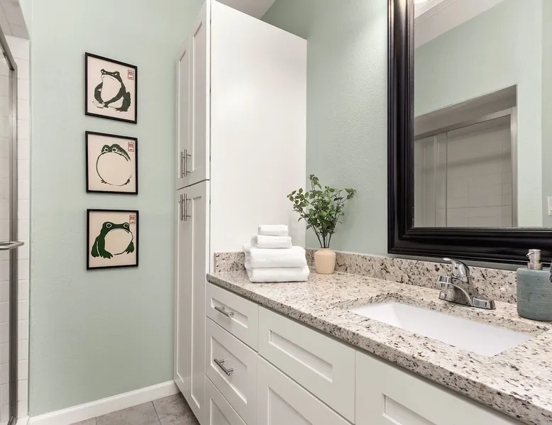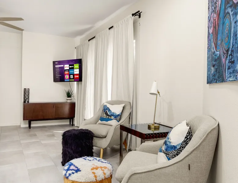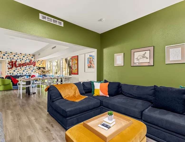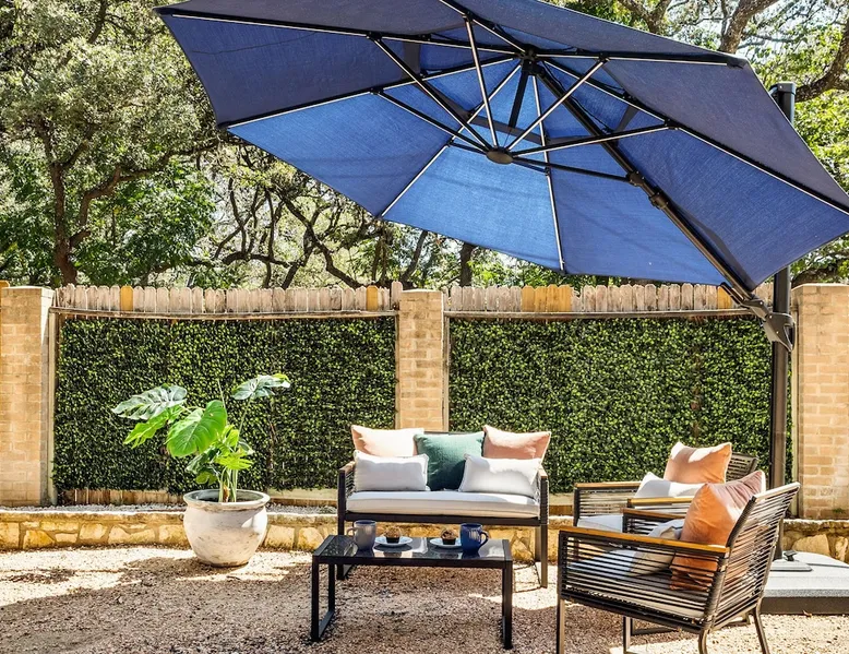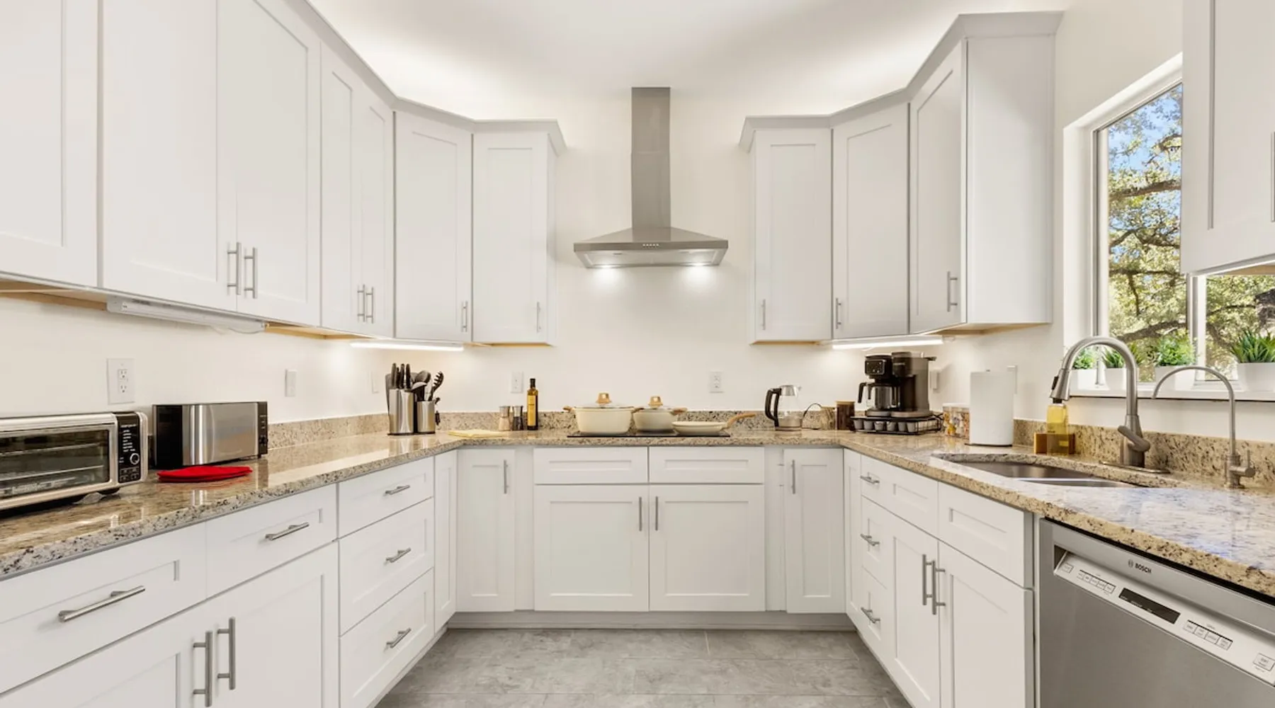 Experience the ultimate San Antonio getaway where designer style meets comfort and privacy. Unwind poolside, recharge in the gym, or gather in gorgeous living areas. This professionally designed home offers effortless luxury for every guest. -Private heated pool & cabana -Private gym with pool views, TV & fridge -Multiple spacious living & dining areas -Four bedrooms, two with en suite bathrooms -Quiet neighborhood, no backyard neighbors -Ideal for multi-generational stays & Lackland AFB visits The space Welcome to your professionally designed San Antonio haven expertly crafted for families, multi-generational groups, and friends to gather, relax, and make unforgettable memories. Every space fuses luxury, style, and comfort for the ultimate retreat, just minutes from top city attractions, dining, and Lackland AFB. 🏡Why You’ll Love This Home Sleeps 12 comfortably – 4 private bedrooms (2 with en suite baths) ✨Sparkling heated pool with large shaded cabana, fans, and loungers 🏋️♂️Private gym with poolside access – work out, then cool off! 🎮Multiple indoor living rooms: entertainment, games, quiet retreats 🍽️Expansive dining spaces – indoor and outdoor for all-group meals 👨🍳Chef-inspired kitchen, coffee bar, and all cookware provided 🤫Quiet, family-friendly neighborhood 🖼️Designer touches throughout: art, custom furniture, plush bedding 💻Free high-speed WiFi, Smart TVs, dedicated workspaces 🛁Laundry room with washer & dryer, all linens and towels included 👶Premium amenities: board games, pool toys, crib/high chair 🅿️Ample parking in driveway and street ☆☆☆ LIVING & GATHERING SPACES ☆☆☆ Step into a vibrant, welcoming living room with bright windows and carefully curated décor. Sink into plush sofas for movie nights, lively games, or quiet family chats. Find a second lounge for cozy reading or late-night conversations. Natural light pours in, highlighting bold art and striking design. ☆☆☆ KITCHEN & DINING ☆☆☆ Fuel adventure and togetherness in your chef’s kitchen: Sleek appliances, spacious counters, and all cookware Breakfast bar and coffee nook - breeze through mornings Elegant indoor dining for up to 12 - perfect for big meals and celebrations Al fresco dining on the patio under ceiling fans and string lights ☆☆☆ BEDROOMS ☆☆☆ Rest easy in four uniquely styled bedrooms: Two primary suites feature en suite baths and luxury bedding Guest rooms offer flexible setups for kids, teens, or couples Each room has curtains, fans, premium linens, and thoughtful touches Need more space? Versatile sleeping options accommodate extra guests or kids ☆☆☆ OUTDOOR OASIS ☆☆☆ Your private spacious backyard is a Texas dream: Heated pool for year-round fun Spacious cabana for shade & lounging, outdoor fans keep you cool Poolside dining & patio furniture for cocktails, BBQs, or game days Ultra-quiet yard - mature oaks and birdsong Private gym opens right to the patio just steps to your swim! ☆☆☆ FAMILY-FOCUSED AMENITIES ☆☆☆ Board games, books, high chair, crib, and children’s dishes Multiple TVs with streaming for movie nights Fast WiFi for work or entertainment Laundry on-site ☆☆☆ OUTDOOR FIRE PIT & RELAXATION GROVE ☆☆☆ Enjoy evenings under grand oak trees draped in string lights around the inviting fire pit, with chairs for your group to gather and relax. Nearby, unwind by the soothing fountain in a quiet nook with extra chairs and a cozy bench ideal for morning coffee or peaceful evenings. Whether roasting s’mores or stargazing, this backyard retreat sets the vibe for memorable moments outdoors. ☆☆☆ NEIGHBORHOOD & LOCATION ☆☆☆ Enjoy absolute tranquility in a beautiful, safe San Antonio suburb close to everything, but worlds away from the bustle. Minutes to Lackland AFB - ideal for BMT graduation families Short easy drive to Riverwalk, downtown, and top SA attractions Groceries, parks, cafés, and essentials nearby ✅ Stress-Free Stays Easy Check-In: Smart lock for self check-in anytime Personalized Guest Portal: Local tips, recommendations, and upgrade options Local Compliance Standards: Fully licensed and insured Ready to Book Your Stay? From sunrise coffees on the patio to nighttime chats by the fire pit, this home is ready to host your next getaway. Whether it’s family bonding, celebrating milestones, or just relaxing, everything you need for a memorable trip is here. **ABOUT OUR HEATED POOL** Our pool can be heated year round, however depending on the outside temperatures during your stay, it could be more difficult to heat during January and February's coldest temperatures. Thank you for understanding. While the pool won’t reach hot-tub temperatures, the pool is consistently maintained at 86º degrees November to April/May. Our pool team comes to take care of the home on Thursday or Friday. On the coldest days of the year our pool may not reach set temperature due to the extreme cold. Most heat pumps do not function as well when outside temperature is less than 55 degrees. We’re happy to provide this added comfort at no extra charge, so you can focus on enjoying your stay. Please note that pool temperatures will vary slightly based on weather conditions. 🔑 Book Now and Start Making Memories! Guest access Guests will have full access to the entire home and all amenities during their stay. Feel free to enjoy all indoor and outdoor spaces, including the pool, backyard games, and lounge areas. The only locked spaces are the garage and supply closets. Easy Check-In Process🏡 It’s just like when you check in at a hotel and give your ID to the front desk, except our front desk is online! It's super easy to complete on your phone! We use a web-based system called Happy Guest, and you’ll receive a personalized rental agreement to sign in order to receive your arrival instructions. It’s simple: finish these steps, and you’re all set to enjoy your stay
