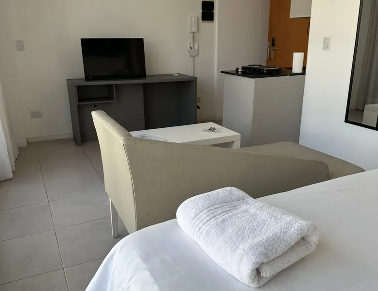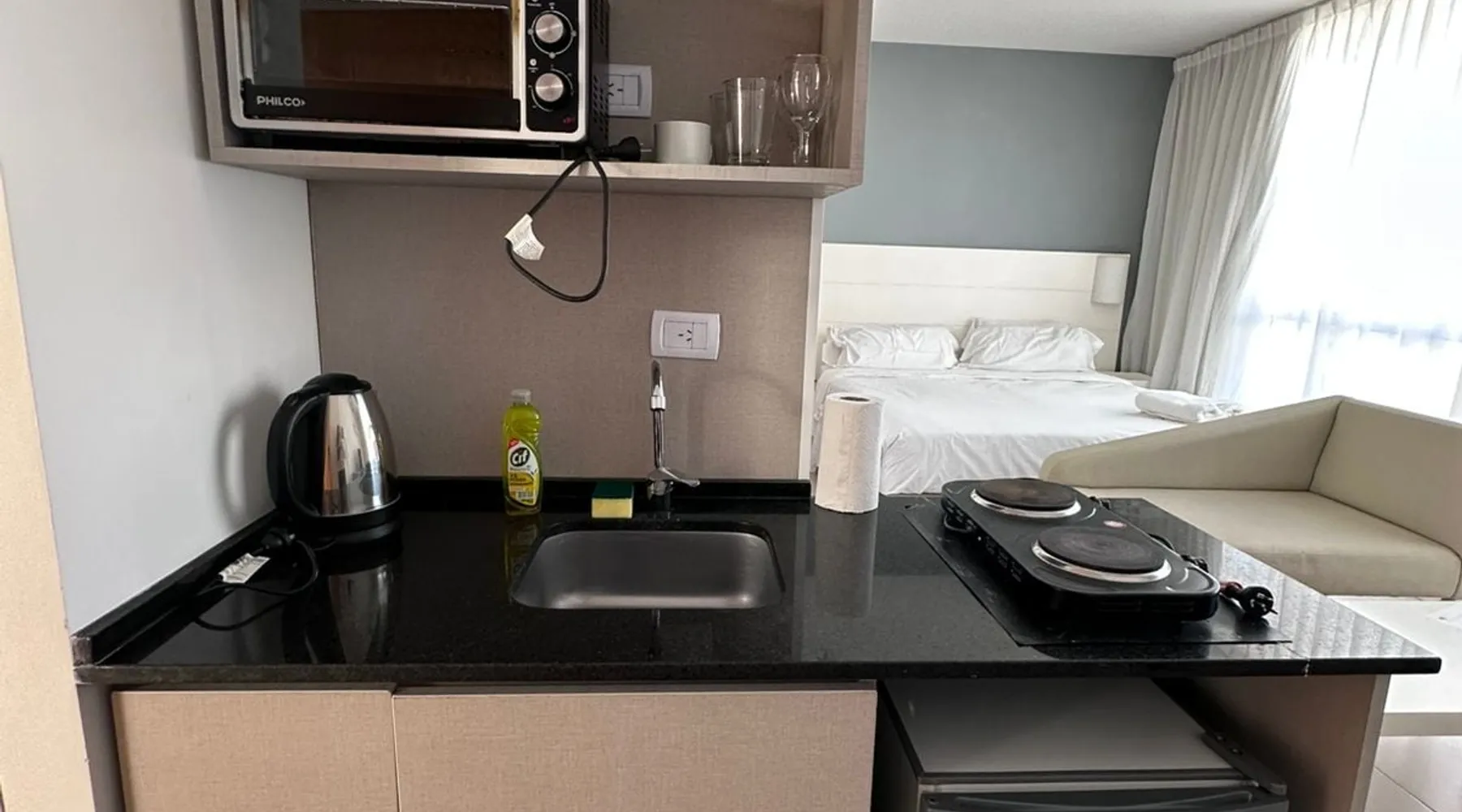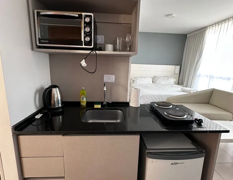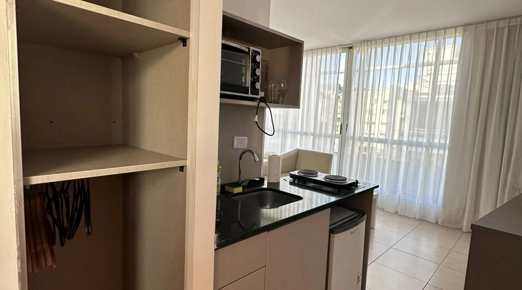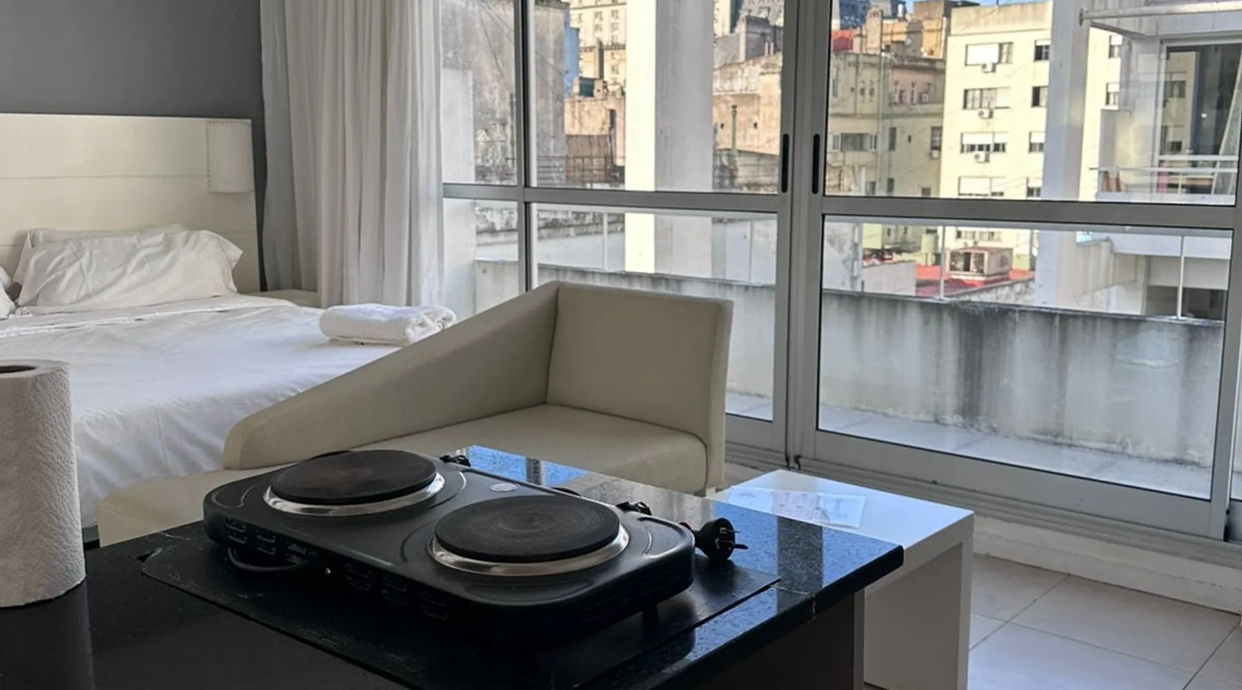Enjoy a stylish experience at this centrally located home. It's a small studio with a balcony in a building that opened in March 2018. Up to two people can be accommodated. It has a double bed, armchair, kitchen utensils, tableware, minibar, and a private bathroom.