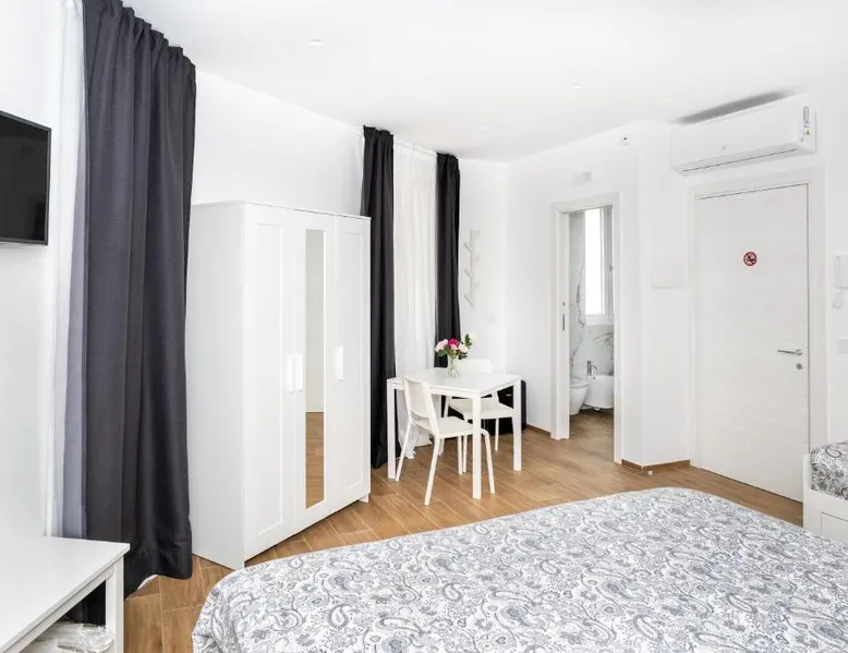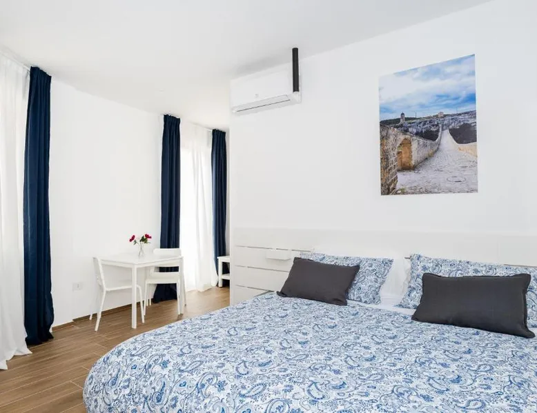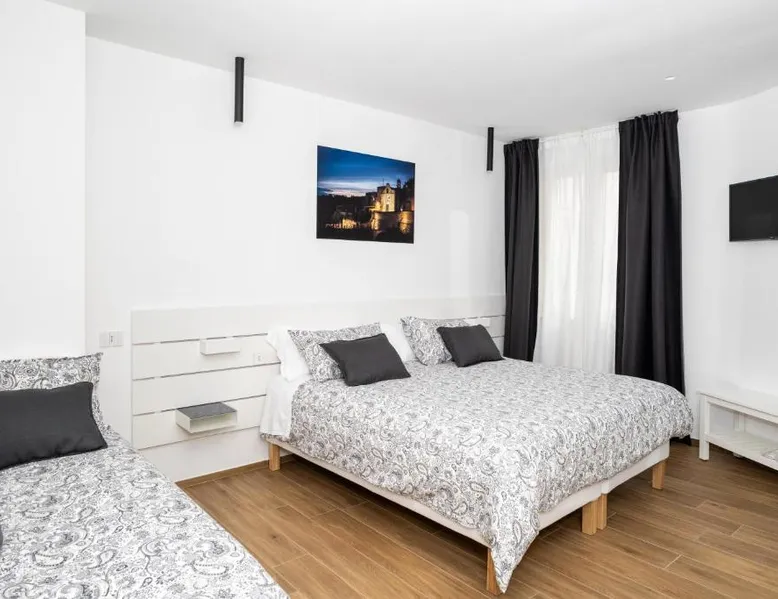 Comfortable Accommodations: B&B Palazzo Diamante in Gravina in Puglia offers recently renovated rooms with air-conditioning, private bathrooms, and city views. Each room includes a work desk, free toiletries, and soundproofing for a relaxing stay. Exceptional Facilities: Guests can enjoy a sun terrace, bar, and free WiFi. Additional amenities include a minimarket, coffee shop, hairdresser, and bicycle parking. The property provides a 24-hour front desk, housekeeping service, and room service. Convenient Location: Located 36 mi from Bari Karol Wojtyla Airport, the bed and breakfast is near attractions such as Palombaro Lungo (19 mi), Tramontano Castle (20 mi), and Matera Cathedral (20 mi). Paid parking is available on site. Featuring free toiletries, this family room includes a private bathroom with a shower, a bidet and a hairdryer. This family room has air conditioning, flat-screen TV, city views, as well as chocolate for guests. The unit has 3 beds.