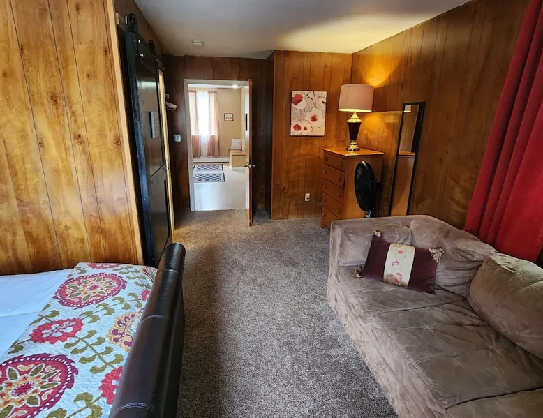Welcome to The NUWarehaus! 3,000 sq. ft apartment on the second floor of our Warehaus. A 6 bedroom, 3 bathroom guest retreat. Large kitchen with a stainless steel island and seating for up to 16. The kitchen is a great gathering space with plenty of room for everyone! Family room with 55 inch Roku-ready TV. Four bedrooms with king size beds & 2 bedrooms with 2 queen size beds each. Perfect space for your family to stay and enjoy all that New Ulm has to offer! The space Fully functional kitchen with cookware, netflix/amazon ready tv, WiFi, cable. 3 full baths, 6 bedrooms . Guest access Shared first floor entryway, with coded locked security door to your own private apartment entrance. If you need assistance with luggage to the second floor, just message us. We are only minutes away. Other things to note We are located across the street from the historic railroad depot with occasional train whistles.