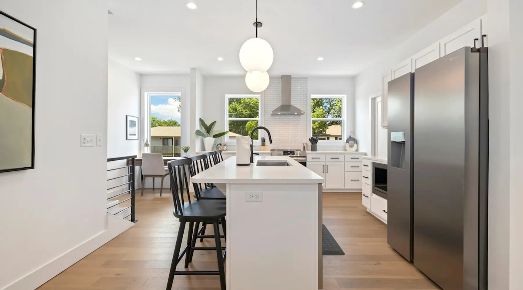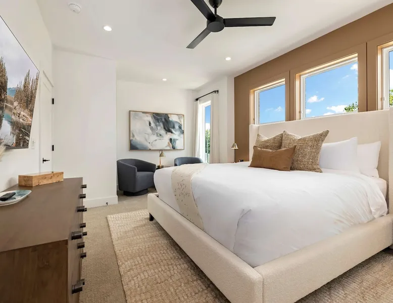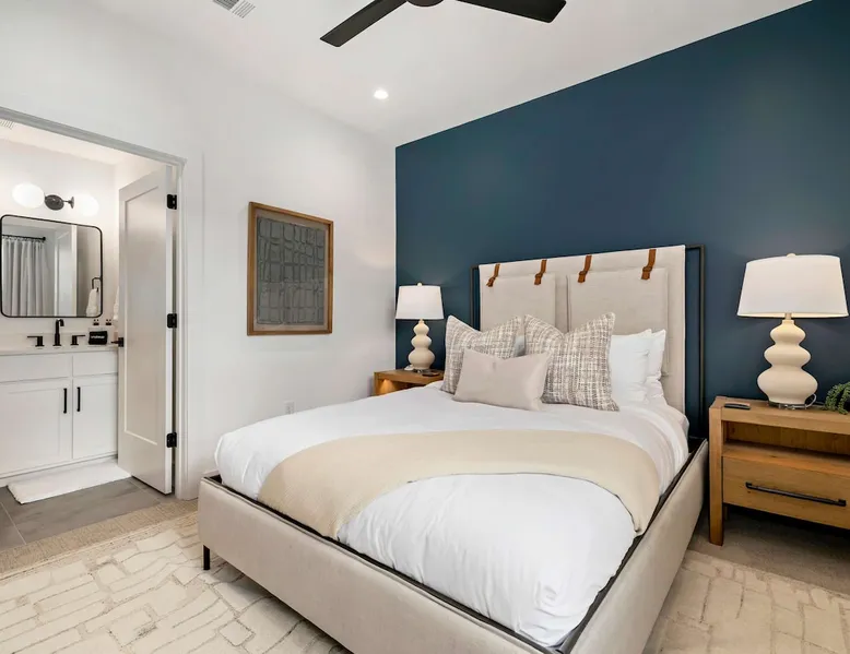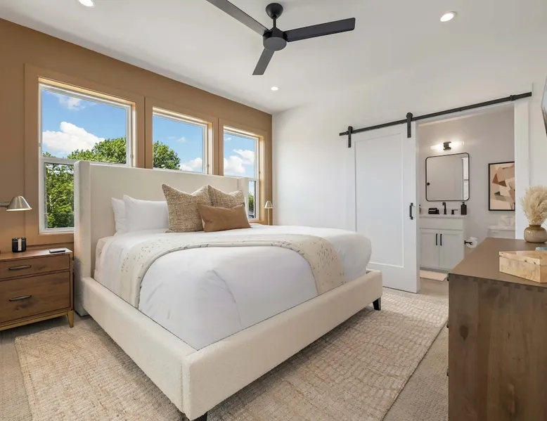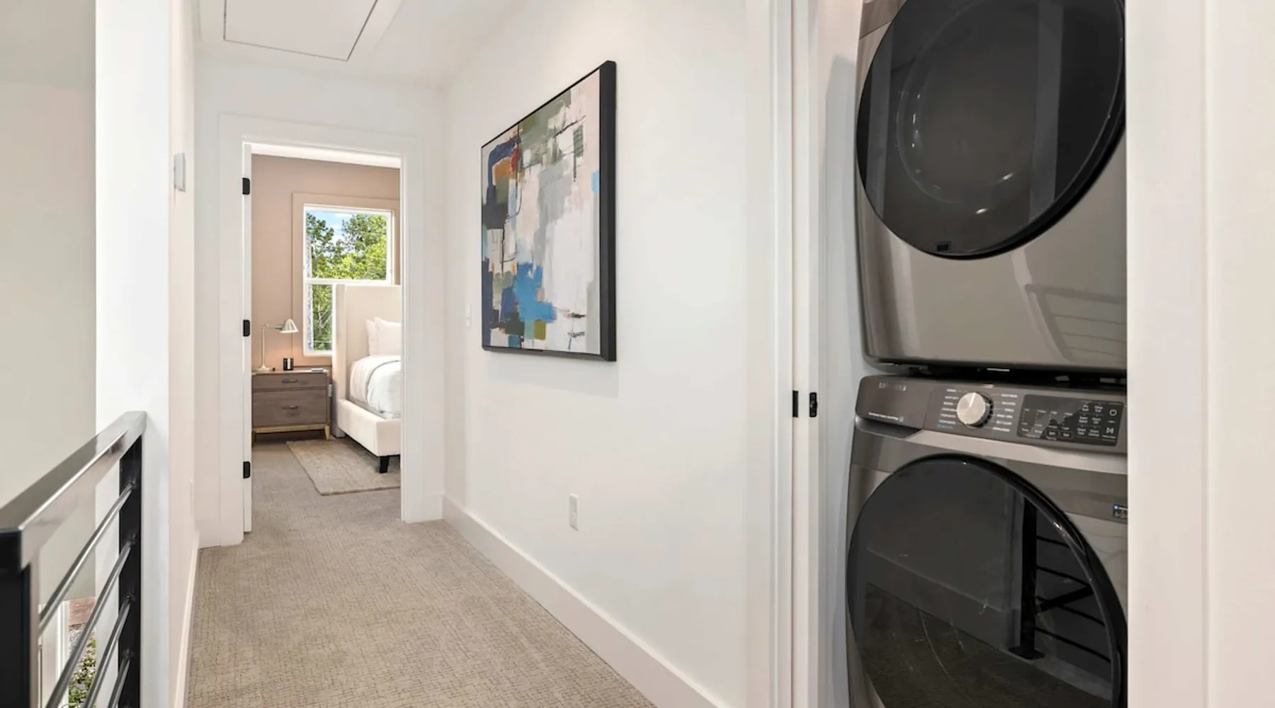 Experience modern living at 7C Townhomes, a newly constructed complex just 0.5 miles from the heart of Downtown Bentonville. This stylish three-story townhome offers 2 bedrooms, 2.5 bathrooms, and a two-car garage. Ideally situated within a 10-minute stroll of Bentonville Square, 8th St Market, The Momentary, Walmart Home Office, and Crystal Bridges, it's perfect for both business and leisure travelers seeking inspired urban living with all the comforts of home! The space Indulge in luxury at our stunning three-story townhome, where elegance meets comfort. The open layout makes the living areas feel big and welcoming, great for relaxing or gathering friends and family. You'll love cooking in the fully stocked kitchen, which has everything you need to make great meals. Upstairs, you'll find two bedrooms, each with its own bathroom for extra privacy. - Three floors - 2 bedrooms - 3 beds: king, queen, sofa bed - 2.5 bathrooms - 2 car parking garage (bike storage) - Private entrance - Keyless entry (self check in) Other Things To Note - High speed wifi - Smart tvs - Fully stocked kitchen - Walk in kitchen pantry - Stainless steel dishwasher, range, microwave - Kcup coffee maker - Washer and dryer House Rules - No pets - No parties - No smoking on or inside property Neighborhood - 0.2 mi to Heroes Coffee - 0.4 mi to Walmart Home Office - 0.2 mi to Pedaler's Pub - 0.5 mi to Downtown Bentonville - 0.6 mi to The Momentary - 0.9 mi to 8th Street Market - 0.9 mi to Slaughter Pen Trail - 2 mi to Crystal Bridges Museum - 2.5 mi to Coler Mount Biking Preserve At The Wanderlust Co. our mission is to create unforgettable travel memories by offering meticulously curated vacation homes that embody the spirit of adventure and the comfort of home. Wanderlust, the strong desire to travel and explore the world, drives our passion for providing unique experiences, personalized touches, and exceptional stays. Guest access A code will be provided to access the front door. Guests will have access to the entire home, appliances, and amenities mentioned above. Other things to note Pre-Check In Requirements: As a professional vacation rental company, we do require our guests to upload an acceptable government-issued photo ID for additional identity verification and sign our terms & conditions agreement on our guest portal, which is where you will be able to view your check in instructions upon completion of pre-check-in requirements. If you are booking a reservation for someone other than yourself, we do need the contact information of the guest(s) who will be staying at the property. House Rules: (1) No smoking inside or outside the property (2) No pets without prior approval (3) No parties or events without prior approval If the dates you’re looking for are unavailable or you need different accommodations, please visit our profile to check out our other properties in Northwest Arkansas!