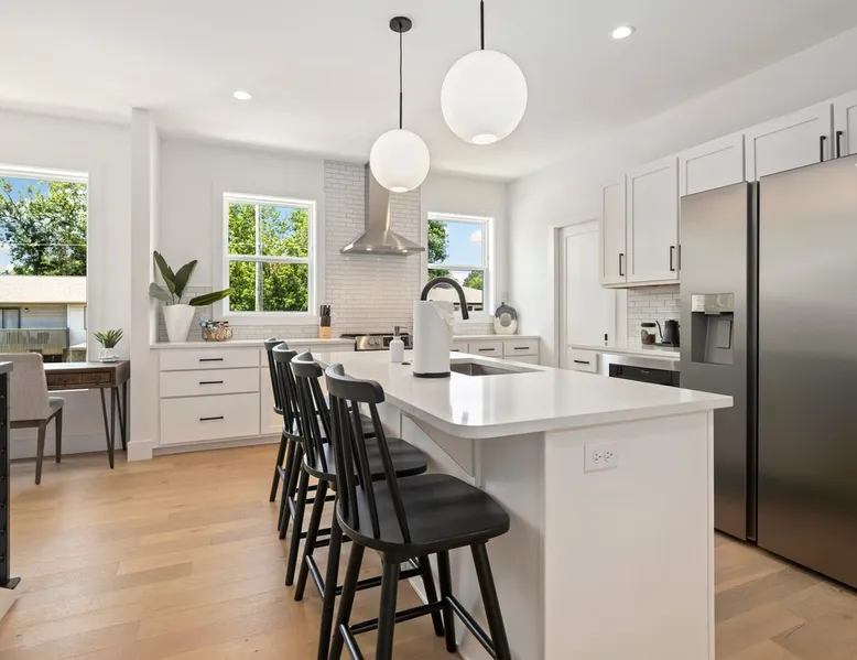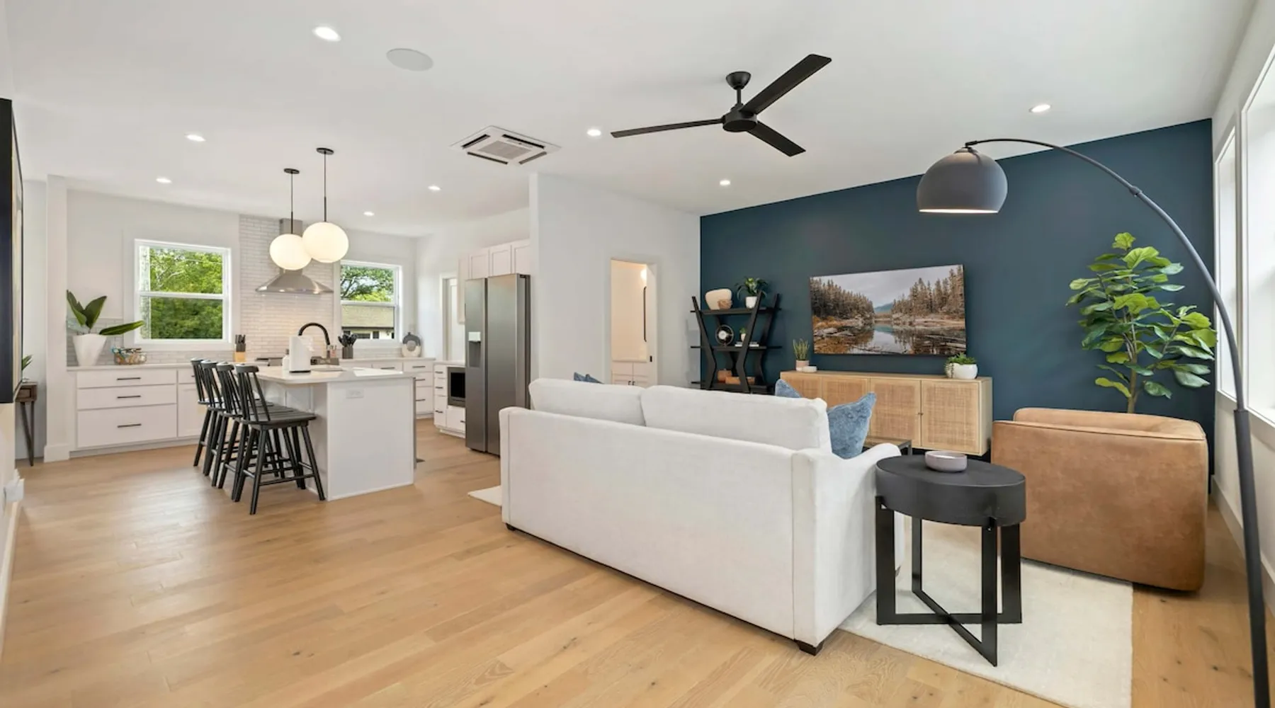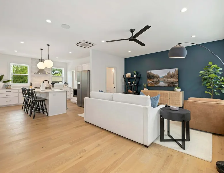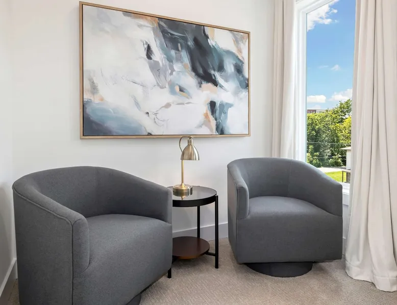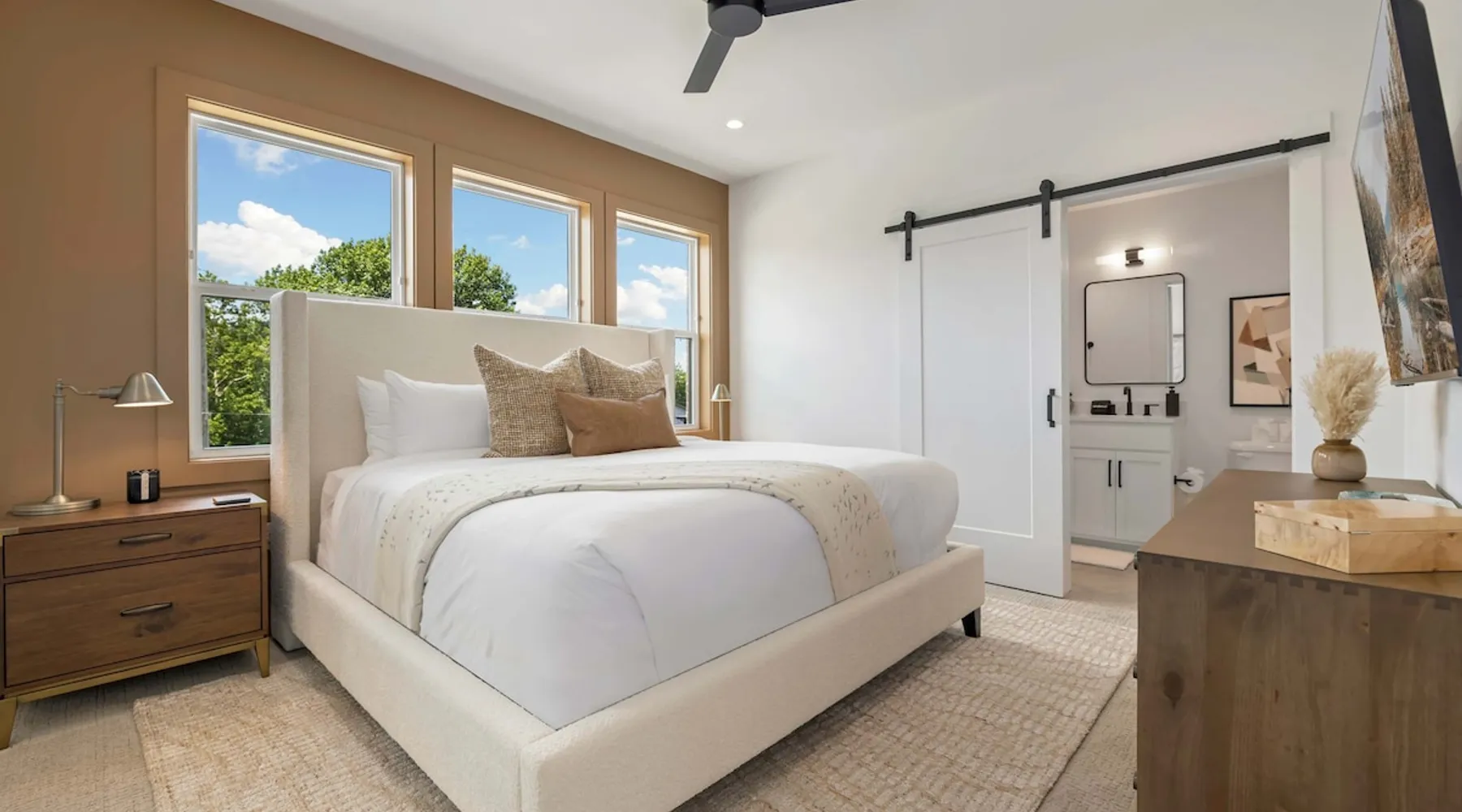 Experience modern living at 7C Townhomes, a newly constructed complex just 0.5 miles from the heart of Downtown Bentonville. This stylish three-story townhome offers 2 bedrooms, 2.5 bathrooms, and a two-car garage. Ideally situated within a 10-minute stroll of Bentonville Square, 8th St Market, The Momentary, Walmart Home Office, and Crystal Bridges, it's perfect for both business and leisure travelers seeking inspired urban living with all the comforts of home! The space Indulge in luxury at our stunning three-story townhome, where elegance meets comfort. The open layout makes the living areas feel big and welcoming, great for relaxing or gathering friends and family. You'll love cooking in the fully stocked kitchen, which has everything you need to make great meals. Upstairs, you'll find two bedrooms, each with its own bathroom for extra privacy. - Three floors - 2 bedrooms - 3 beds: king, queen, sofa bed - 2.5 bathrooms - 2 car parking garage (bike storage) - Private entrance - Keyless entry (self check in) Other Things To Note - High speed wifi - Smart tvs - Fully stocked kitchen - Walk in kitchen pantry - Stainless steel dishwasher, range, microwave - Kcup coffee maker - Washer and dryer House Rules - No pets - No parties - No smoking on or inside property Neighborhood - 0.2 mi to Heroes Coffee - 0.4 mi to Walmart Home Office - 0.2 mi to Pedaler's Pub - 0.5 mi to Downtown Bentonville - 0.6 mi to The Momentary - 0.9 mi to 8th Street Market - 0.9 mi to Slaughter Pen Trail - 2 mi to Crystal Bridges Museum - 2.5 mi to Coler Mount Biking Preserve At The Wanderlust Co. our mission is to create unforgettable travel memories by offering meticulously curated vacation homes that embody the spirit of adventure and the comfort of home. Wanderlust, the strong desire to travel and explore the world, drives our passion for providing unique experiences, personalized touches, and exceptional stays. Guest access A code will be provided to access the front door. Guests will have access to the entire home, appliances, and amenities mentioned above. Other things to note Pre-Check In Requirements: As a professional vacation rental company, we do require our guests to upload an acceptable government-issued photo ID for additional identity verification and sign our terms & conditions agreement on our guest portal, which is where you will be able to view your check in instructions upon completion of pre-check-in requirements. If you are booking a reservation for someone other than yourself, we do need the contact information of the guest(s) who will be staying at the property. House Rules: (1) No smoking inside or outside the property (2) No pets without prior approval (3) No parties or events without prior approval If the dates you’re looking for are unavailable or you need different accommodations, please visit our profile to check out our other properties in Northwest Arkansas!