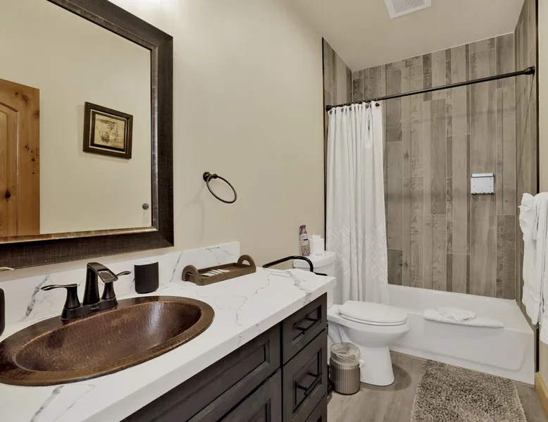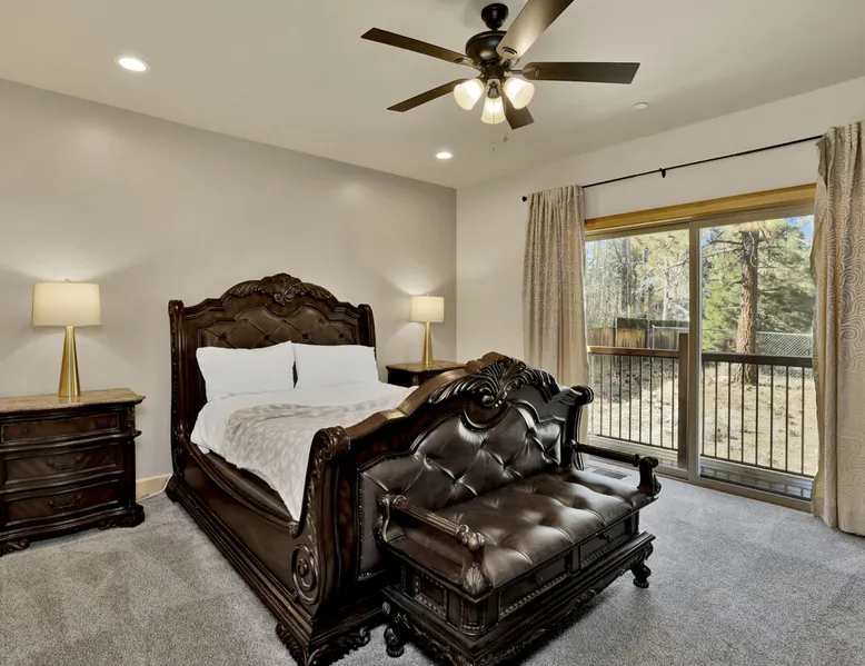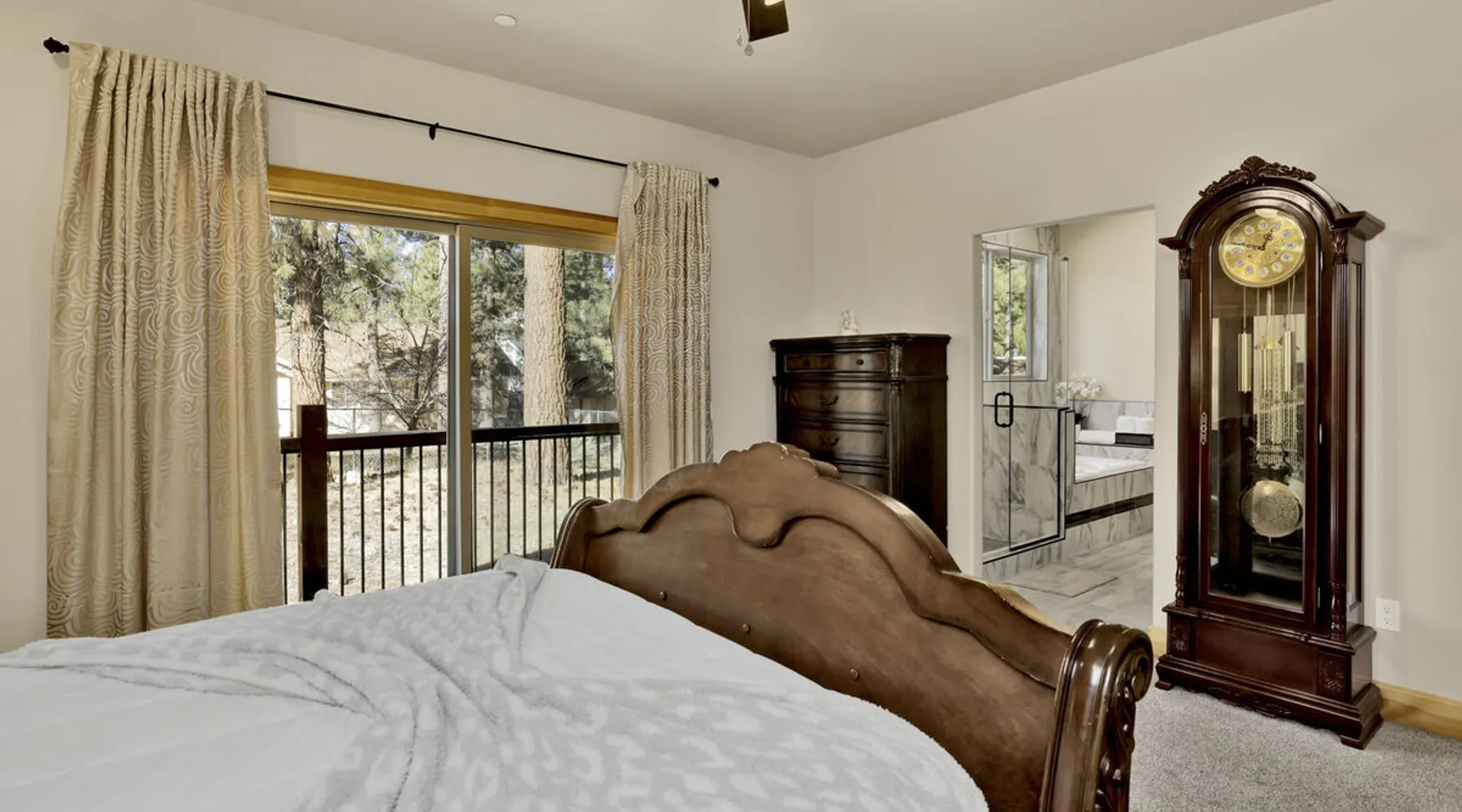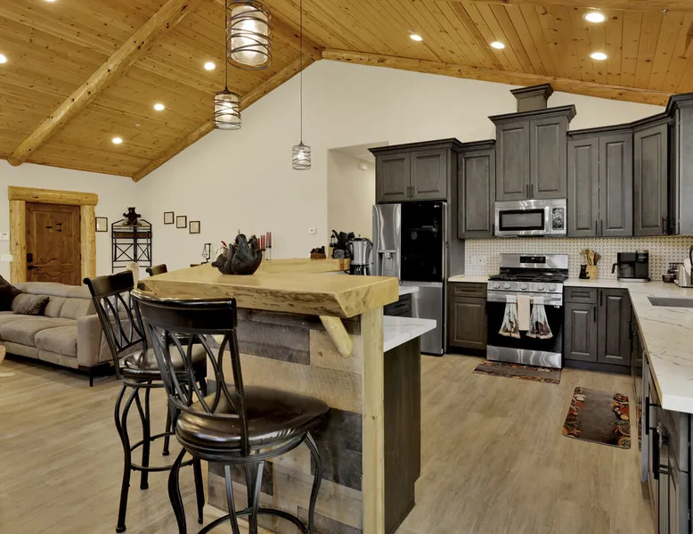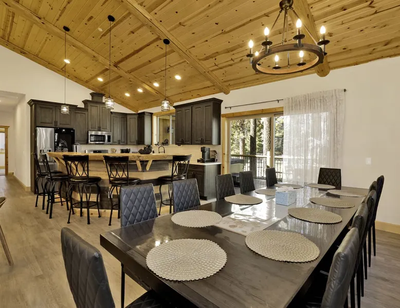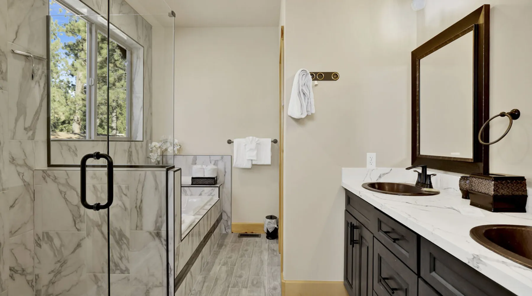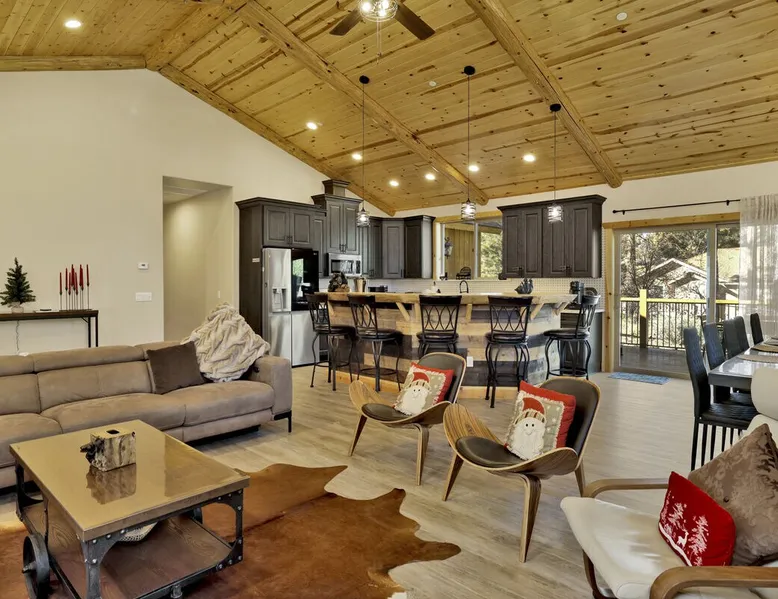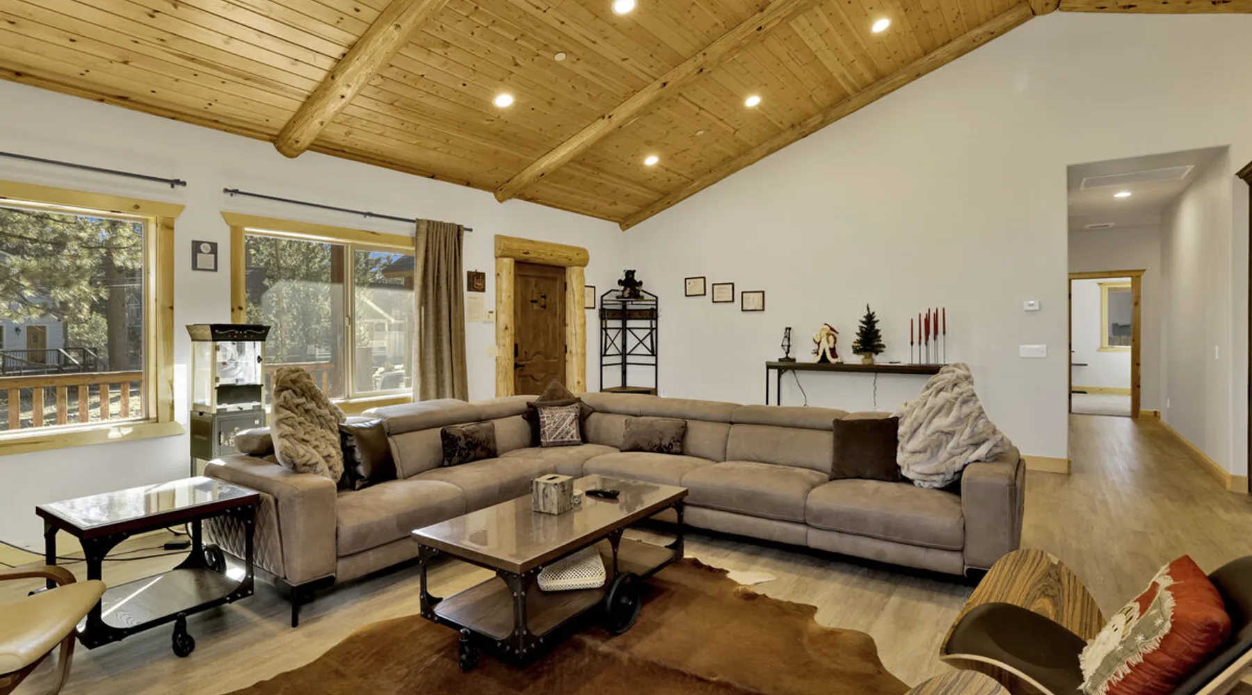 Whispering Pines Big Bear Lake - Ultra-Modern Luxury Log Cabin Retreat - Hot Tub Escape to Whispering Forest, a magical mountain retreat tucked into the serene pines of Big Bear Lake. From the moment you arrive, the cabin’s warm, inviting atmosphere wraps around you like a soft blanket. Sunlight filters through towering trees, casting dappled shadows across the rustic yet refined interior, where soaring ceilings, knotty pine walls, and a grand stone fireplace create the perfect blend. The space The open living spaces invite laughter and conversation, while the fully equipped kitchen with its generous island and stainless-steel appliances inspire leisurely breakfasts and memorable dinners with loved ones. With four beautifully appointed bedrooms and three full bathrooms, Whispering Forest effortlessly accommodates families, friends, or multi-generational gatherings. Step onto the elevated back deck to sip your morning coffee as the forest comes alive or unwind on the covered front porch as evening stars twinkle above. Step outside and you may not want to leave the property. Relax in the hot tub, BBQ your favorite meal, and don't worry when the nights get chilly, there's a portable heater to keep things cozy. Just a short drive from the lake, ski slopes, and the vibrant Big Bear Village, the cabin offers the ideal balance of seclusion and convenience. Whether you’re chasing winter snow, summer lake adventures, or simply a peaceful escape from everyday life, Whispering Forest invites you to slow down, breathe deeply, and immerse yourself in a mountain getaway where the forest truly whispers and every moment feels like home. Sleeping Arrangements: Bedroom 1: Queen Bed Bedroom 2: Full/Twin Bunk + Twin Bed Bedroom 3: Queen/Twin Bunk Bedroom 4: Full/Twin Bunk + Twin/Twin Bunk Bathroom Arrangements: Hallway Full Bath off Kitchen/Living Room Private Full Bath- Bedroom 1 Hallway Full Bath between Bedrooms 2 & 3 -Sleeps 10 -4 Car Driveway Parking -2 Pets Welcome w/ Additional Fees -2,119 Square Feet -City Permit #: VRR-2025-0912 Guest access Once checked in, guests can enjoy sole access to their private property for the duration of their booked dates. Registration Details 2025-0912
