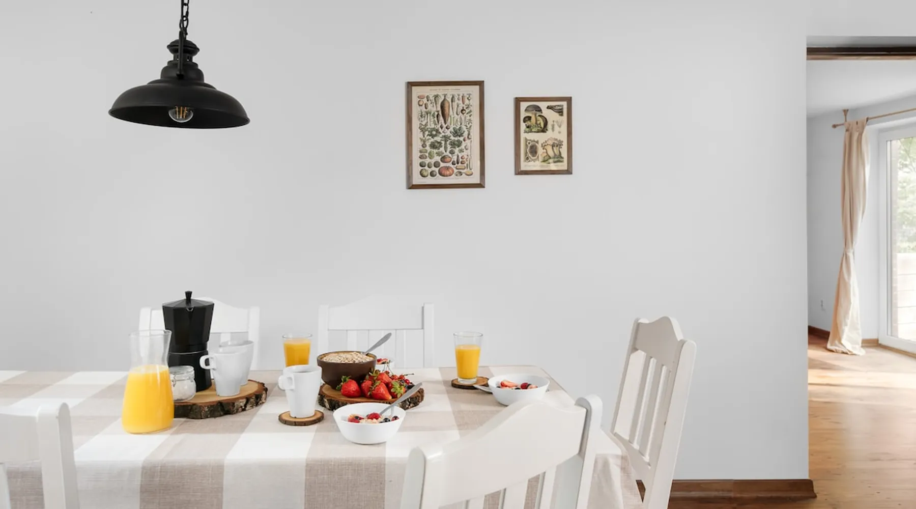 It is enough to drive 33 km from the center of Warsaw to leave everyday life behind. A house with a fireplace and a forest plot is waiting for you. There are two lakes and the Narew River. The plot is tightly fenced and pets are welcome. The cottage can accommodate 8 people, so invite your friends, pack your dog and come! The space When you come to us, you have at your disposal about 100 meters three-level cottage and 1000 meters of forest fenced plot located in the complex of adjacent forest plots. You can safely bring your pet and let him out without the risk of escaping the area. A maximum of 8 people can stay in the cottage. If you plan to come with a child, we can add a cot. There are four double beds waiting for you: three sofa beds and one double bed. In the cottage there is a fireplace, where cool evenings are most pleasant (the heating season lasts from October to April). With those who come to our place for longer, we decided to create a comfortable place to work. We have set up a solid wooden desk and swivel chair in the living room. You would be able to work comfortably without losing the fireplace and trees from the field of view. The internet works well and has served numerous teleconferences. We provide the wood and can help with the ignition. The cottage has a large covered terrace. On the terrace there is a seating set (sofa and table, two sun loungers) as well as a table and four chairs. This is the perfect place to listen to a bird concert that you can hear best in spring. There is plenty of space on the plot to spend time in nature. There is a place where you can hang a hammock, unfold a blanket and deckchairs. On warm days in the garden you can also light a barbecue. There will be two bicycles for adults. One of them has a child seat up to 20 kg Detailed description: On the top floor there is a bedroom with one double bed. On the middle floor there is a living room with a fireplace and a sofa bed, as well as a bathroom. The bathroom has a shower cabin with a high shower tray, which will make it easier for children to bathe. You'll also find towels, cosmetics, a heater, and a hair dryer. From the living room you can go out onto a large covered terrace. The lowest level is a fully equipped kitchen with a dining room and sofa. In this room there is also a hanging armchair, which is ideal for rest. Next to it, there is a room with a folding bed, a chess table and a huge terrace window that allows you to directly exit to the forest garden, making it even easier to organize a picnic on the grass. In the room with a red bed there is a dresser with board games. You will find chess and various board games, including Monopol and Gierki Marriage. The plot is fenced on each side with garden panels with a brick wall and a wrought-iron gate, so arriving with a four-legged dog is not a problem. We have also taken care of your vehicles, there is a two-station shed on the plot that protects against rain, snow and the fall of branches and resin cones. The kitchen is equipped with many useful accessories that will make it easier for you to prepare your favorite meal. You can use a two-burner hob, cordless kettle and other everyday equipment ( portable electric oven, dishwasher, toaster). In addition to basic dishes, plates and cutlery, there will also be a decanter, glasses, wine opener and an Italian coffee shop for those who can not imagine a successful morning without the taste and aroma of coffee. Despite the forest location, it is possible to order food with delivery. There are at least 5 restaurants in our area that deliver pizzas, sushi and burgers. If you prefer to cook yourself, within 2 km you will find two local grocery stores, and a little further also Biedronka. Guest access The house and the whole area is at your disposal. The exclusive plot allows for many relaxing options. If we add all the surrounding attractions to it, it turns out that the trip can become an endless strand of pleasure. Here are some of the possibilities of spending a pleasant time that do not require you to move away from the facility: morning reading of a book in a hanging chair, breakfast on the terrace, by the way you can listen to a bird concert, a picnic on a blanket, relaxation with a book in a hammock, an afternoon sip of organic vegetable juice on the terrace, a chess party at the chess table, a cozy evening by the fireplace or a barbecue in the open air. You will also find something very relaxing here. We have established cooperation with a masseuse and a reflexologist, who can come to the cottage and perform a massage of your choice. One attraction we can not guarantee you, but if you manage to be with us during the storm, we provide a view of 40 meters "dancing" pines, which remains in the memory for a long time. If you prefer to spend active time, you will have many choices: hiking, Nordic walking, biking, sunbathing, fishing, kayaking, bunker climbing in nearby Janówek, equestrian or even sailing. There is a free outdoor tennis court in nearby Łajsko (you just need to make an appointment and bring your own equipment). You can also visit rope parks designed for the whole family, which are located in Pomiechówka and Jachrance. In Pomiechówek there is the famous Wkry Valley Park - a complex with a nature path, a rope park and a beach. If you're shooting extreme sports, you'll have a strong experience in nearby Trzciany. There you will find a water ski lift along with an equipment rental. Many people have heard of the nearby Zegrzyn Lagoon, where the most popular beach in Nieporęta in the summer is filled to the shores with beach goers. The advantage of this location is a large number of rental water sports equipment: sailboats, kayaks, etc. If you prefer a more intimate atmosphere, an interesting alternative is the beach in Wieliszew, which is even closer because it is less than 8 km from us . However, if you do not want to share the banks of the river with anyone, there are a lot of s