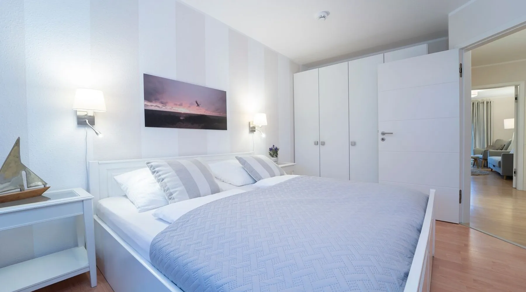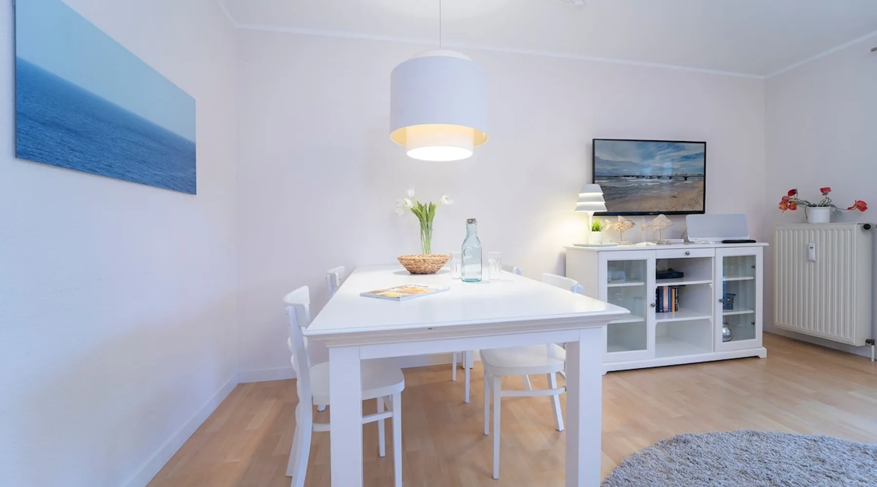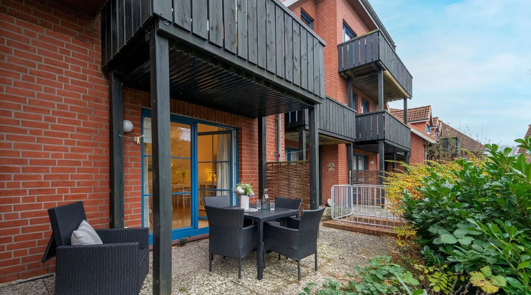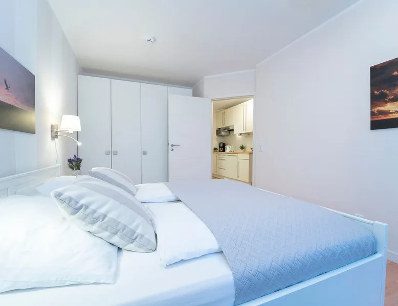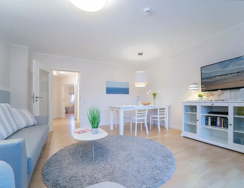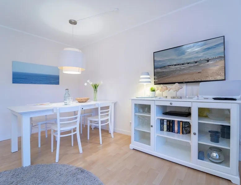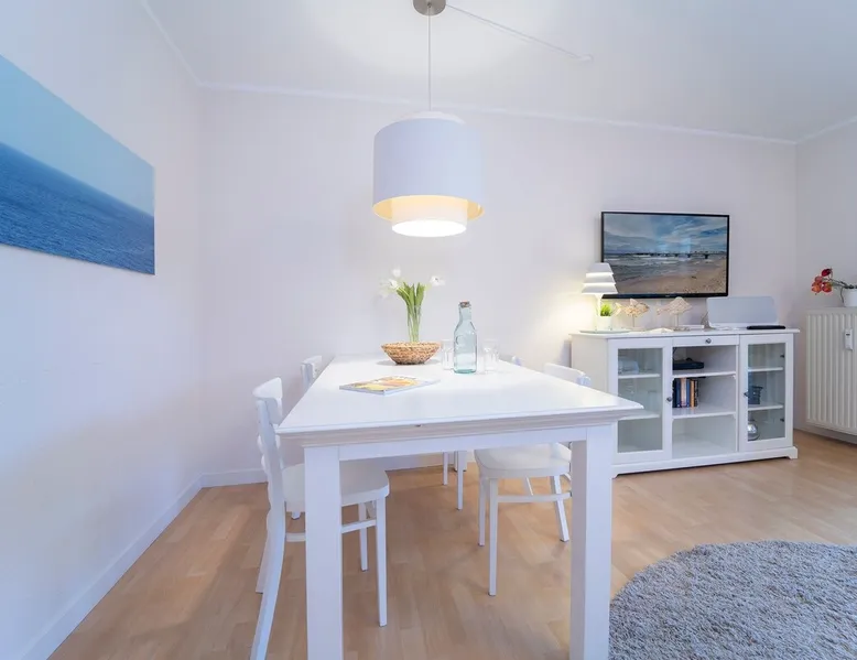 Beach nest vacation rental with terrace at An der Aue 9c in Dahme Other things to note The key is handed over via a safe at the Kraushaar Ferienwohnungen Servicebüro, Lange Wiese 4, 23747 Dahme. We welcome you to this stylish 3-room apartment on the ground floor, which can accommodate up to 4 people on approx. 65 m². In the pretty, friendly living room with dining area you will spend valuable family time, a flat-screen TV with DVD player, stereo and Wi-Fi connection provide entertainment. From here you can reach the furnished terrace, where an electric grill is ready for you to barbecue. In the open, well-equipped kitchen, you have the opportunity to spoil your loved ones. In the spacious master bedroom with large double bed (2 x 90 x 200 cm), you will want to fall into the pillows right away. There is a desk here and there would be room for a children's travel cot. Another twin bedroom (90x190cm each) and a small desk gives you fantastic nights. In the high-quality bathroom with shower/toilet and washbasin, you can start a new day of vacation after a refreshing shower. An outdoor car parking space (dimensions: 500x230 cm) is at your disposal. In the basement of the house is a shared washer and dryer (coin-operated appliances). Bicycles brought along can be parked in the bicycle room in the underground garage or in the bicycle parking space in front of the house. Please understand that this apartment is a non smoking home. No pets allowed here. Bedroom 1: double bed (2x 90x200 cm), wardrobe Bedroom 2: 2 single beds (90 x 190 cm each), wardrobe Beautiful, maritime apartment in the heart of the picturesque seaside resort of Dahme. Here you can be seduced by the sound of the sea and a salty breeze and stroll the 250 meters to the fine sandy Baltic Sea beach and the colorful promenade with numerous cafes, restaurants and small boutiques. The town center with various bakeries and shopping facilities can also be reached quickly. Whether you love long walks on the beach or like to choose active excursion destinations, this is an ideal starting point for your relaxing Baltic Sea vacation. Your apartment is located in a quiet neighboring street only about 250 m away from the Dahmer beach promenade with good restaurants and the long white Dahmer sandy beach.