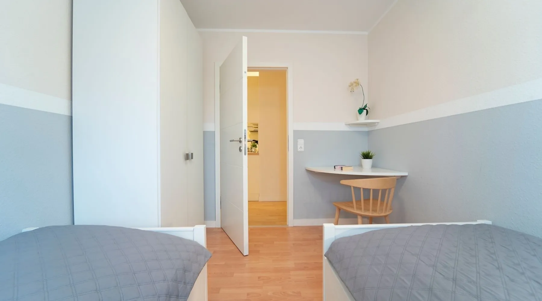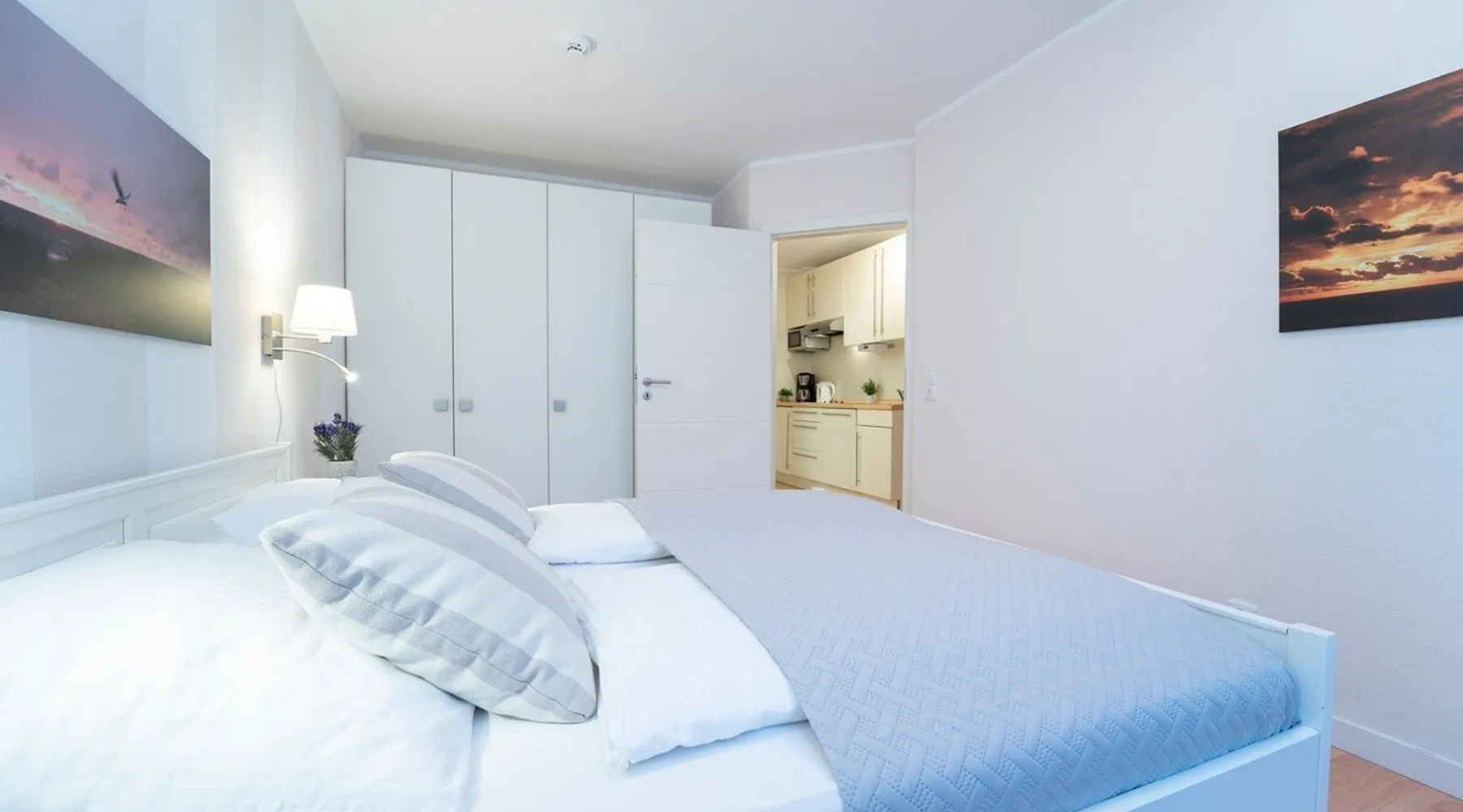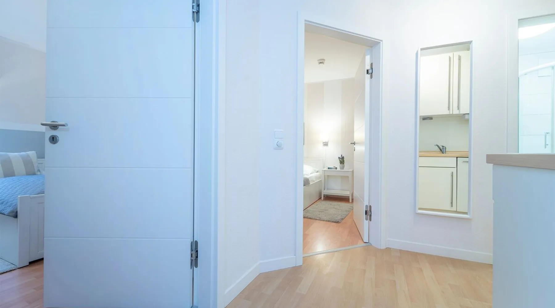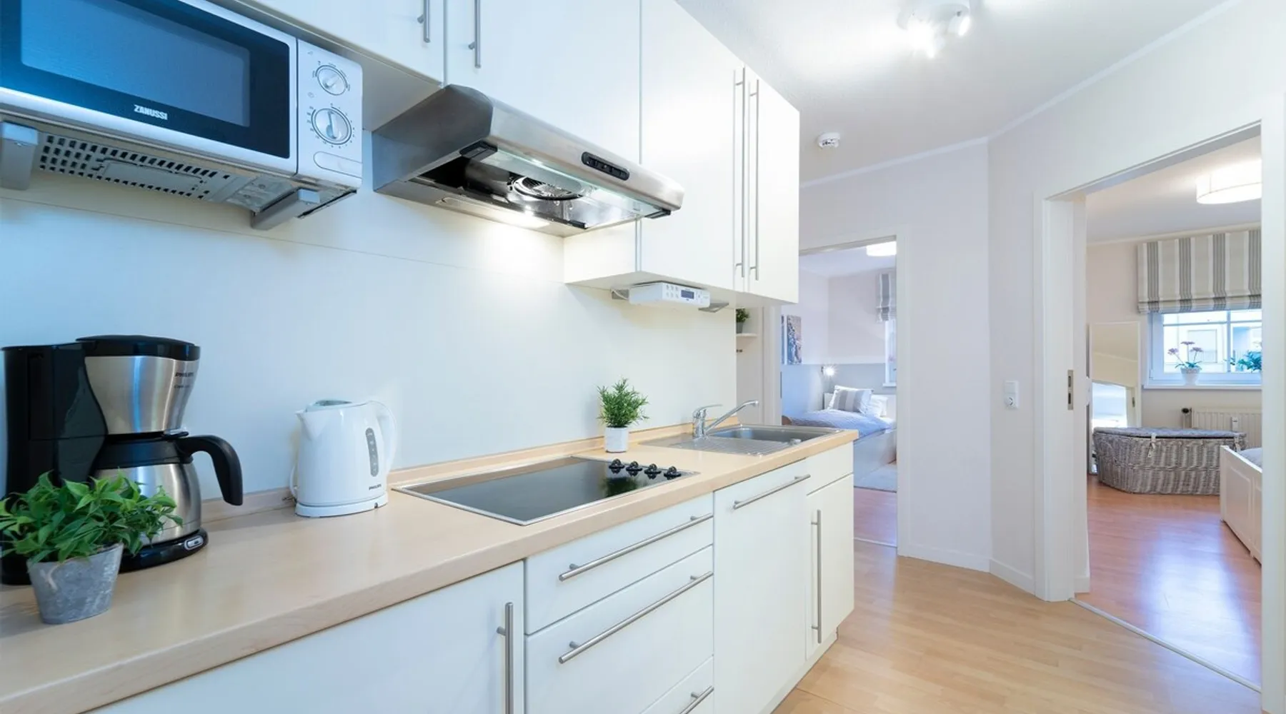 Beach nest vacation rental with terrace at An der Aue 9c in Dahme Other things to note The key is handed over via a safe at the Kraushaar Ferienwohnungen Servicebüro, Lange Wiese 4, 23747 Dahme. We welcome you to this stylish 3-room apartment on the ground floor, which can accommodate up to 4 people on approx. 65 m². In the pretty, friendly living room with dining area you will spend valuable family time, a flat-screen TV with DVD player, stereo and Wi-Fi connection provide entertainment. From here you can reach the furnished terrace, where an electric grill is ready for you to barbecue. In the open, well-equipped kitchen, you have the opportunity to spoil your loved ones. In the spacious master bedroom with large double bed (2 x 90 x 200 cm), you will want to fall into the pillows right away. There is a desk here and there would be room for a children's travel cot. Another twin bedroom (90x190cm each) and a small desk gives you fantastic nights. In the high-quality bathroom with shower/toilet and washbasin, you can start a new day of vacation after a refreshing shower. An outdoor car parking space (dimensions: 500x230 cm) is at your disposal. In the basement of the house is a shared washer and dryer (coin-operated appliances). Bicycles brought along can be parked in the bicycle room in the underground garage or in the bicycle parking space in front of the house. Please understand that this apartment is a non smoking home. No pets allowed here. Bedroom 1: double bed (2x 90x200 cm), wardrobe Bedroom 2: 2 single beds (90 x 190 cm each), wardrobe Beautiful, maritime apartment in the heart of the picturesque seaside resort of Dahme. Here you can be seduced by the sound of the sea and a salty breeze and stroll the 250 meters to the fine sandy Baltic Sea beach and the colorful promenade with numerous cafes, restaurants and small boutiques. The town center with various bakeries and shopping facilities can also be reached quickly. Whether you love long walks on the beach or like to choose active excursion destinations, this is an ideal starting point for your relaxing Baltic Sea vacation. Your apartment is located in a quiet neighboring street only about 250 m away from the Dahmer beach promenade with good restaurants and the long white Dahmer sandy beach.