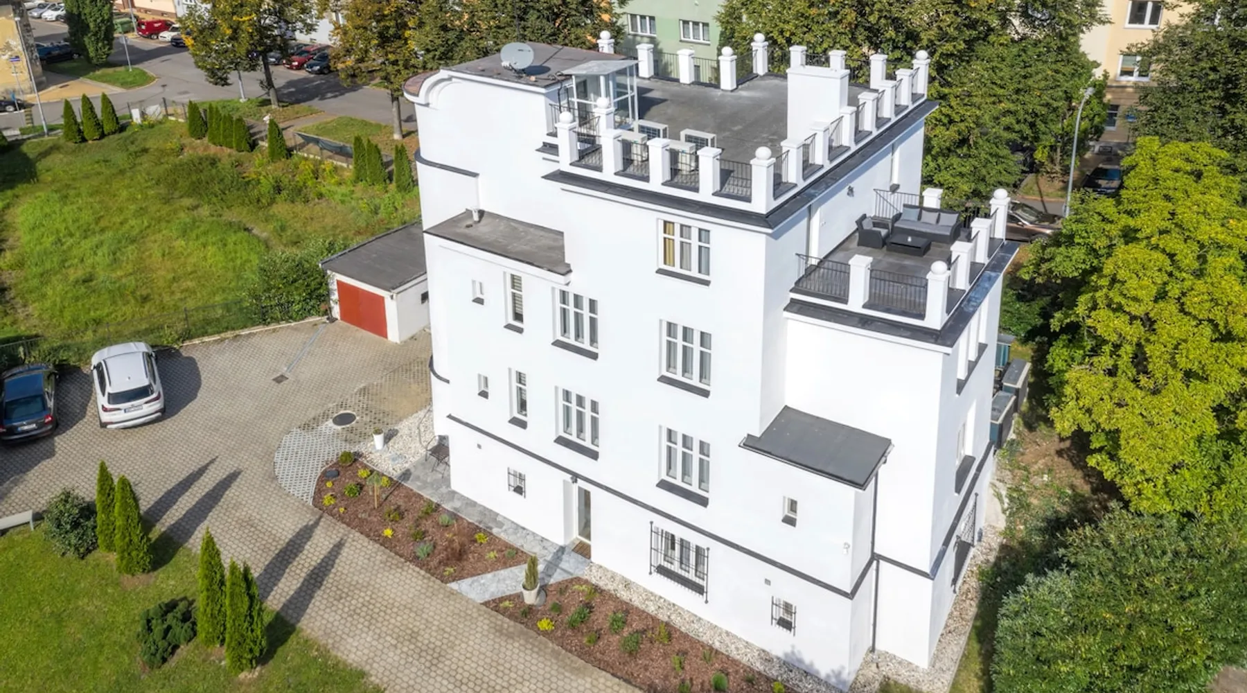 Great for couples, singles, perfect for allergy sufferers, suitable for business trips. The center of Ostrava, an architecturally magnificent property, attracts international clients thanks to its central location. Nearby are Forum Nová Karolina, Futurum and Dolní oblast Vítkovice, Stodolní street and organizing big events such as music festival Colours of Ostrava, park, art and culture, excellent restaurants. Beautiful surroundings, comfortable beds, satellite Smart-TV, apartment with a large sunny terrace is all beautifully sunny. The space A 92m2 suite with three terraces in a centrally standing villa from the 1930s is in a beautiful and quiet setting, with a beautiful garden – suitable for both long-term and short-term rentals. The villa guarantees above-standard and especially discreet living suitable for individuals or couples. Very sunny apartment is fully furnished: Smart-TV, satellite, w-lan, washer and dryer, dishwasher, microwave, dishes, bed linens, towels and more. There are two toilets. Parking is available in the property or in the garage at an additional cost. Guest access There is an entire apartment, three terraces and a garden. Other things to note The villa offers great privacy, absolute discretion and an individual approach to customers' wishes.