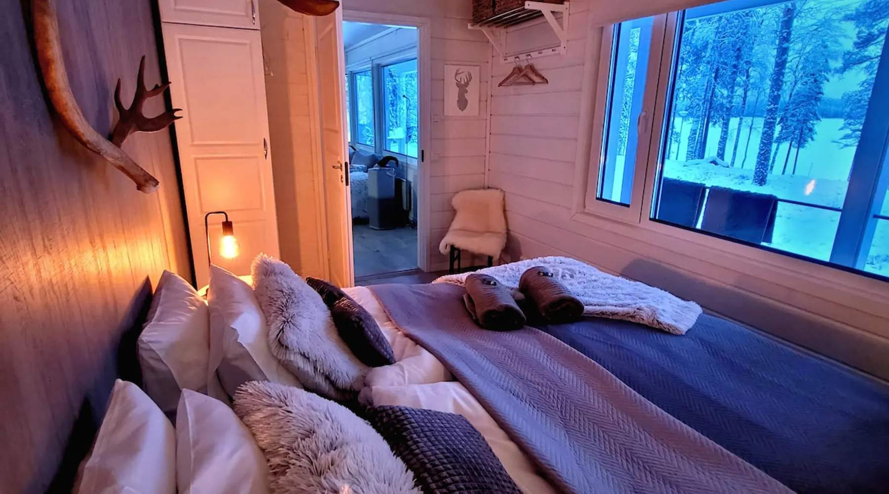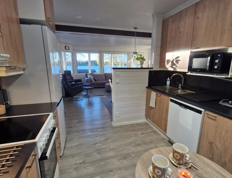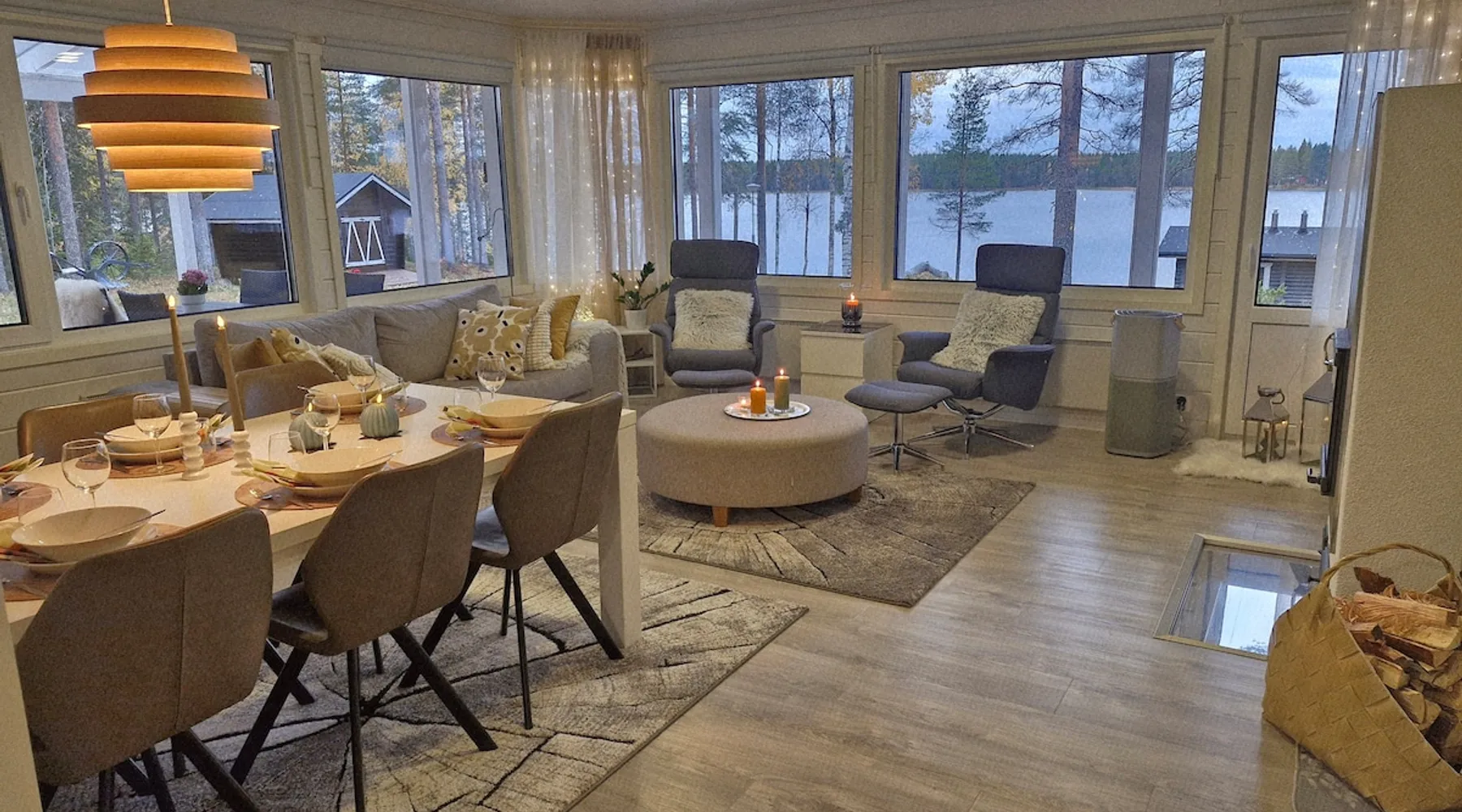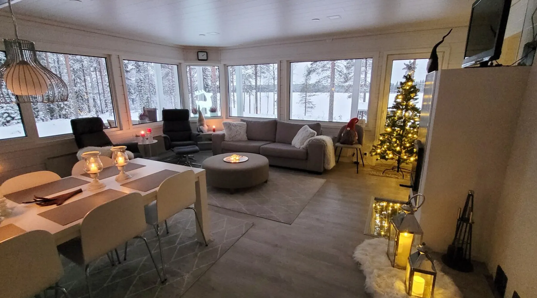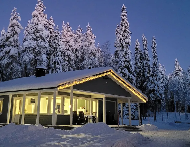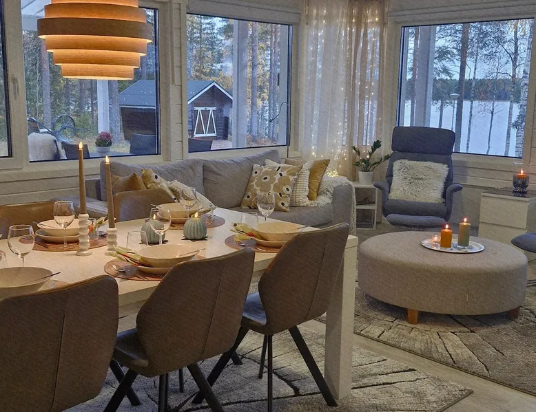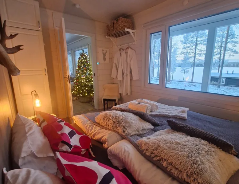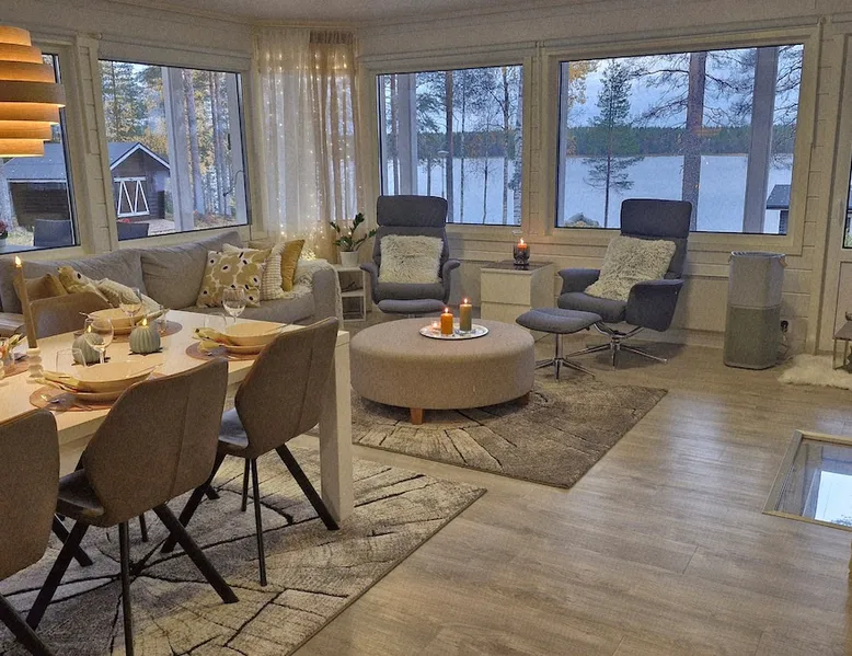 Romantic 2 bedroom lakeside villa near Rovaniemi, with hot tub and sauna. Perfect for couples and families looking for a peaceful Lapland vacation. Enjoy the cozy atmosphere, the northern lights and winter activities such as snowshoeing, sledding, ice fishing and traditional Lappish barbecue. Only 13 km from the city center and 20 km from the airport. See more on social media: @arcticvillatuomi The space Interior and living Bedroom 1 – Lakeside Paradise: Wake up to breathtaking lake views in this cozy bedroom with a 180 cm wide king-size bed. The peaceful landscape and natural light create the perfect relaxing atmosphere, ideal for couples or those seeking peace and quiet. Bedroom 2 – Forest and courtyard window: This charming bedroom has a 180 cm pull-out bed and a 90 cm motorized single bed. When the beds are fully open, the space is compact but cozy, making it ideal for families or extra guests. Enjoy the views of the forest and the front yard and the proximity to nature. Living room – Panoramic comfort: The spacious living room is designed for relaxation and socializing. There's a sofa, two armchairs, a six-person dining table, and a fireplace. Large windows open to panoramic views of the lake and the surrounding forest, bringing the natural beauty of Lapland inside. Kitchen – Fully equipped and modern: Prepare meals effortlessly in a fully equipped kitchen with coffee makers, cappuccino machine, oven, air fryer, dishwasher, fridge-freezer, microwave, and a comprehensive selection of dishes and kitchen utensils. Guests can also use basic spices, oil, coffee, tea, and cappuccino – perfect for homemade meals or a relaxed breakfast. Bathroom and Sauna: One bathroom has a shower, toilet and a traditional Finnish sauna, which offers an authentic Lapland experience. Guests also have access to shampoo, conditioner, shower gel, hair dryer, straightener and curling iron. A washing machine and detergent are also available for guests. Luxury and style: The villa is decorated with luxurious bedding, Scandinavian style and high-quality materials that create a warm, stylish and comfortable environment. Every detail is designed to enhance your stay and make you feel at home. Guest access How to get there and arrival It is easy to get to Villa by rental car or taxi. We are also happy to help you arrange transportation if you need it. Upon arrival, we will personally welcome you, show you around and guide you through the use of the fireplace and sauna to get your vacation off to a smooth start. During your stay We are always just a message away if you need help or tips. Our goal is for you to enjoy your vacation to the fullest without any worries. Winter policies The roads are very well maintained and the cars have studded tires in winter to ensure safe driving. Lapland's winter brings with it special clothing requirements and cozy indoor life, so we are happy to help you prepare. We can also help you rent or buy winter clothes, recommend good restaurants, and plan activities to make your trip memorable. Other things to note We want to offer more than just accommodation. We make sure our villa is always clean, cozy and full of atmosphere! It is really important to us that you enjoy your stay in Rovaniemi and feel genuinely welcome as our guest. We invest a lot of heart and care in making your vacation special – that's why we hope you'll treat this second home of ours like your own little paradise. We are particularly happy to host families and couples who appreciate Finnish nature, peace and quiet, comfort – and a touch of romance (and of course a clean and tidy environment!). If you are the kind of guest who enjoys a well-kept and lovingly cared for home and want to create unforgettable memories, you are warmly welcome to stay with us. However, we ask that no wild celebrations be held in the wool or that no great mess be caused. We definitely want you to relax and enjoy, but at the same time respect the love and effort we've put into this place. We'll do our best to make you feel at home!
