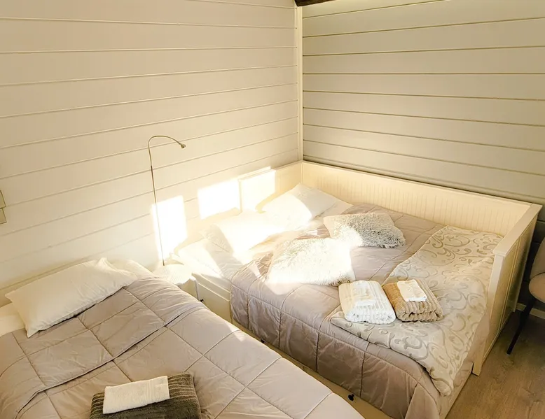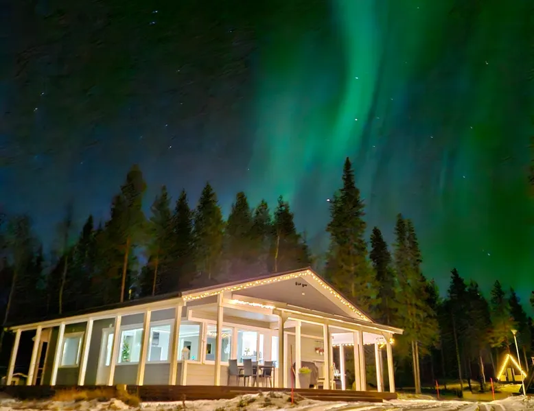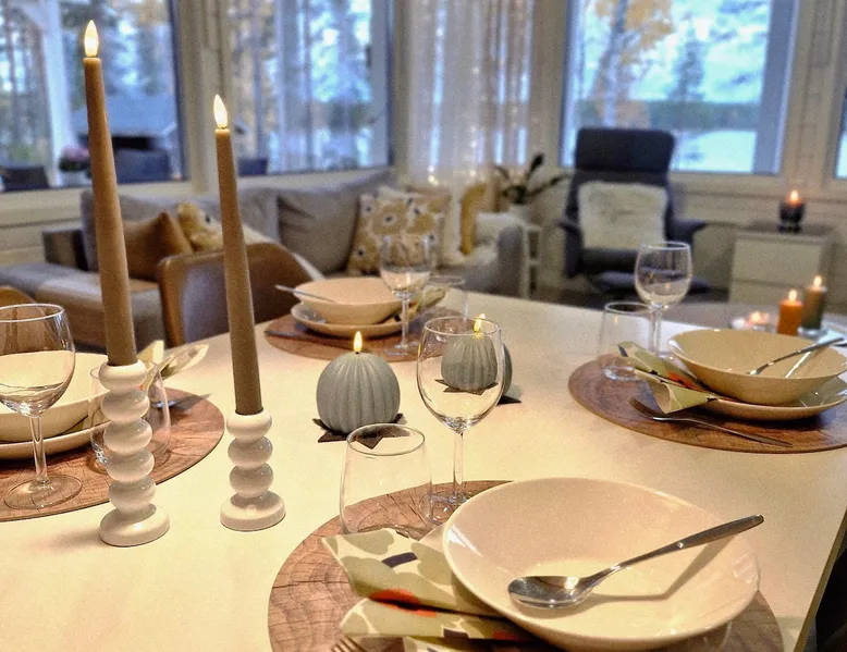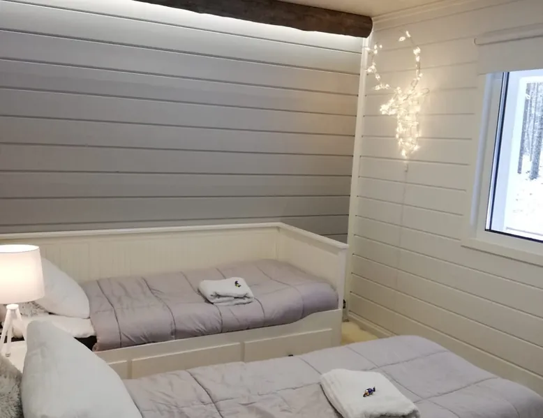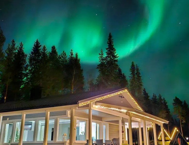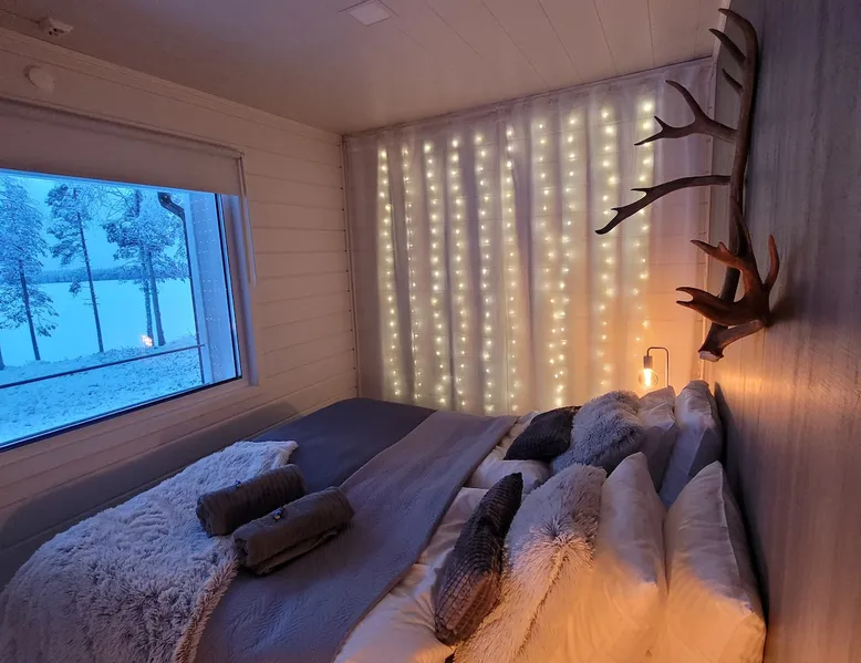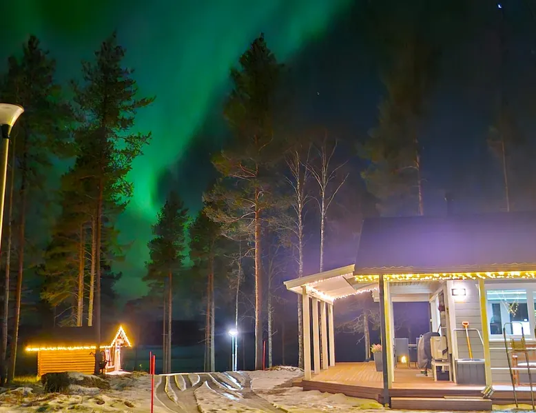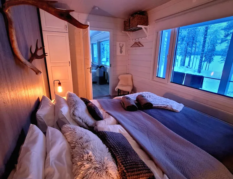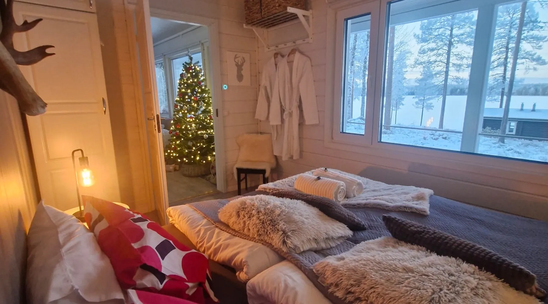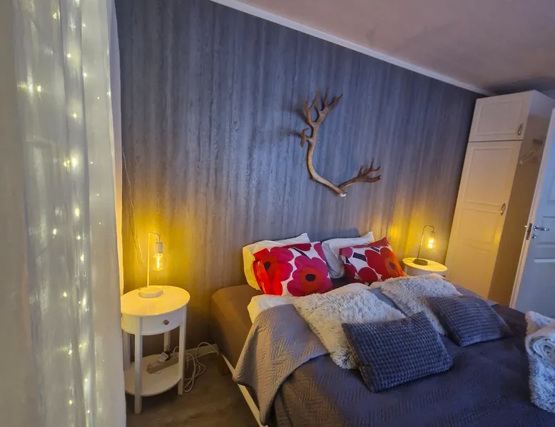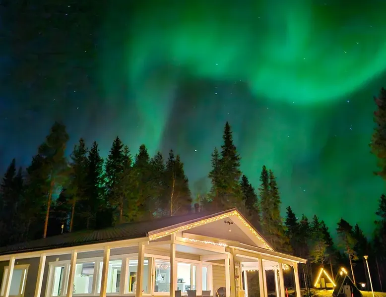 Romantic 2 bedroom lakeside villa near Rovaniemi, with hot tub and sauna. Perfect for couples and families looking for a peaceful Lapland vacation. Enjoy the cozy atmosphere, the northern lights and winter activities such as snowshoeing, sledding, ice fishing and traditional Lappish barbecue. Only 13 km from the city center and 20 km from the airport. See more on social media: @arcticvillatuomi The space Interior and living Bedroom 1 – Lakeside Paradise: Wake up to breathtaking lake views in this cozy bedroom with a 180 cm wide king-size bed. The peaceful landscape and natural light create the perfect relaxing atmosphere, ideal for couples or those seeking peace and quiet. Bedroom 2 – Forest and courtyard window: This charming bedroom has a 180 cm pull-out bed and a 90 cm motorized single bed. When the beds are fully open, the space is compact but cozy, making it ideal for families or extra guests. Enjoy the views of the forest and the front yard and the proximity to nature. Living room – Panoramic comfort: The spacious living room is designed for relaxation and socializing. There's a sofa, two armchairs, a six-person dining table, and a fireplace. Large windows open to panoramic views of the lake and the surrounding forest, bringing the natural beauty of Lapland inside. Kitchen – Fully equipped and modern: Prepare meals effortlessly in a fully equipped kitchen with coffee makers, cappuccino machine, oven, air fryer, dishwasher, fridge-freezer, microwave, and a comprehensive selection of dishes and kitchen utensils. Guests can also use basic spices, oil, coffee, tea, and cappuccino – perfect for homemade meals or a relaxed breakfast. Bathroom and Sauna: One bathroom has a shower, toilet and a traditional Finnish sauna, which offers an authentic Lapland experience. Guests also have access to shampoo, conditioner, shower gel, hair dryer, straightener and curling iron. A washing machine and detergent are also available for guests. Luxury and style: The villa is decorated with luxurious bedding, Scandinavian style and high-quality materials that create a warm, stylish and comfortable environment. Every detail is designed to enhance your stay and make you feel at home. Guest access How to get there and arrival It is easy to get to Villa by rental car or taxi. We are also happy to help you arrange transportation if you need it. Upon arrival, we will personally welcome you, show you around and guide you through the use of the fireplace and sauna to get your vacation off to a smooth start. During your stay We are always just a message away if you need help or tips. Our goal is for you to enjoy your vacation to the fullest without any worries. Winter policies The roads are very well maintained and the cars have studded tires in winter to ensure safe driving. Lapland's winter brings with it special clothing requirements and cozy indoor life, so we are happy to help you prepare. We can also help you rent or buy winter clothes, recommend good restaurants, and plan activities to make your trip memorable. Other things to note We want to offer more than just accommodation. We make sure our villa is always clean, cozy and full of atmosphere! It is really important to us that you enjoy your stay in Rovaniemi and feel genuinely welcome as our guest. We invest a lot of heart and care in making your vacation special – that's why we hope you'll treat this second home of ours like your own little paradise. We are particularly happy to host families and couples who appreciate Finnish nature, peace and quiet, comfort – and a touch of romance (and of course a clean and tidy environment!). If you are the kind of guest who enjoys a well-kept and lovingly cared for home and want to create unforgettable memories, you are warmly welcome to stay with us. However, we ask that no wild celebrations be held in the wool or that no great mess be caused. We definitely want you to relax and enjoy, but at the same time respect the love and effort we've put into this place. We'll do our best to make you feel at home!