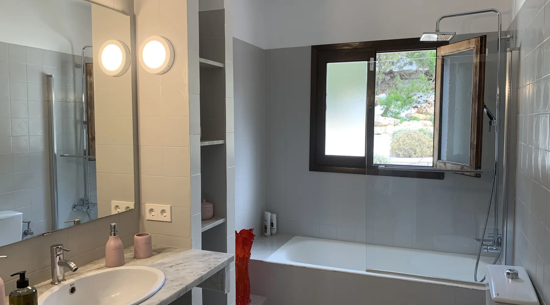 Casa Svetlana is Mediterranean style villa including: - 6 double bedrooms - 1 single bedroom - 4 bathrooms - 2 showers outside - 1 kitchen - 1 barbecue & kitchen outside - 1 bar/kitchen - 2 fire-place rooms - 2 leaving rooms - big terrasse (80msq) with the best view ever & exclusive sky-bed king size to enjoy the stars - few terasses around the pool In each room u have: airco (11 aircos in total), alarm newest system, wifi & TVset available. New sound system Bose inside and outside, Nespresso etc....