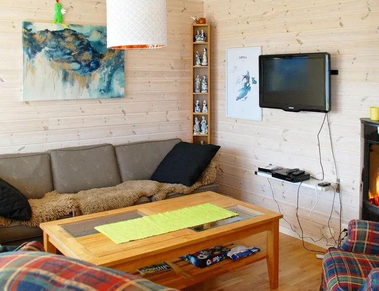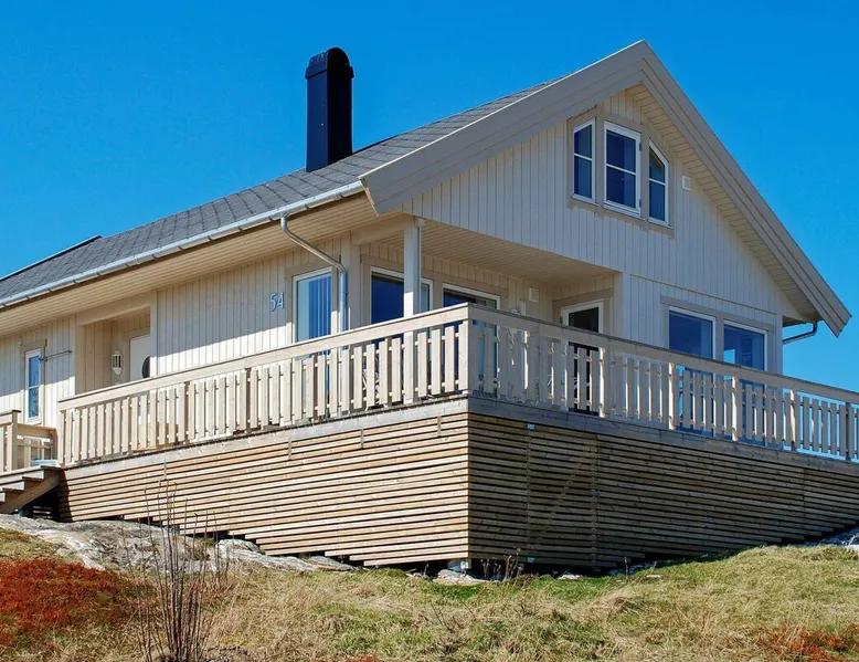 6 person holiday home in Dønna The space Comfortable and family-friendly holiday home with a great panoramic view to the charming coastal landscape of the Helgeland region. The cabin is located near the north coast of the island of Dønna and built in 2016, surrounded by beautiful hiking terrain and good fishing in the offshore sea. Leisure anglers can rent a boat for their trips. The house has two floors: On the ground floor kitchen / living area with dining area with wonderful sea views and two bedrooms each with double bed and bathroom with shower / WC, washing machine and dryer. The second floor contains two additional bedrooms, each included with two single beds, and a lounge area with PlayStation and TV (included with German channels) Make it comfortable with the whole family on cooler evenings in front of the blazing fire of the fireplace, viewable through large glass panel. The modern heat pump also contributes to a pleasant indoor climate. The room height is limited in the upper floor, max. 190 cm, on the sides of the sloping roof max. 110 cm high. The area is perfect for the active family who loves to spend time outdoors and enjoying the magnificent nature. Note that this cabin is not available for fishing groups. The boat is available 01.05 – 30.09 A ferry is required to the house. At DanCenter you have a wide choice of holiday homes and Danland Parks. We have as many as 6,000 different holiday homes in Denmark, as well as a large selection in Sweden, Norway and Germany. Thanks to the extensive offer you will always find a holiday home that suits you. You can enjoy your stay in a holiday home in Scandinavia in any season. How about a holiday home with swimming pool in the spring? Or a holiday home by the sea in summer? That way you can cool down on sweaty days. But Scandinavia is also a fantastic destination in autumn or winter. There are plenty of houses with a fireplace or sauna. Moreover, some houses are also equipped with a billiard or table tennis table. You won't be bored for a moment! Even if you like staying at a holiday park, there are plenty of options. The Danland holiday parks all have good facilities, such as a swimming pool, playground or bicycle rental. A holiday park is always a good place to be. Discover from your holiday home the beautiful Danish beaches on the North Sea or Baltic Sea, or enjoy a holiday on one of the many Danish islands. Whether you go on holiday with your partner, family or group of friends, DanCenter provides the place to be. Plus, over 3,000 holiday homes allow you to bring your pet! Sounds like a wonderful holiday right? Guest access Layout: Boat: Kitchen(cooker(electric), hood, coffee machine(filter), microwave, dishwasher, fridge, freezer(200-249L), tumble dryer, washing machine, high chair), Living/bed room(27 m2)(TV(satellite, german television channels, norvegian TV channels ), radio), bedroom(double bed, children's bed), bedroom(double bed), bedroom(2x single bed), bedroom(2x single bed), bathroom(floor heating)(bathtub or shower, washbasin, shower, toilet), game computer, game computer, heating(electric), terrace(25 m2), terrace(roofed, 5 m2), garden furniture, BBQ, parking, air to air heatpump Other things to note To be paid at the holiday home: Note: If applicable some fees may need to be paid upon your arrival. Please find an overview of these possible costs below - Deposit: NOK 1.500 - Pets: Not allowed - Bed linen: Possible to rent, NOK 150 per Stay Additional services which can be booked: - Bath towels: Bring your own - Wifi: Free Additional costs included in the booking price: - Final Cleaning: NOK 0.00 Group/Stay