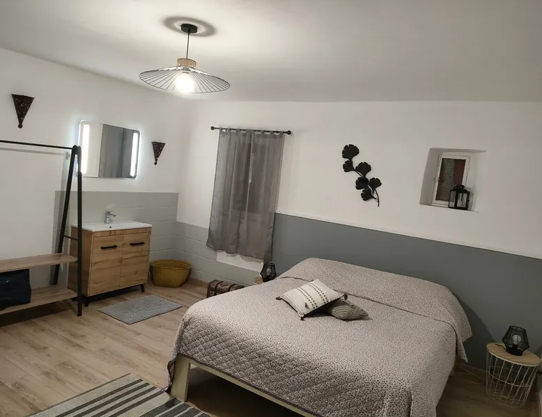 The cottage is located on our sheep farm, in the municipality of Cazaux in the heart of the Plantaurel massif, part of the regional natural park of the Pyrenees Ariégeoises. Your place is a charming single storey apartment of 73 sqm habitable and 30 sqm of covered terrace. On a 17 Ha property of meadows, woods, large garden. You will find Foix and Pamiers 15 km, 1 hour from Toulouse and Carcassonne and 40 min from the Ariégeois mountains. Lots of places to visit nearby! The space 73m² apartment under the main dwelling of the property. It consists of a spacious bedroom with double bed and vanity. One bathroom equipped with bathtub, vanity and toilet. Fully-equipped kitchen. Large living room dining room with sofa bed for 2 people. Private terrace overlooking garden and meadows. Private parking on the property. Guest access The whole accommodation Other things to note Possibility on site and on order of homemade bread with local flour, eggs and different local products. We have a chicken coop and two affectionate dogs. Sheets, towels and kitchen towels are provided. A little extra: In our valley you can listen to the deer slab during the period (between September and October). Many greenways near the cottage are to be discovered on foot or by bike. you can discover the Cathar paths, as well as a multitude of caves (Mas d'Azil, Lombrives, Labouiches, Niaux, Bedeilhac...)