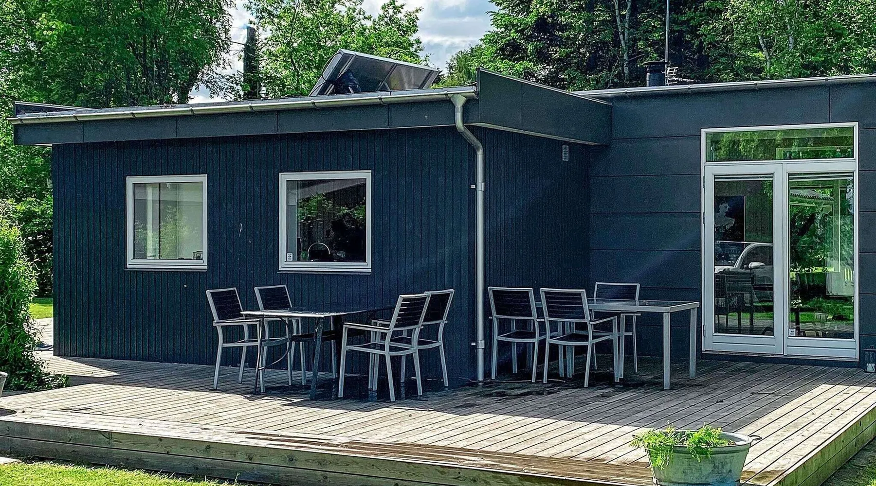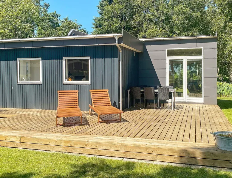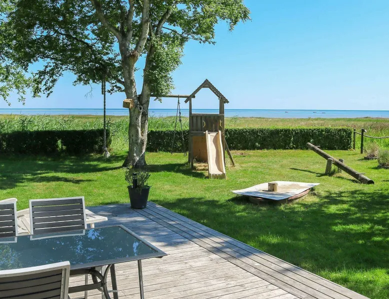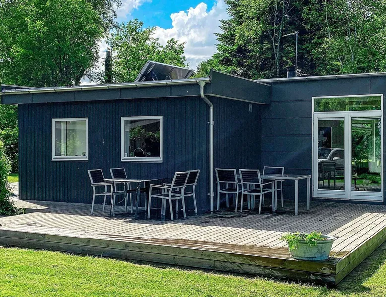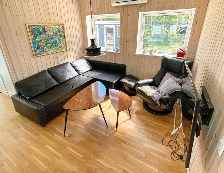 Cottage with sauna and wilderness bath, fantastically located directly down to the sea at Als Odde with good views from both the house and the terraces. Large and bright living room in open connection with the kitchen and with access to three open terraces and a covered terrace. Bedroom with double bed and room with double bed and bunk above. Bathroom with shower. Annex with large sauna overlooking the water and a shower to cool off with. The house is located at the end of a small gravel road in a cozy and quiet cottage area with good fishing opportunities. Not for rent to youth groups. For reasons of tranquillity, this holiday home will not be rented to groups of youngsters Layout: open kitchen(cooker(electric), hood, coffee machine, microwave, dishwasher, fridge-freezer, tumble dryer, washing machine), Living/bed room(TV(german television channels, danish TV channels (DR1 and TV2)), high chair), bedroom(double bed, children's bed), bedroom(double bed, bunk bed), bathroom(floor heating)(bathtub or shower, washbasin, toilet), bathroom(bathtub or shower), game computer, bath tub(outside), sauna(indoor, heated, 6 persons), heating(electric), terrace, terrace(roofed), play equipment, solar energy, air to air heatpump These costs are mandatory and charged on site. They are not included in the rental price. Electricity: DKK 3.40/kWh Bed linen: Possible to rent per package, DKK 155.00 p.p./Stay Pets: Max. 2; free of charge Water: DKK 65.00/m3 Final Cleaning: DKK 950.00, or all cleaning needs to be done by yourself Optional services that you can arrange on site Kitchen linen: Included in the price when you rent a linen package Cot: DKK 110.00/stay Bath towels: Included in the price when you rent a linen package Wifi: Free (Min. 50/50 Mbit) High chair: DKK 110.00/stay