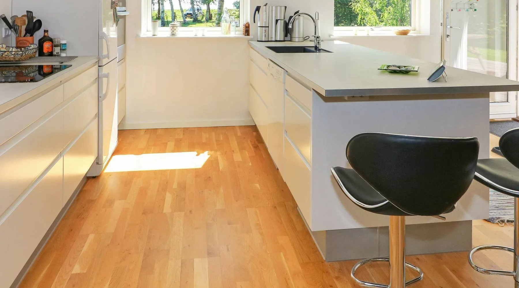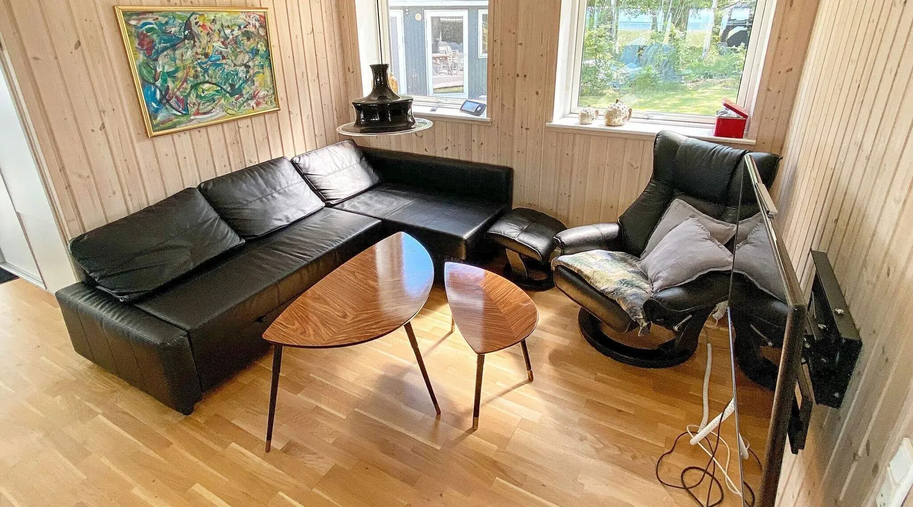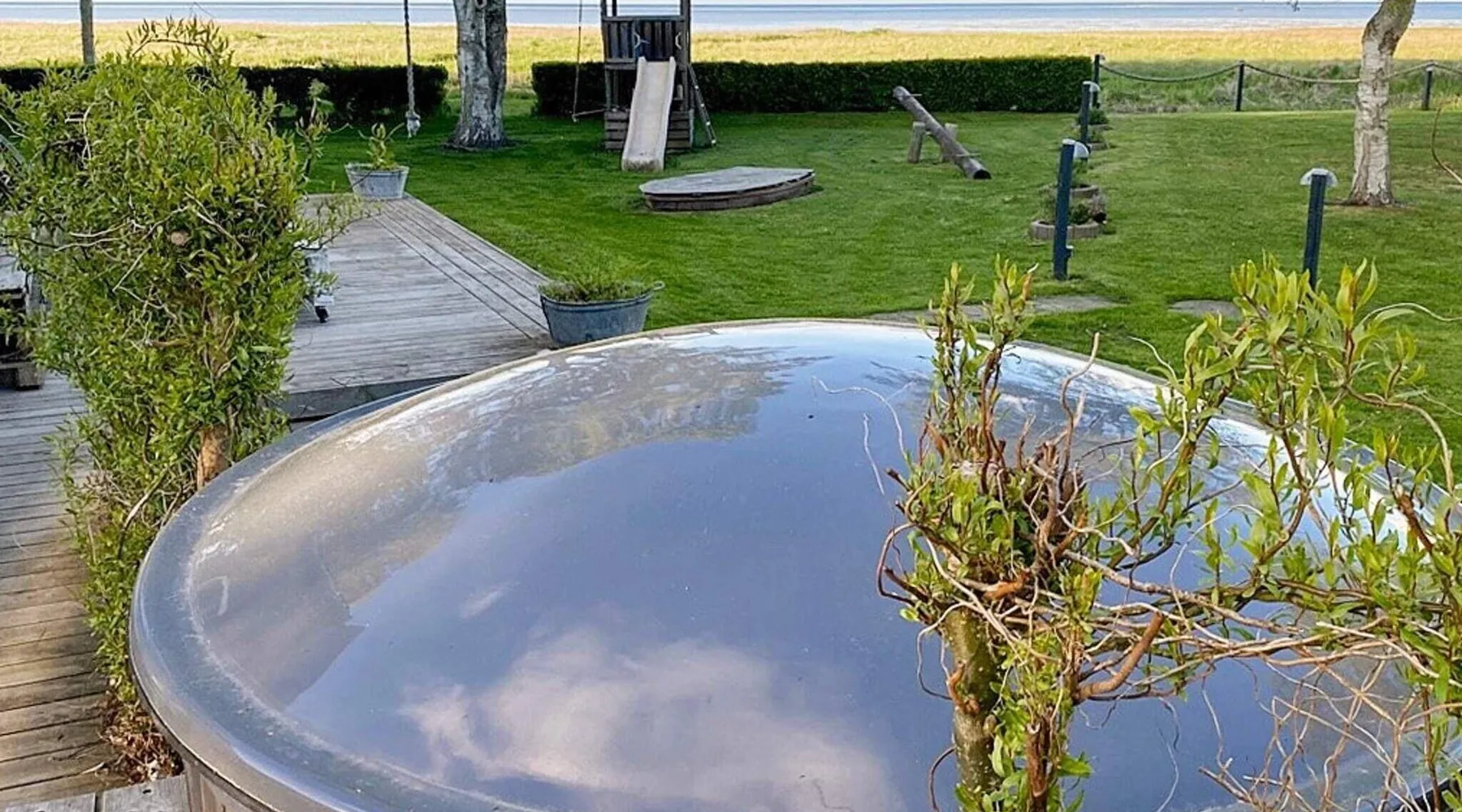 Cottage with sauna and wilderness bath, fantastically located directly down to the sea at Als Odde with good views from both the house and the terraces. Large and bright living room in open connection with the kitchen and with access to three open terraces and a covered terrace. Bedroom with double bed and room with double bed and bunk above. Bathroom with shower. Annex with large sauna overlooking the water and a shower to cool off with. The house is located at the end of a small gravel road in a cozy and quiet cottage area with good fishing opportunities. Not for rent to youth groups. For reasons of tranquillity, this holiday home will not be rented to groups of youngsters Layout: open kitchen(cooker(electric), hood, coffee machine, microwave, dishwasher, fridge-freezer, tumble dryer, washing machine), Living/bed room(TV(german television channels, danish TV channels (DR1 and TV2)), high chair), bedroom(double bed, children's bed), bedroom(double bed, bunk bed), bathroom(floor heating)(bathtub or shower, washbasin, toilet), bathroom(bathtub or shower), game computer, bath tub(outside), sauna(indoor, heated, 6 persons), heating(electric), terrace, terrace(roofed), play equipment, solar energy, air to air heatpump These costs are mandatory and charged on site. They are not included in the rental price. Electricity: DKK 3.40/kWh Bed linen: Possible to rent per package, DKK 155.00 p.p./Stay Pets: Max. 2; free of charge Water: DKK 65.00/m3 Final Cleaning: DKK 950.00, or all cleaning needs to be done by yourself Optional services that you can arrange on site Kitchen linen: Included in the price when you rent a linen package Cot: DKK 110.00/stay Bath towels: Included in the price when you rent a linen package Wifi: Free (Min. 50/50 Mbit) High chair: DKK 110.00/stay