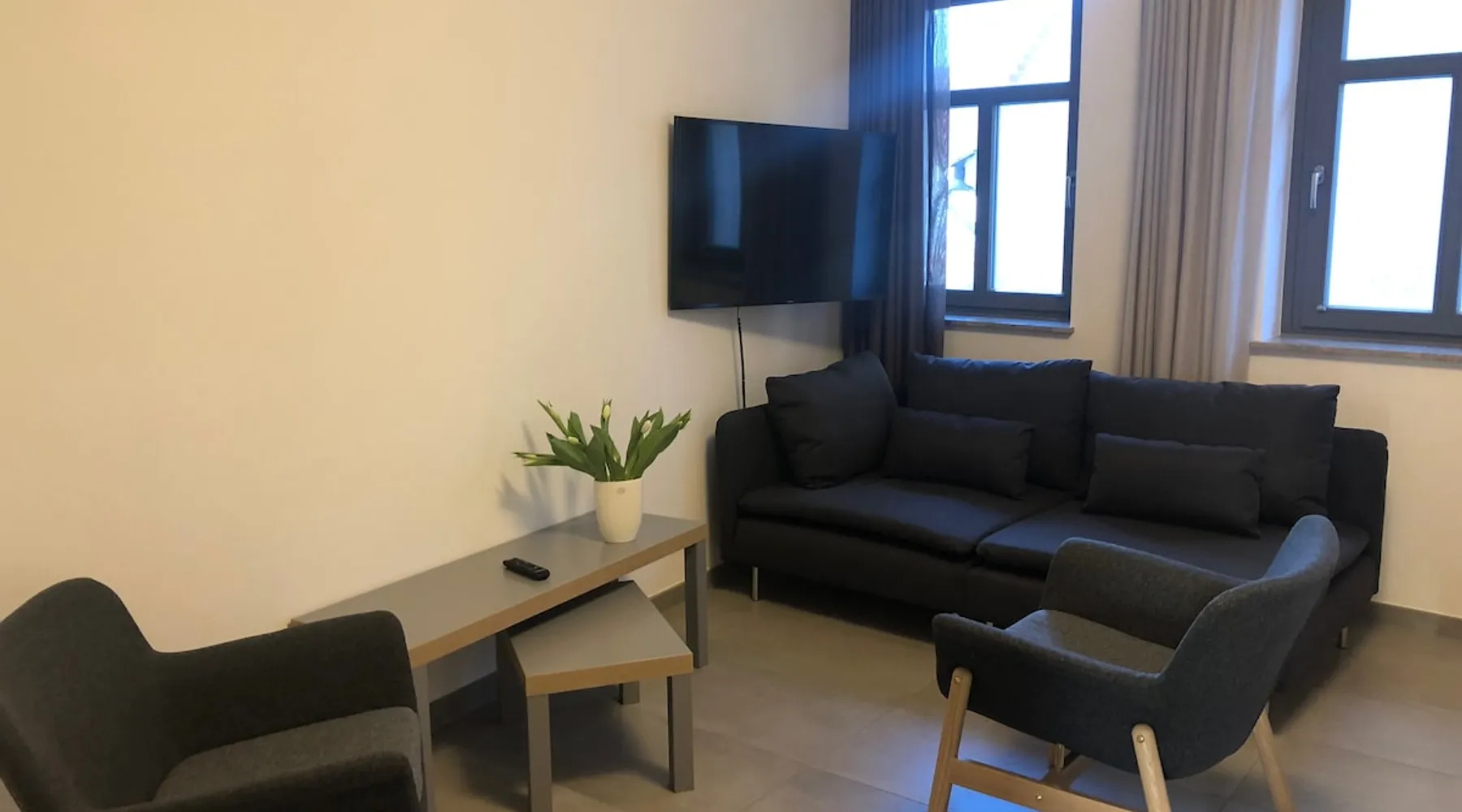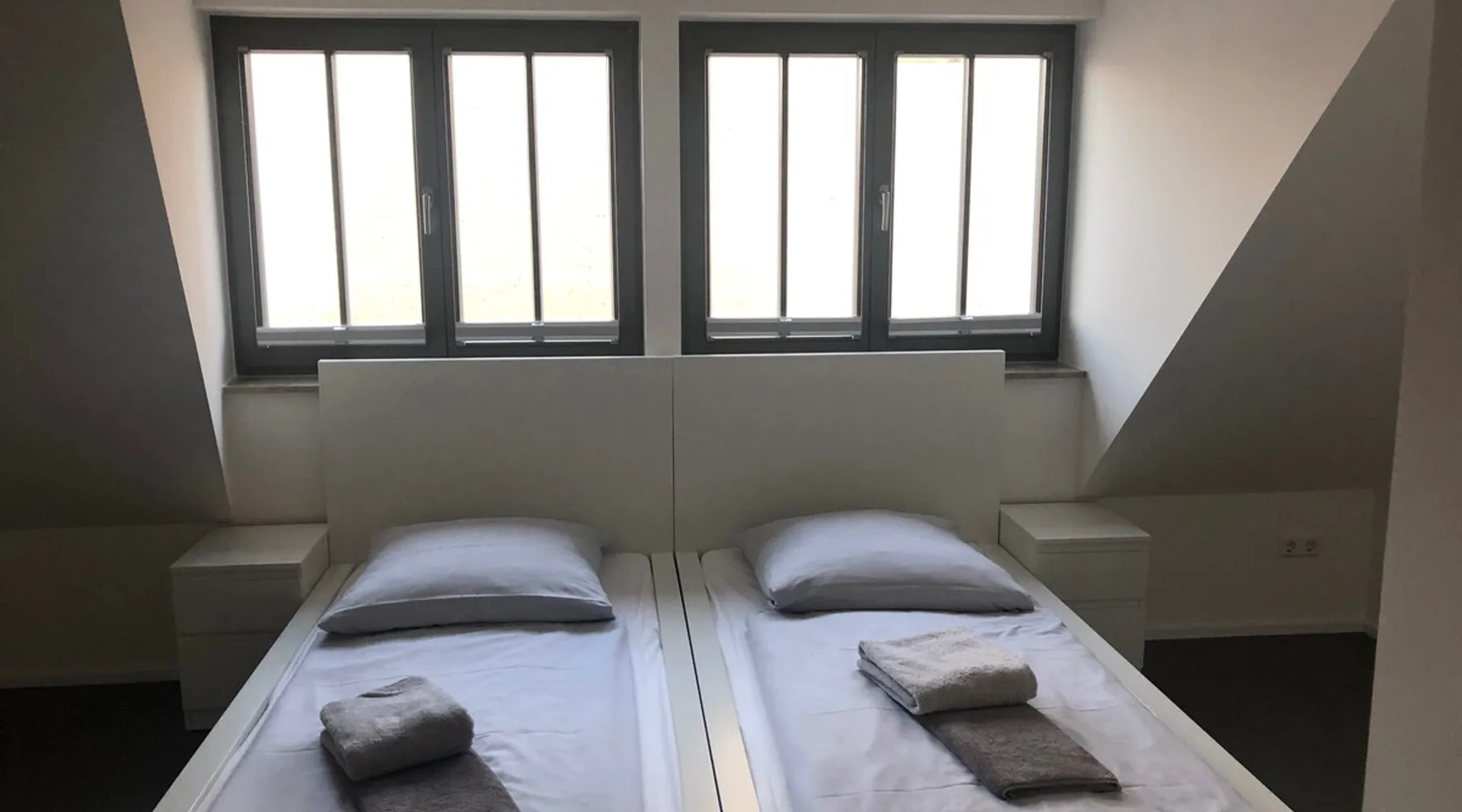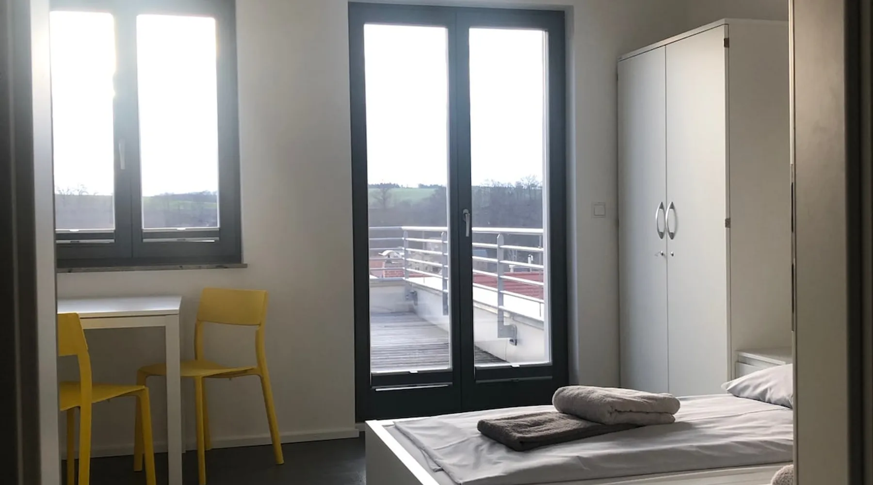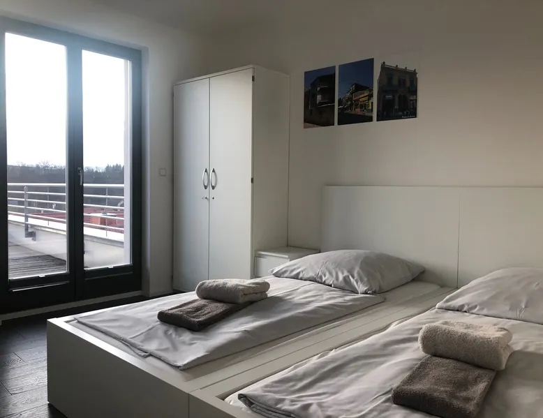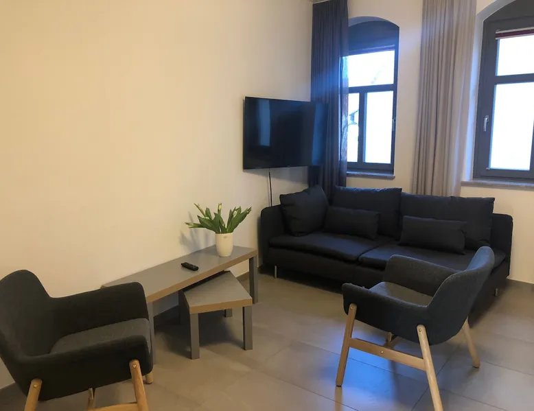 Modern apartment, purist style in the city center of Dippoldiswalde in the Ostergebirge, close to Dresden (20 km), Saxon Switzerland (25 km) and Prague (120 km). Dippoldiswalde is a large district town in the district of Saxon Switzerland-Osterzgebirge in Saxony. The city is centrally located in the Osterzgebirge and is located about 20 kilometers south of Dresden halfway to the border to the Czech Republic. The space The apartment is fully enclosed on the 2nd floor. 3 bedrooms with 2 beds each, 2 bathrooms with shower or bathtub, as well as a fully equipped kitchen are available. A small terrace offers a beautiful view of the church and castle of Dippoldiswalde. In the apartment, we deliberately refrain from unnecessary equipment, accessories and dust collectors. The floors are made of high quality tiles, no outfitted fabric is used. Suitable for allergy sufferers. Guest access Fully enclosed apartment.