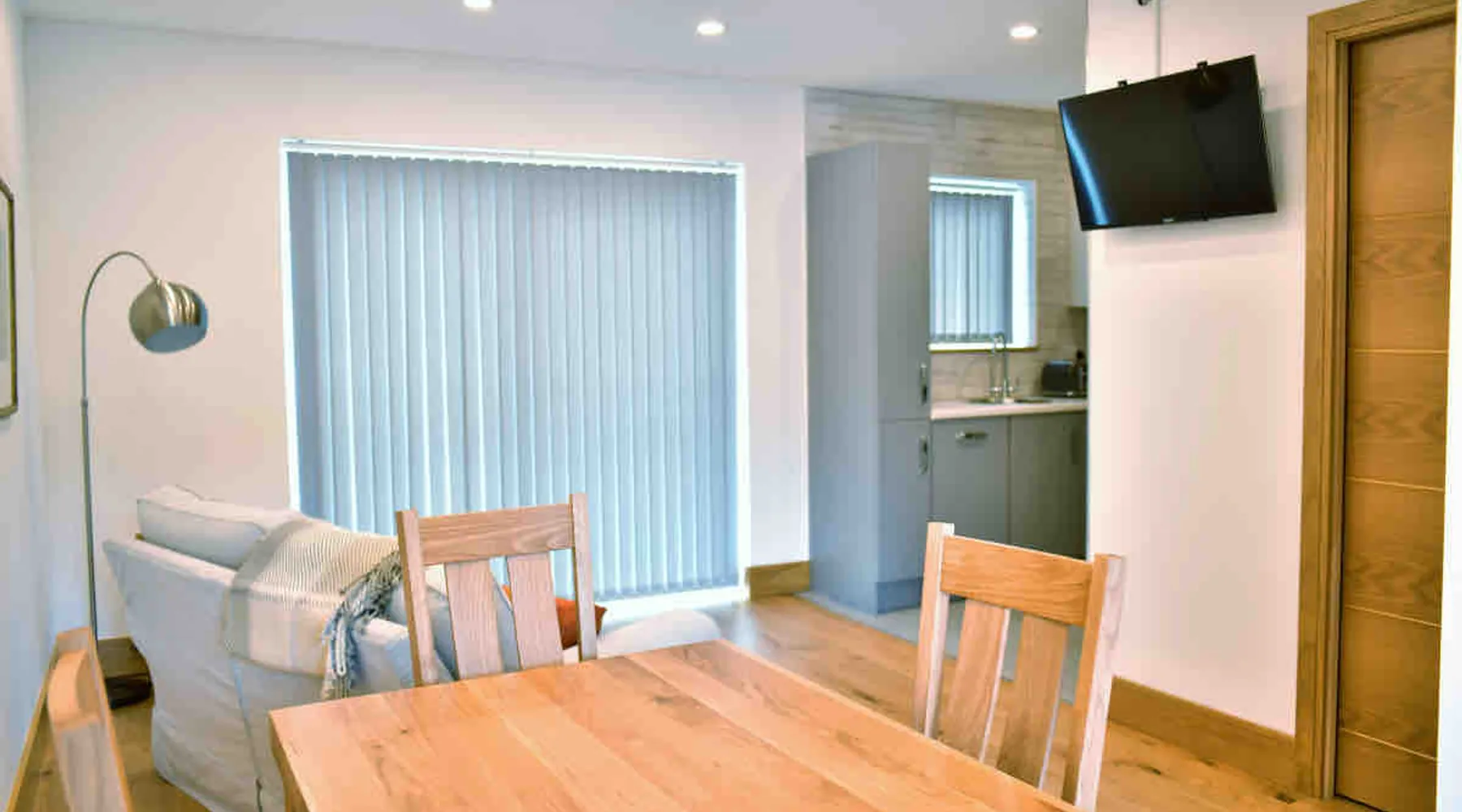 Brand new apartments that are purpose built for holiday letting. This unit is furnished to a very high spec to offer maximum comfort whilst you enjoy the uninterrupted views over the Sound of Mull. Situated in the heart of Lochaline. The village is 40 miles from Fort William and a short ferry ride to Mull. The building comprises 3 letting properties which are all self contained, however they could be let together for group and family holidays. Thus enabling each family their own privacy. The space Open plan living space with fully fitted kitchen comprising all mod cons, including an Induction hob and combi oven. The living space boasts full height windows looking towards Mull. A sofa bed can also be used in the main living space. One double bedroom with wardrobe and drawers. Spacious waterfall shower, WC and sink. We now have a lockable cycle pod for safe storage of your bikes.