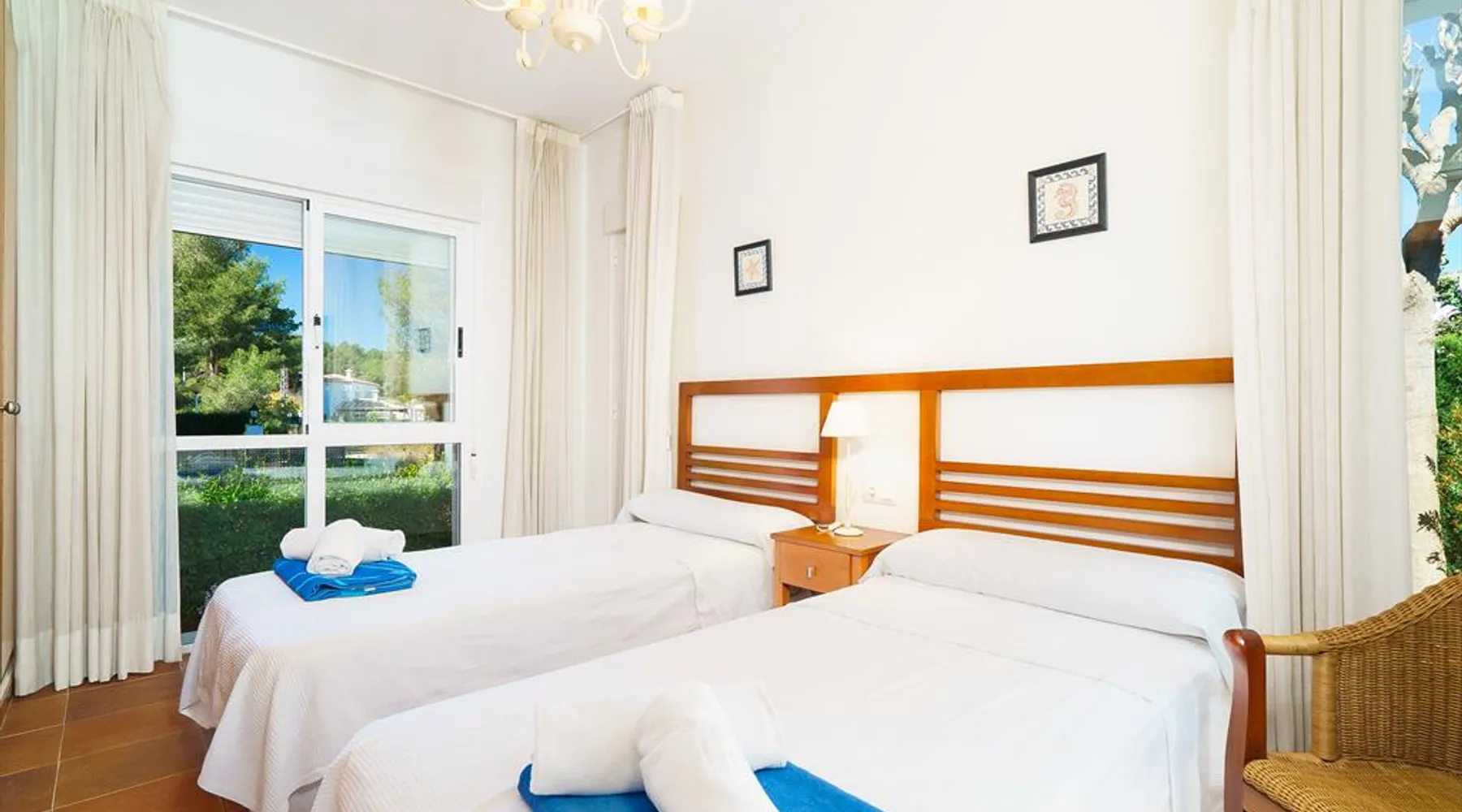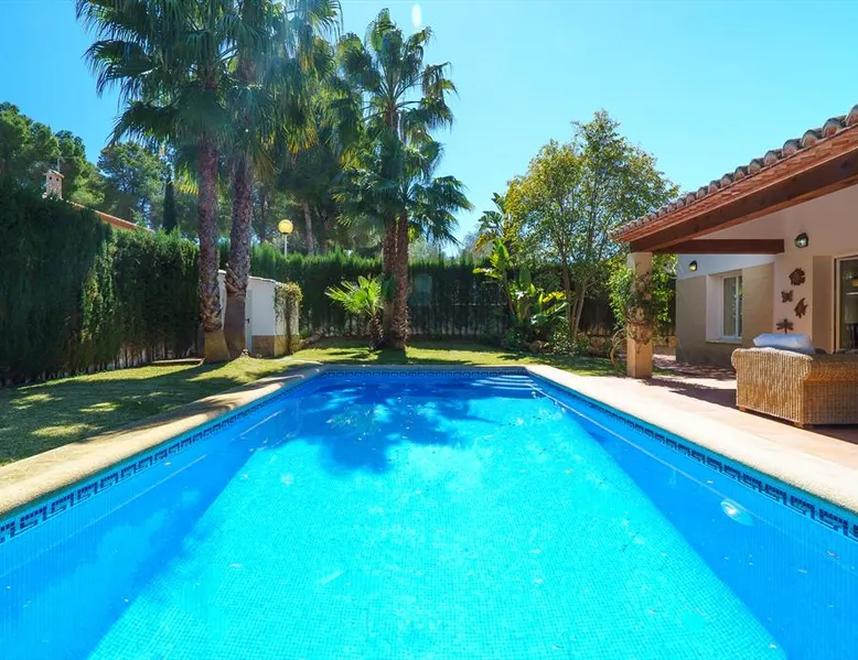 Large and comfortable villa with private pool in Javea, Costa Blanca, Spain for 6 persons The space Large and comfortable villa with private pool in Javea, Costa Blanca, Spain for 6 persons. The house is situated in a residential beach area, at 1 km from El Arenal, Javea beach and at 1 km from Mediterraneo, Javea. The villa has 3 bedrooms and 3 bathrooms, spread over 2 levels. The accommodation offers a lot of privacy, a beautiful lawned garden with gravel and trees and a wonderful pool. Its comfort and the vicinity of the beach, places to shop, sports activities, entertainment facilities, places to go out, sights and culture make this an ideal villa to spend your holidays in Spain with family or friends and even your pets. Interior of the villalarge 2 level villaair conditioned living room with television, DVD player and ipod docking stationair conditioned dining roomfireplace in living room (wood)3 bedrooms and 3 bathroomscable television (TDT)laundry room with washing machine and tumble dryerKitchenkitchen with electric hob, electric oven, microwave, dishwasher, refrigerator-freezer, coffee machine, electric kettle, mixer, toaster and juicerBedrooms and bathrooms2 air-conditioned bedrooms, each with 2 single beds (measuring 190 by 90cm)air-conditioned bedroom with 2 single beds (measuring 200 by 90cm) and bathroom en-suiteen-suite bathroom with double washbasin, bath, shower, bidet and toiletbathroom with double washbasin, bath/shower combination, bidet and toiletbathroom with single washbasin, shower and toiletExterior of the villaenclosed plotprivate pool measuring 8m x 4m and 2m deepbeautiful lawned garden with gravel, trees and garden furniture with sunbeds3 terraces, of which 2 coveredbarbecueoutside sitting area and outside dining area3 private enclosed parking spacesMore informationnearest town Javea (within 4 kilometers of the villa)nearest riverbank or shore Mediterraneo, Javea (within 1000 meters of the villa)nearest beach El Arenal, Javea (within 1000 meters of the villa)nearest port La Fontana, Javea (within 2 kilometers of the villa)nearest park Pinosol, Javea (within 2 kilometers of the villa)nearest airport Alicante (within 100 kilometers of the villa)second nearest airport Valencia ( > 100 kilometers of the villa)pets allowedThe accommodation is very suitable for families with childrenFacilities and services included in the rental price of the villainternet (WiFi)vacuum cleaner and iron and ironing boardbed linen and towelsreception service and 24 hours emergency servicecentral heating and air-conditionedFacilities and services at extra chargeairport servicecook service and laundry serviceextra bed and children beds/cots (on demand)Entertainment and leisure activities for your holidays in Javea, Costa Blancapromenade (El Arenal and Javea) (within 1000 meters of the house)cinema, theatre, discotheque and bar (within 5 kilometers of the house)Sights and culture in Javea, Costa Blancamuseum (Histórico de Javea, Javea), church (San Bartolome, Pueblo, Javea), monument (Pueblo de Javea, Javea), architectural building (Histórico de Javea, Javea), historic place (Pueblo de Javea and Javea) (within 5 kilometers from the accommodation)ruin (Molinos de Viento and Javea) (within 10 kilometers from the accommodation)palace (Valencia), castle (Portal de la Vila and Denia) (within 25 kilometers from the accommodation)Sportstennis (within 1000 meters of the villa)golf (Javea Golf Club), horse riding, hiking, mountainbiking, cycling, climbing, canoeing, kayaking, fishing, diving, snorkeling, surfing, waterskiing and windsurfing (within 5 kilometers of the villa) Other things to note Obligatory extras: Checkin and checkout outside office hours: Included 24/7 telephone service for urgent matters: Included Service desk for questions and support: Included Beach towels for all guests 180cm by 85cm: Included Air conditioning: Included Heating Costs: Included Normal water and electricity consumption: Included Optional extras: Cot (cradle) including bed linen: 45 € per booking to pay upon arrival Playpen: 25 € per booking to pay upon arrival Portable stand or tabletop fan: 15 € per booking to pay upon arrival High chair: 25 € per booking to pay upon arrival Admission for one pet: 50 € per booking to pay upon arrival Unique Registry of Tourist and Temporary Rentals: ESFCTU000003071000439111000000000000000000VUT04651586 Unique Registry of Tourist and Temporary Rentals: ESFCNT00000307100043911100000000000000000000000000009 Registration Details Valencia - Regional registration number AT-465158-A