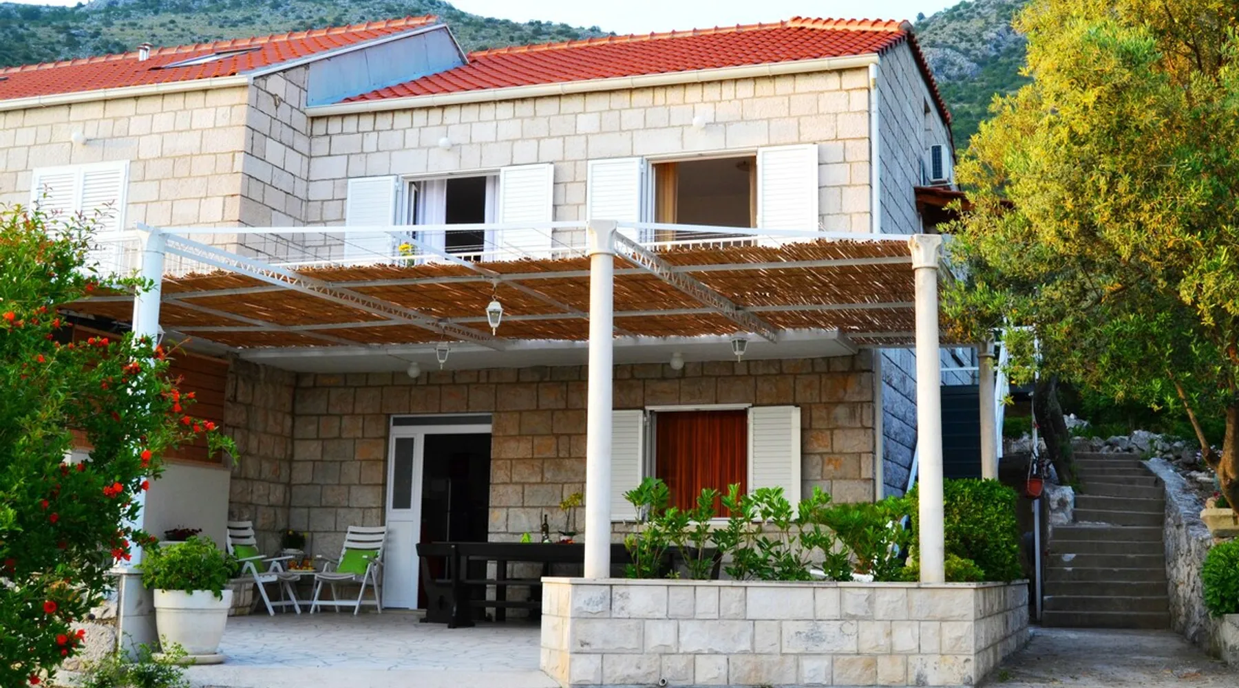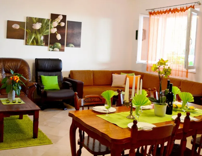 A self-catering stone house with terrace, sea view and green/flower garden, offering privacy and comfort for guests who tend to stay away from overcrowded places and city areas with thousands of fellow travelers. If your family or a group of friends (10 - 12 people) is prefering a relaxing holiday in a seaside place, while still being close enough to all of the attractions of Dubrovnik and the surrounding area, this might be a perfect place for you The space Villa Lina Brsecine is spacious fully equipped holiday house with two balconies and large terrace overlooking the Adriatic sea and the Elaphite islands. The Villa consists of 5 bedrooms (+1 additional room with a sofa bed), 3 bathrooms, large kitchen with dining and living room, furnished shaded terrace, flower garden planted with autochthonous plants. A large parking area, situated right by the house is at guests full disposal. There is also an outside BBQ in the courtyard and it is free to use Guest access All of our guests have unlimited access to the following: furnished shaded terrace, outdoor BBQ, spacious front yard with private parking area, 2 balconies, all of the appliancies inside the house (free Wi-Fi, 50" smart TV, 42" smart TV, 4 A/C units, 2 dishwashers, 2 washing machines, 3 fridges, toaster/sandwich maker, 2 microwaves, iron, 2 hair-dryers, vacuum cleaner.. etc.) Other things to note The two floors of the house are not connected internally. The house is located near the Adriatic road (approx. 30 m), so a little noise made by passing cars is possible, but since the inside area is air-conditioned and when ever the windows and doors are closed, the noise gets completely neglected