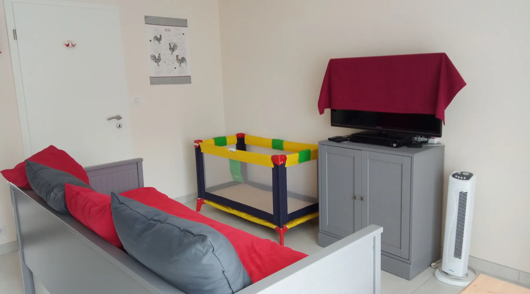 Le Cocon d'Alsace is located in the commune of Folgensbourg, near Basel-Mulhouse Airport, Basel, Germany and Saint-Apollinaire golf course (less than 1 km), casinos in Basel and Blotzheim . The gite, entirely independent, consists of a private entrance (white house), a main room with a fitted kitchen and a private bathroom with shower and toilet. In the cottage, you will find an oven, a microwave, a dishwasher, a toaster, a coffee maker, a kettle, a flat-screen TV, a DVD player, free WIFI, a washing machine, a drying rack, iron and ironing board. We provide you with household products, a broom vacuum cleaner, garden furniture and a baby bed (on request free of charge). A private outdoor area will allow you to relax. A private parking space is provided for your vehicle. If you wish, we offer a linen package (indicated under the term household linen package), a towel package, a cleaning package.
