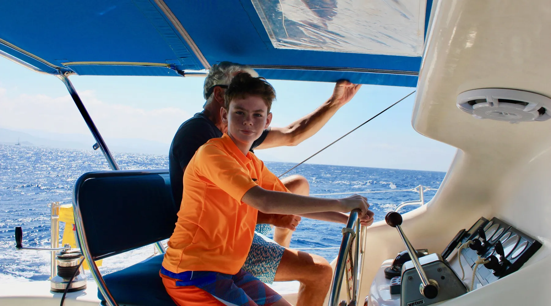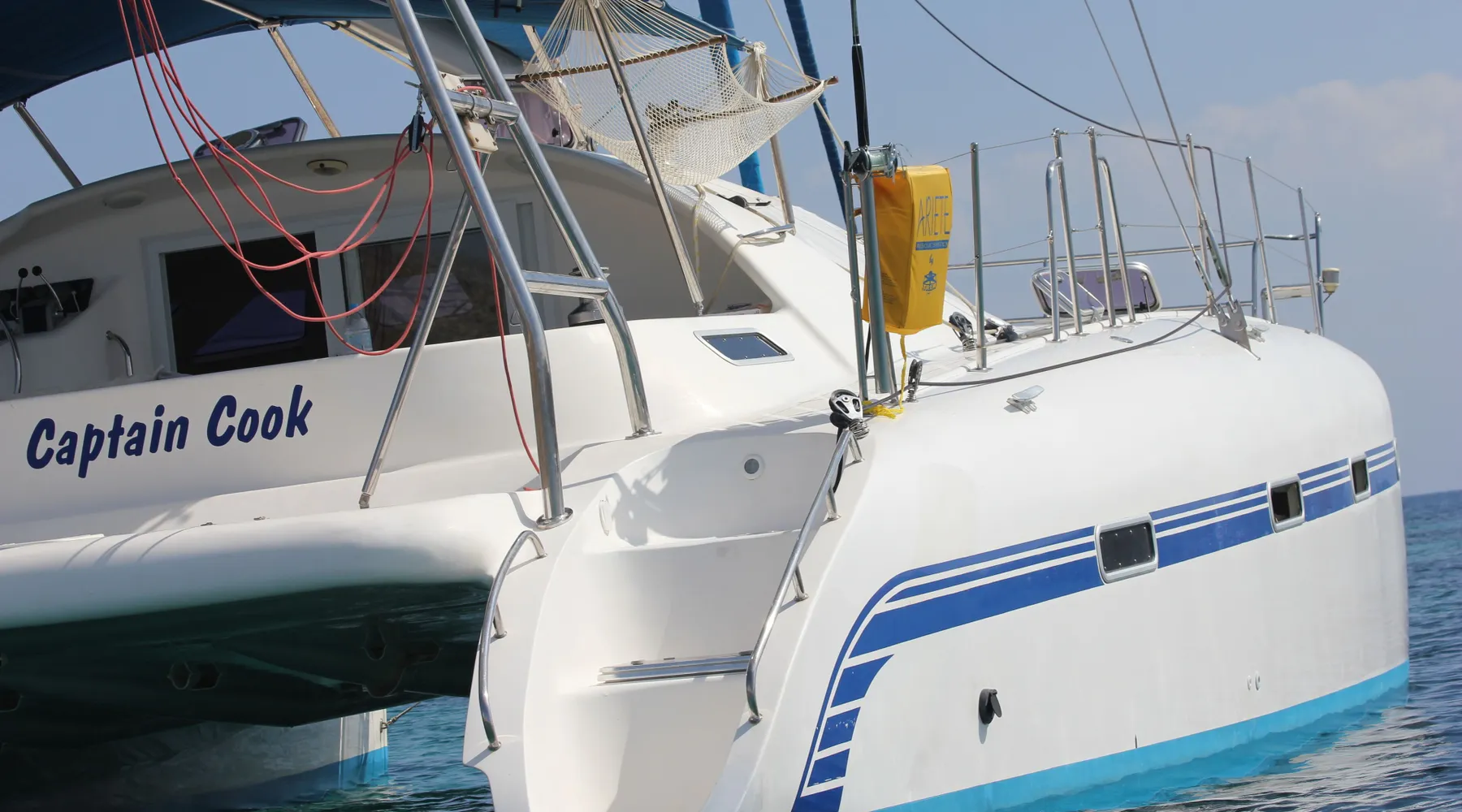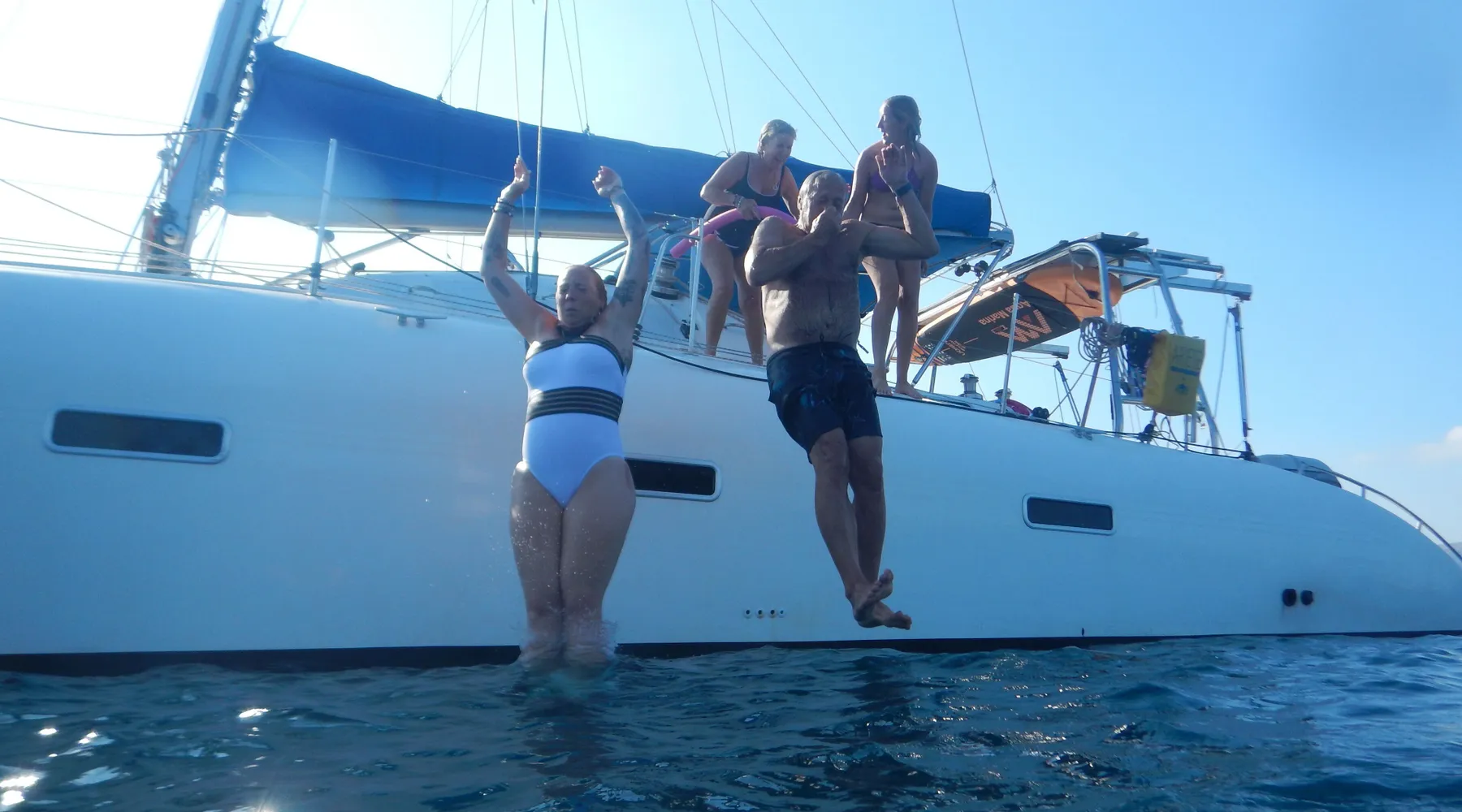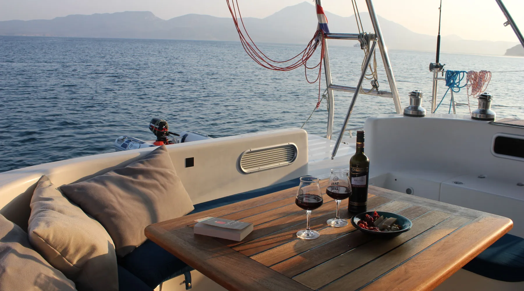 From one island to another, depending on the wind, discover the Cyclades aboard the Captain Cook! A fabulous experience on the water! Breakfasts and lunches included. We speak English and French. Our perfect knowledge of the Aegean Sea will allow us to make you discover unique, paradisiacal and wild places. The catamaran is very comfortable for navigation as well as for the pleasure of your stay. The low draft of the boat allows us to access the wild creeks and closer to the beaches. In the crystal clear water you can swim and snorkel, we will lend you the equipment. You can enjoy the large cockpit, a large beach to sunbathe on the deck, swim ladder and outdoor shower, spacious interior square, double luxury cabins, 2 bathrooms with toilet, TV, music ... Only constraints, security and weather! In case of gust of wind, no worries! The islands are all more beautiful and exciting than the others. We can advise you about the treasures to discover on land: culture, temples and Greco-Roman remains, churches and monasteries, walks in enchanting places, caves and hot springs untapped by tourist circuits, tavernas, small fishing ports, local artists ... We will build together the program you dream of for your holidays: short trips or longer trips according to your wishes. On board, Bruno, the Captain will introduce you to navigation if you wish and you can participate in the maneuvers. Every day we will discover a different place. Véronique will prepare breakfast and lunch for you on board. In the evening, the tavernas will allow you to taste the local dishes! Included in the rental Breakfast and lunch Linen: bed linen and towels Games: Scrabble, Checkers, Card Games ... Books and novels in French and English Music and movies Deep sea fishing Fins, masks and snorkels Not included Transfer before and after your stay Dinner Drinks on board Sheets and beach towels All leisure or car rental ashore.