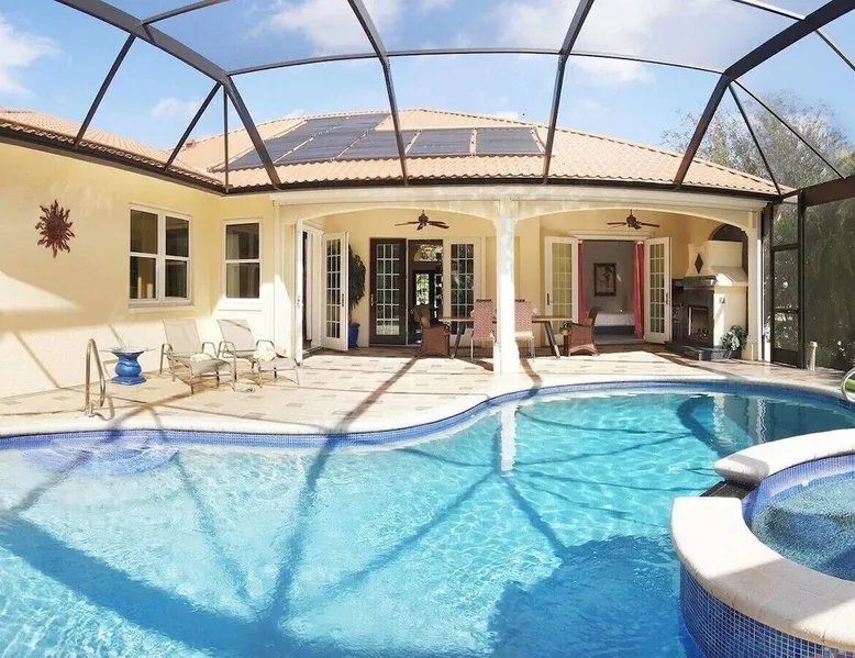 Villa Country Club Residence - Stylish 4 BR Home The space This amazing property in the "Forest" Country Club in south Fort Myers offers luxurious accommodations for up to eight guests. There are countless upgrades, from the Italian tile in the bathrooms to the funky European light fixtures, from the stylish fireplace to the contemporary furnishings, to mention just a few. No expenses were spared to turn an already beautiful home into a real stunner. The spacious floor plan features 4 bedrooms and 3.5 baths, including a beautiful master bath with tub and Italian shower. The pool area faces south and includes a pool and spa. Both can be electrically and solar heated. Surrounded by lush tropical landscaping, this can be your private oasis away from the demands of your everyday life. An inviting off water home in a desirable location. The spacious floor plan includes 4 bedrooms (1 King, 1 Queen, 2 bedrooms with twin beds), 3.5 baths, separate living and family rooms, and a large, fully equipped kitchen. Stylish furniture throughout gives the home a contemporary feeling. The electrically heated pool and spa can be enjoyed throughout the year. The patio faces south and overlooks the backyard with its lush tropical landscaping. Several stores and restaurants are just a few minutes away by car. The Discovery Golf Membership is available to guests which includes a month-to-month golf membership opportunity for residents and non-residents who are in search of a Club to join. Provides monthly access to all of the Club’s facilities and amenities to include golf, tennis, fitness, bocce, dining and all social & lifestyle events. Available for a maximum of 4 months per calendar year and limited to 2 years. Subject to availability 1st year $2000 per month You will be required to sign a rental agreement and credit card authorization form, which can be done electronically. You must be at least 25 years old to rent this property. Access to the home will be restricted if requirements are not completed. This property requires an energy contribution payment of $0.22 per KWh plus tax. Please note it when making your reservation. You will receive HOA registration forms to be completed before your stay to allow you easy access into the community and receipt of a parking pass. Short Description This amazing property in the "Forest" Country Club in south Fort Myers offers luxurious accommodations for up to eight guests. There are countless upgrades, from the Italian tile in the bathrooms to the funky European light fixtures, from the stylish fireplace to the contemporary furnishings, to mention just a few. No expenses were spared to turn an already beautiful home into a real stunner. The spacious floor plan features 4 bedrooms and 3.5 baths, including a beautiful master bath with tub and Italian shower. The pool area faces south and includes a pool and spa. Both can be electrically and solar heated. Surrounded by lush tropical landscaping, this can be your private oasis away from the demands of your everyday life. The Space An inviting off water home in a desirable location. The spacious floor plan includes 4 bedrooms (1 King, 1 Queen, 2 bedrooms with twin beds), 3.5 baths, separate living and family rooms, and a large, fully equipped kitchen. Stylish furniture throughout gives the home a contemporary feeling. The electrically heated pool and spa can be enjoyed throughout the year. The patio faces south and overlooks the backyard with its lush tropical landscaping. Several stores and restaurants are just a few minutes away by car. The Discovery Golf Membership is available to guests which includes a month-to-month golf membership opportunity for residents and non-residents who are in search of a Club to join. Provides monthly access to all of the Club’s facilities and amenities to include golf, tennis, fitness, bocce, dining and all social & lifestyle events. Available for a maximum of 4 months per calendar year and limited to 2 years. Subject to availability 1st year $2000 per month Features Description You will be required to sign a rental agreement and credit card authorization form, which can be done electronically. The minimum age to place a reservation is 25 years. Access to the home can be restricted if requirements are not completed. This property requires an energy contribution payment of $0.22 per KWh plus tax. A hold of $15 per day is required and will be placed on your card prior to your arrival. The actual amount will be charged after your stay based on your energy consumption. You will receive HOA registration forms to be completed before your stay to allow you easy access into the community and receipt of a parking pass.