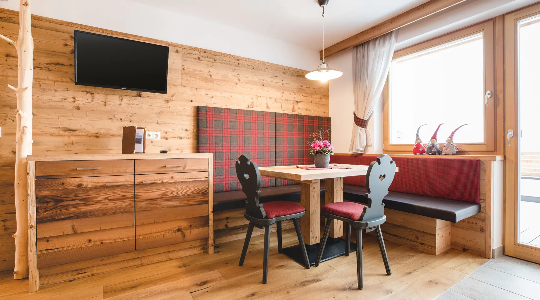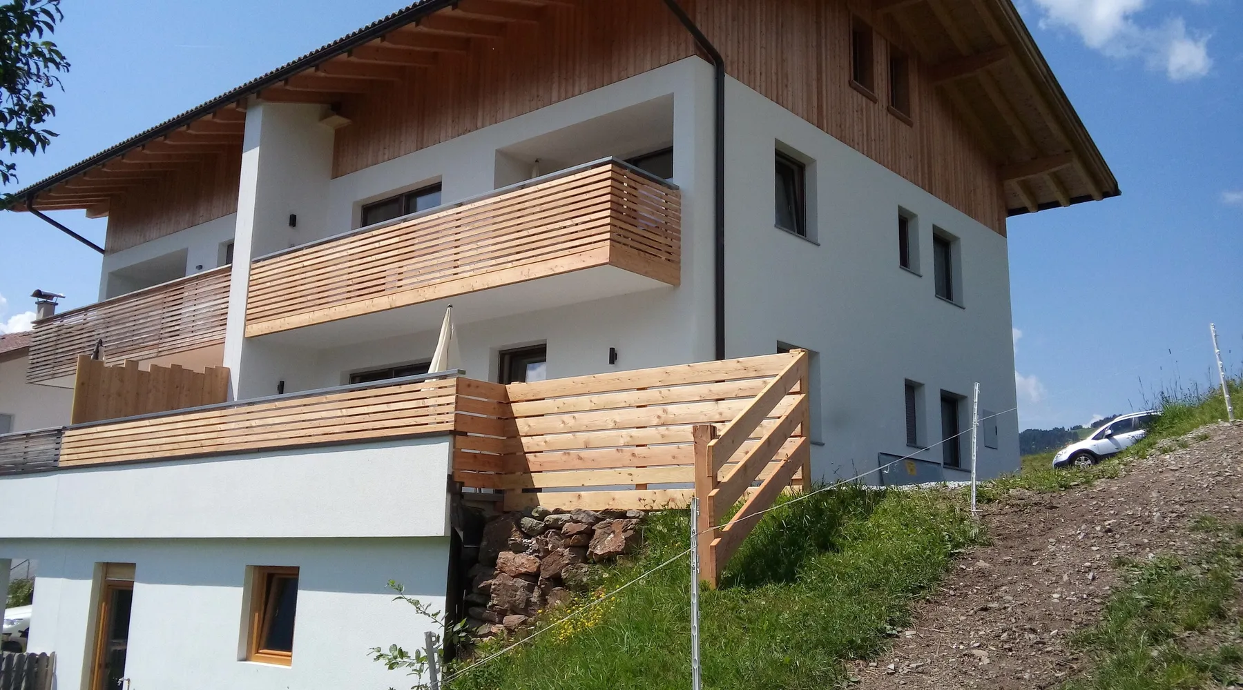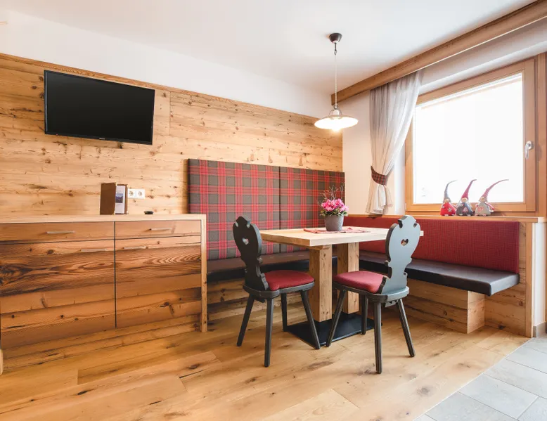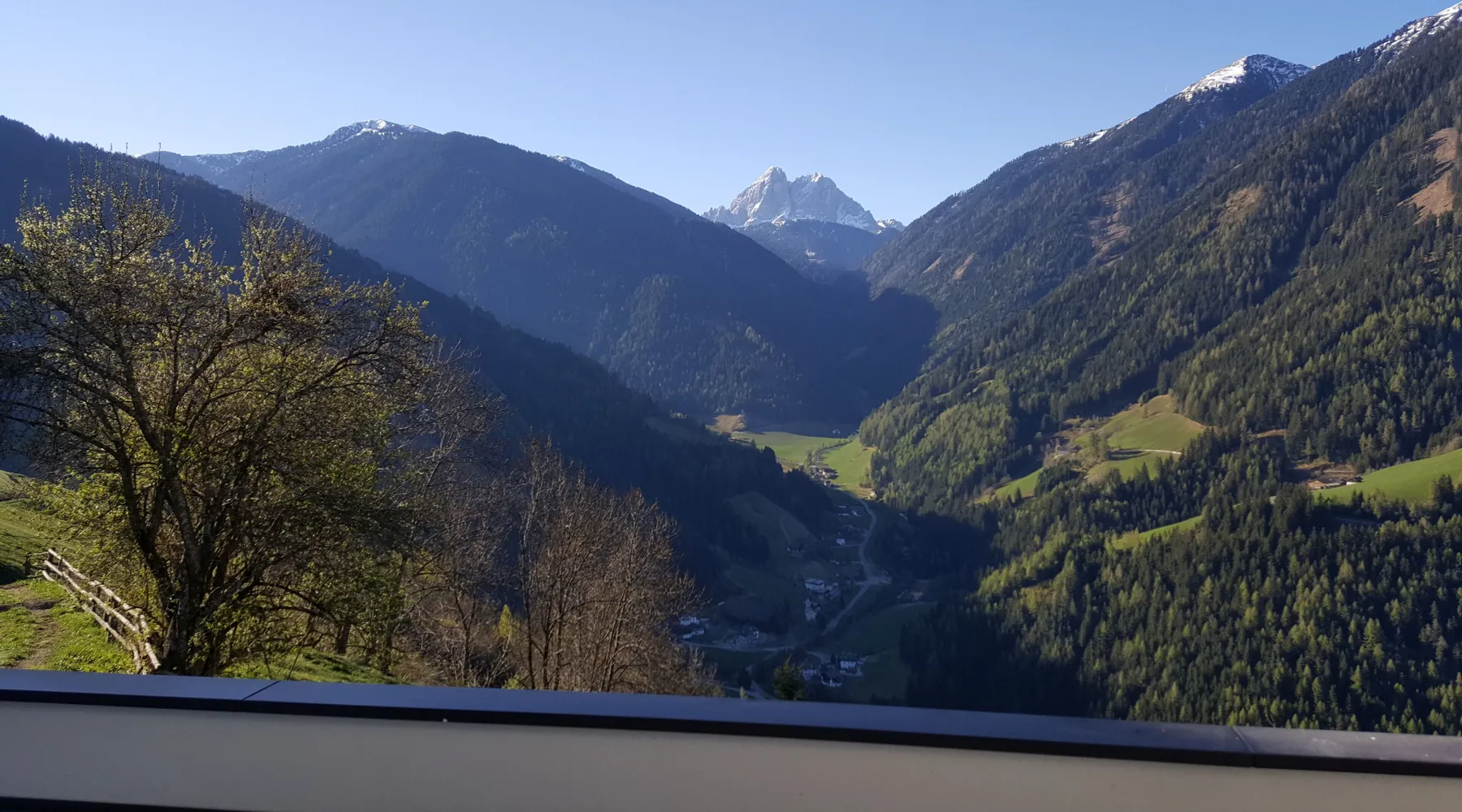 Newly built apartment in 2017 with an absolutely quiet location, with a magnificent view of the Puez Geisler massif Dolomites, Peitlerkofel, Maurerberg, Plosemassiv. The apartment is located in the LüsnerTal, on the hamlet of Flitt, Lüsen a small village with 1,500 inhabitants is a very quiet and far away from mass tourism, a mountain village with its charms. A retreat Have breakfast in the sunshine on the terrace / balcony without disturbing views with a view. The apartment has been built with climate house certification and all are equipped with solid wood furniture. The apartment has a biomass heating system and we heat exclusively with renewable raw materials, i.e. wood chips from our forest. The apartment has a kitchen, equipped with a corner table, couch, kitchenette with ceramic hob, kettle, microwave, refrigerator, coffee maker and dishwasher. Furthermore a bathroom with shower, toilet and sink. In addition to a double room, there is also a children's room with staggered bunk beds, a total of 4 people, 2 adults and 2 children, if necessary a 5. Person, but by arrangement. Parking is in front of the apartment, there is also a shoe dryer in front of the apartment. In the vicinity of the apartment there is the Hotel Compatscherhof, where you can use the sauna area free of charge in the opening times of the hotel, you can also use all the common rooms there, please ask for the opening times when booking. Half-board can also be ordered in the opening hours of the Hotel Compatscherhof by arrangement.