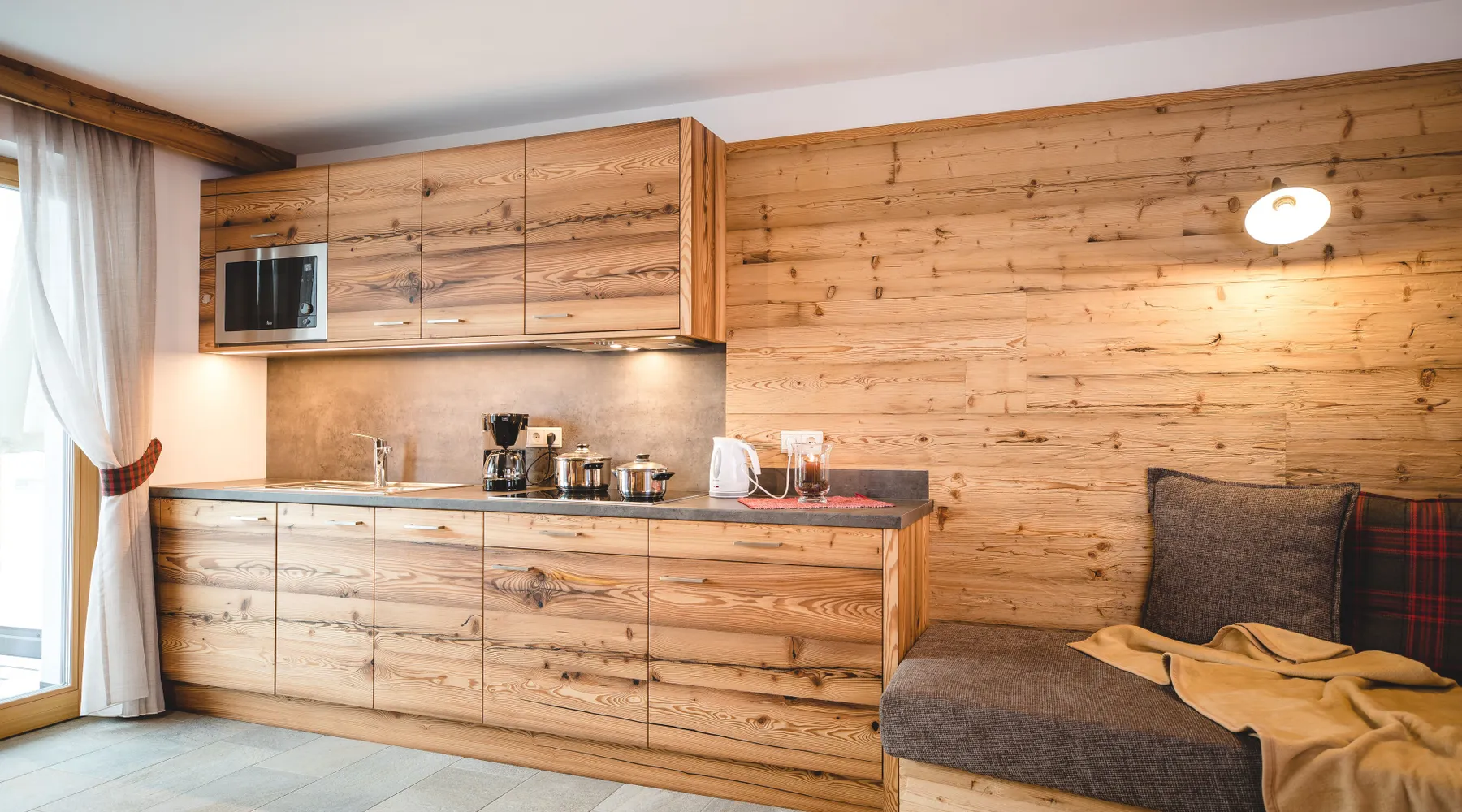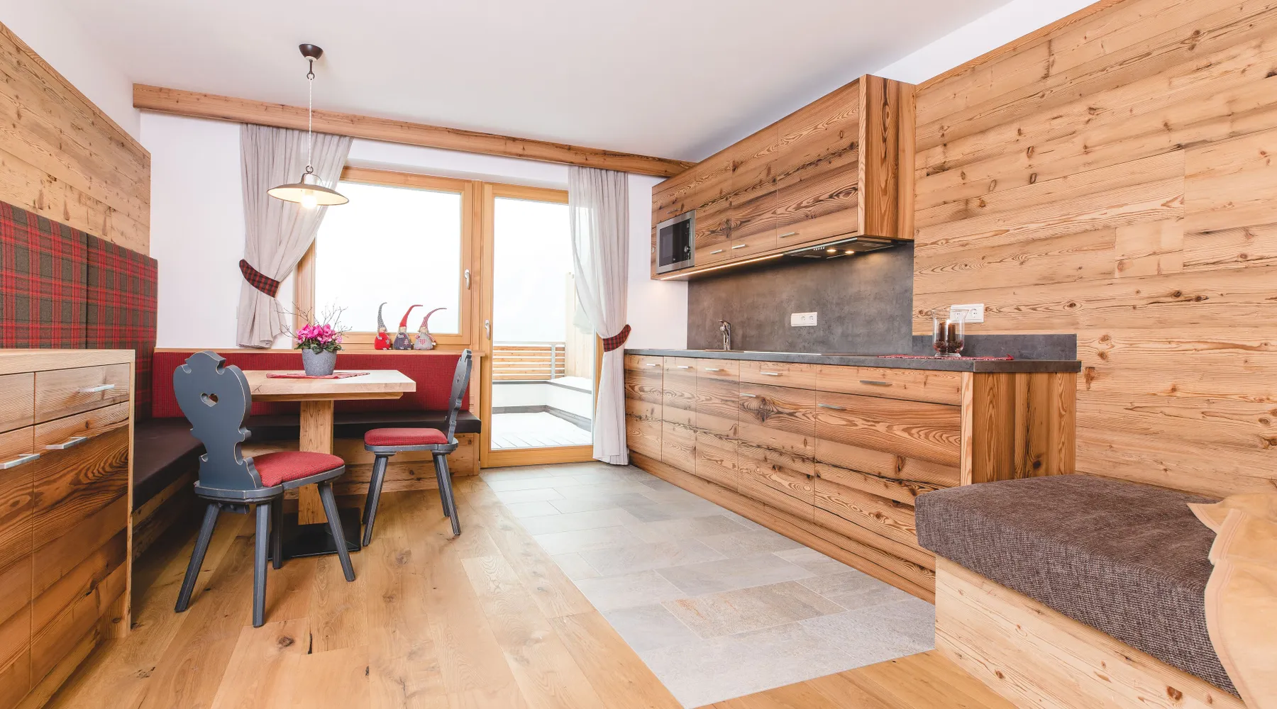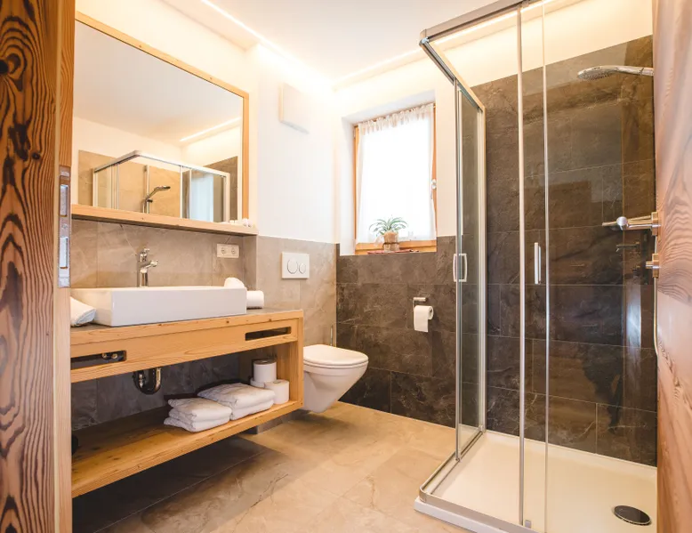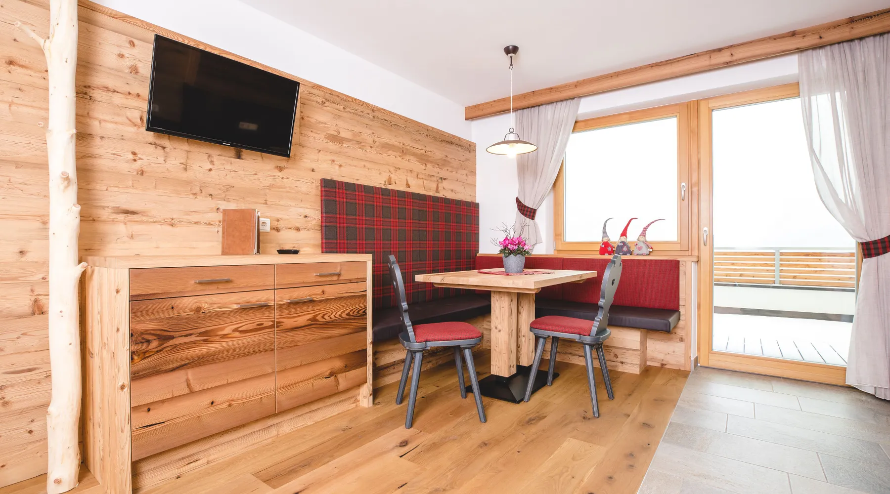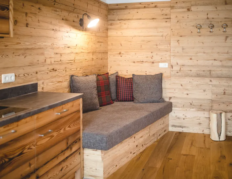 Newly built apartment in 2017 with an absolutely quiet location, with a magnificent view of the Puez Geisler massif Dolomites, Peitlerkofel, Maurerberg, Plosemassiv. The apartment is located in the LüsnerTal, on the hamlet of Flitt, Lüsen a small village with 1,500 inhabitants is a very quiet and far away from mass tourism, a mountain village with its charms. A retreat Have breakfast in the sunshine on the terrace / balcony without disturbing views with a view. The apartment has been built with climate house certification and all are equipped with solid wood furniture. The apartment has a biomass heating system and we heat exclusively with renewable raw materials, i.e. wood chips from our forest. The apartment has a kitchen, equipped with a corner table, couch, kitchenette with ceramic hob, kettle, microwave, refrigerator, coffee maker and dishwasher. Furthermore a bathroom with shower, toilet and sink. In addition to a double room, there is also a children's room with staggered bunk beds, a total of 4 people, 2 adults and 2 children, if necessary a 5. Person, but by arrangement. Parking is in front of the apartment, there is also a shoe dryer in front of the apartment. In the vicinity of the apartment there is the Hotel Compatscherhof, where you can use the sauna area free of charge in the opening times of the hotel, you can also use all the common rooms there, please ask for the opening times when booking. Half-board can also be ordered in the opening hours of the Hotel Compatscherhof by arrangement.