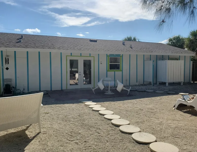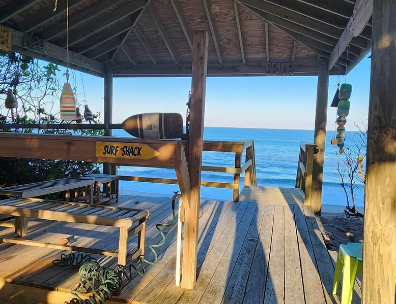 "Old Florida" Seaside Cottage located in the small seaside town of Floridana Beach. The beach is a turtle nesting habitat between May 1st and October 31st. Watch the giant turtles emerge from the sea and nest right on your beach dune. Sit in your private cabana overseeing the Atlantic Ocean and watch for dolphins, tarpons, manatees, and other wildlife swim by. Watch rocket launches from Cape Canaveral a few miles North. Short drive from Disney World and other Central Florida attractions.