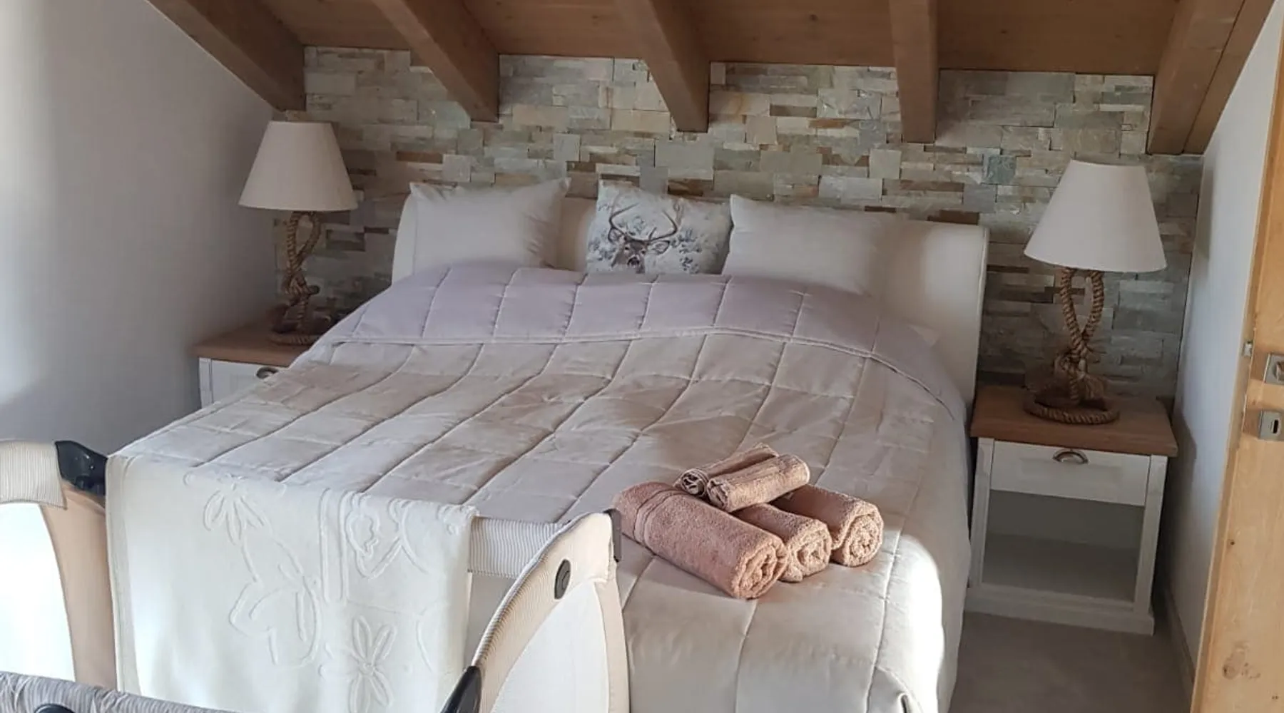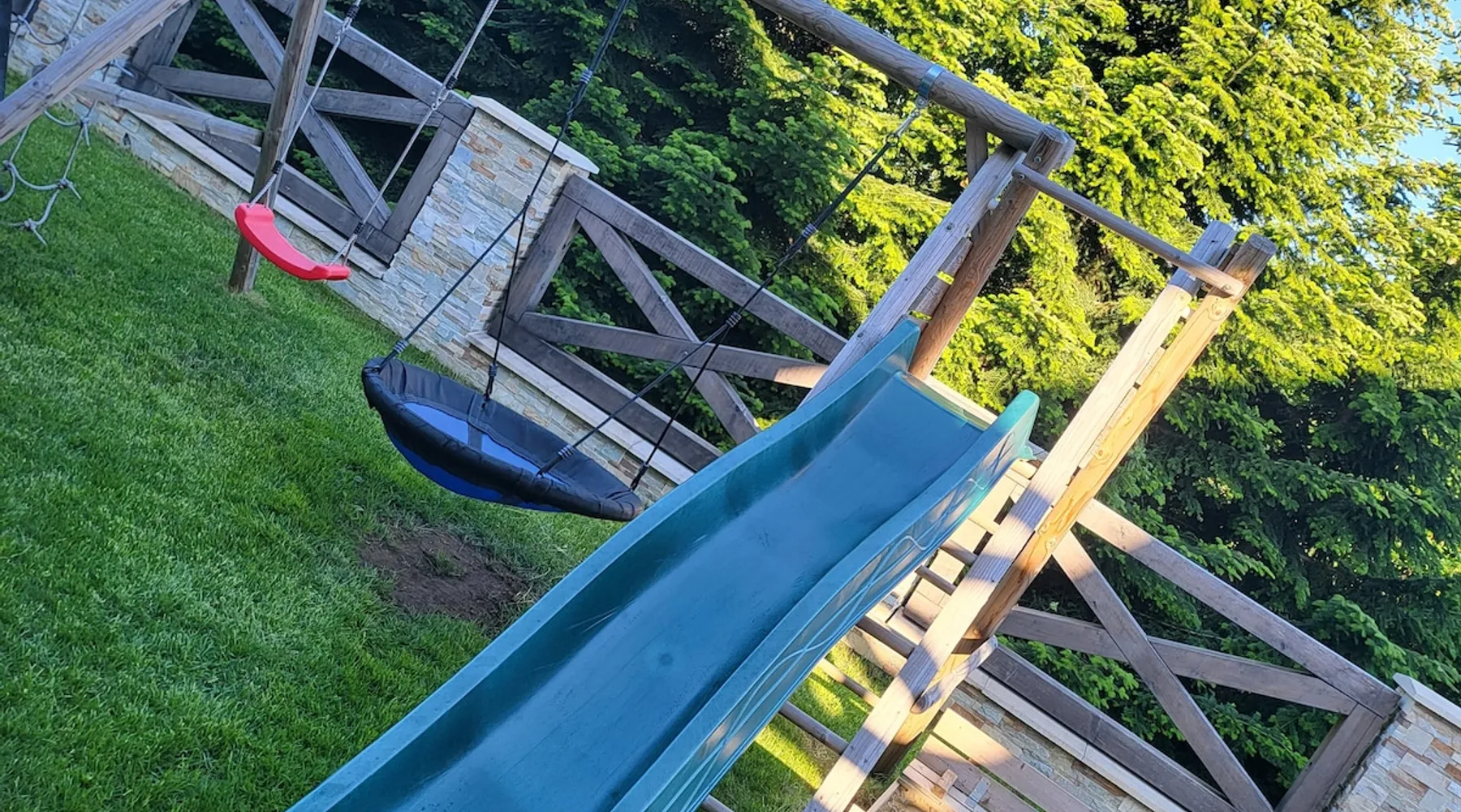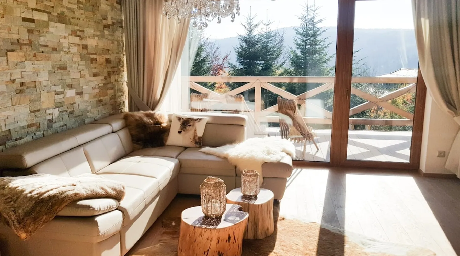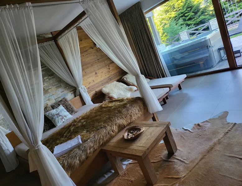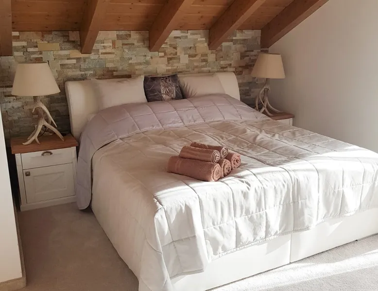 A cozy, luxurious chalet, located in private resort of DONOVALLEY, close to the center. 24/7 guarded by security. The first line with an excellent view of the entire valley with the ski resort. Possibility to occupy 1 or 2 apartments, always only 1 group. The capacity of 6 or 12 guests. Dec. 22nd - Jan. 8th 2023 is possible to book whole chalet only for 4+ nights. Free Wi-Fi, parking, wellness, jacuzzi. The breakfast, quad bike, party room, private cook can be ordered for an additional fee. The space There are 2 apartments in the building, each with a capacity of 6 people. It is possible to occupy one or both, but only 1 group. Guest access The Apartment has 2 floors. The ground-floor section is equipped with a fully functional kitchen, dining room and lounge with TV and fireplace. The loft area is equipped with two bedrooms and a bathroom with WC and shower The total area of the living area is more than 125 m2. The balconies and terraces are spacious for outdoor seating. Four parking places, outdoor area features a garden, a children's playground with climbing, sand and fire, an outdoor seating area of over 250 m2. Other things to note All details related to smooth accommodation and stay will be delivered upon arrival.