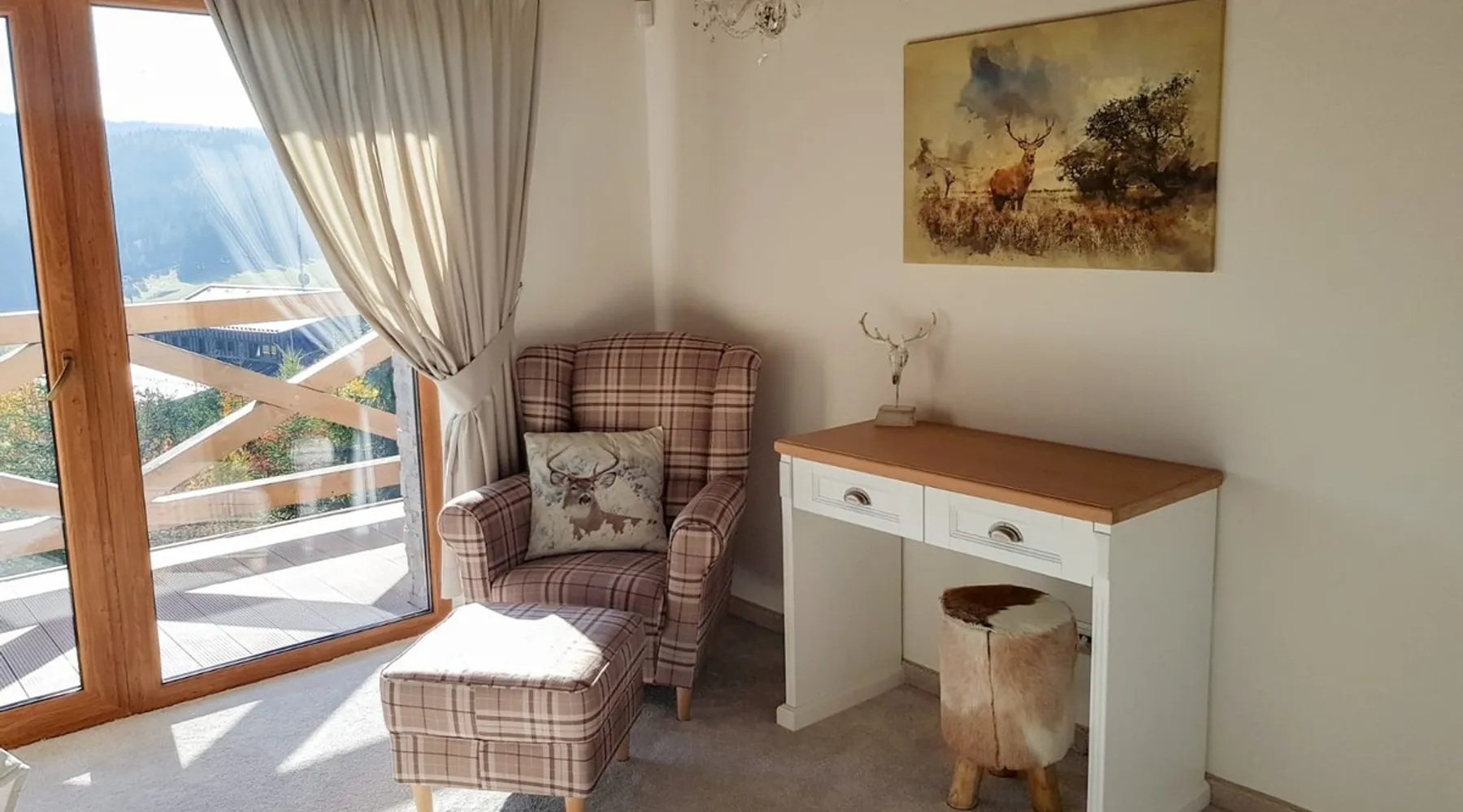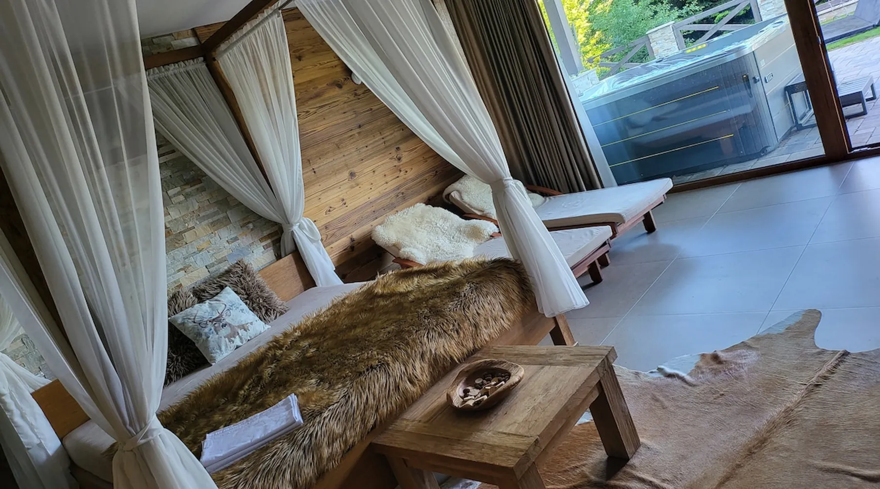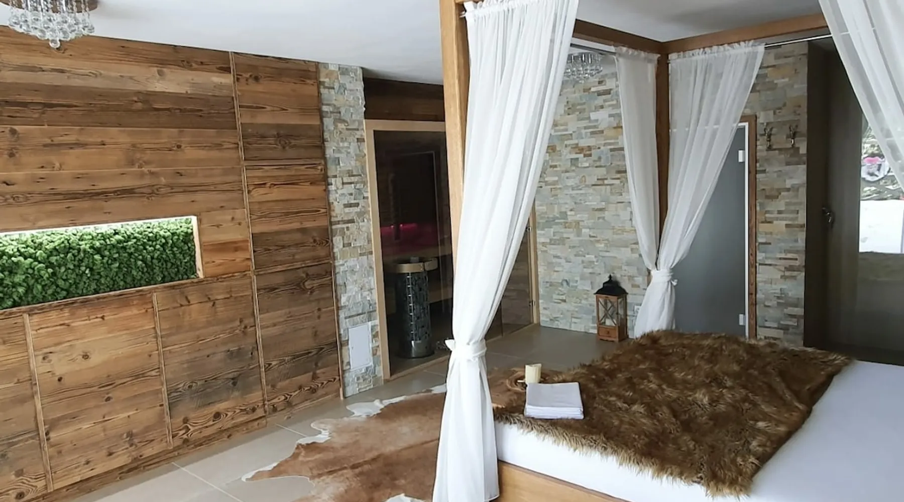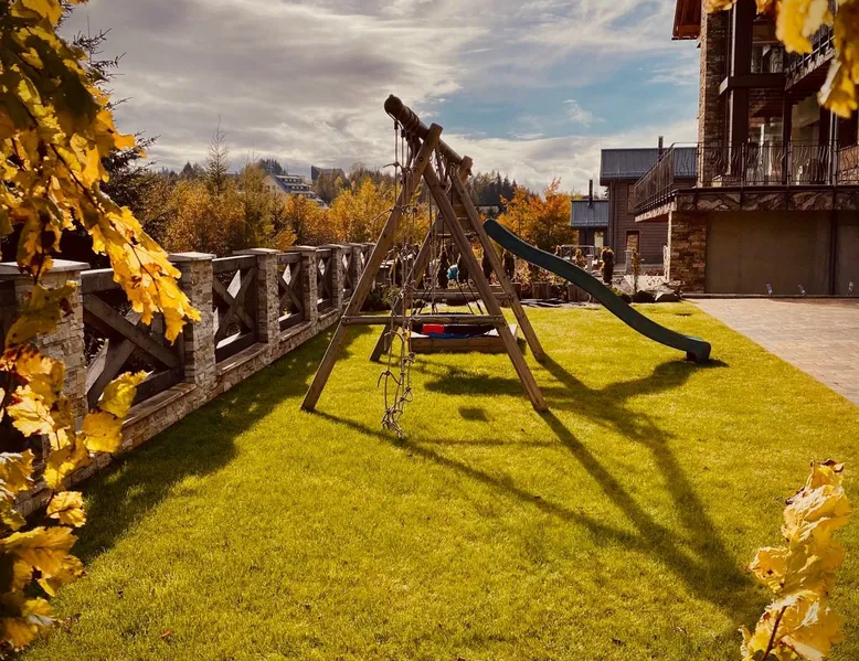 A cozy, luxurious chalet, located in private resort of DONOVALLEY, close to the center. 24/7 guarded by security. The first line with an excellent view of the entire valley with the ski resort. Possibility to occupy 1 or 2 apartments, always only 1 group. The capacity of 6 or 12 guests. Dec. 22nd - Jan. 8th 2023 is possible to book whole chalet only for 4+ nights. Free Wi-Fi, parking, wellness, jacuzzi. The breakfast, quad bike, party room, private cook can be ordered for an additional fee. The space There are 2 apartments in the building, each with a capacity of 6 people. It is possible to occupy one or both, but only 1 group. Guest access The Apartment has 2 floors. The ground-floor section is equipped with a fully functional kitchen, dining room and lounge with TV and fireplace. The loft area is equipped with two bedrooms and a bathroom with WC and shower The total area of the living area is more than 125 m2. The balconies and terraces are spacious for outdoor seating. Four parking places, outdoor area features a garden, a children's playground with climbing, sand and fire, an outdoor seating area of over 250 m2. Other things to note All details related to smooth accommodation and stay will be delivered upon arrival.