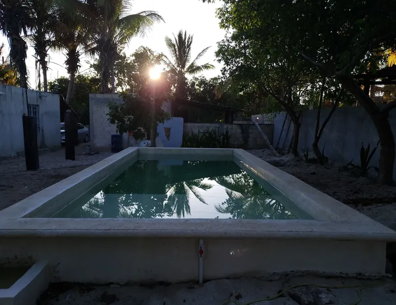 🌸Cozy and comfortable house in Chelem, Port 🌸🌴It has 2 bedrooms, in one fit 3 hammocks and there is a double bed, as well as air conditioning and TV with Netflix.🌴 In the second bedroom there are 4 hammocks, there are a double bed, 2 fans and its own bathroom, in total there are two double beds and up to 11 hammocks 🥥All available amenities Glass pool🥥 🏊of 3.50 x 7.50m,🏊 🤸large outdoor area, totally rented🤸 water, electricity, Internet, air conditioning🌬️