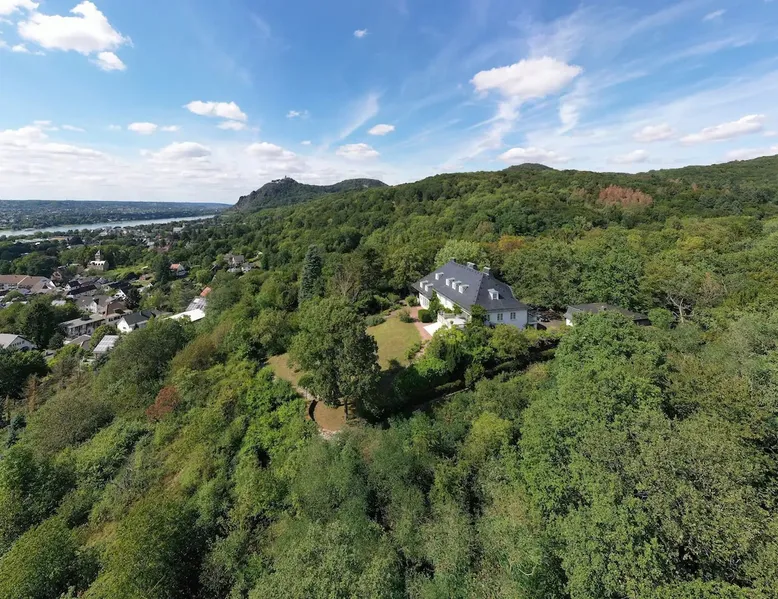 Just a few minutes drive from the Rhine capitals of Cologne and Bonn, high above the rooftops of Bad, is an exceptional and unique property that lies in the middle of a nature reserve on a private mountain. Enjoy the tranquility and unique panoramic views of the Rhine, Drachenfels rock and Petersberg. The property is virtually invisible from the outside. A secluded, luxurious and safe retreat away from everyday life.